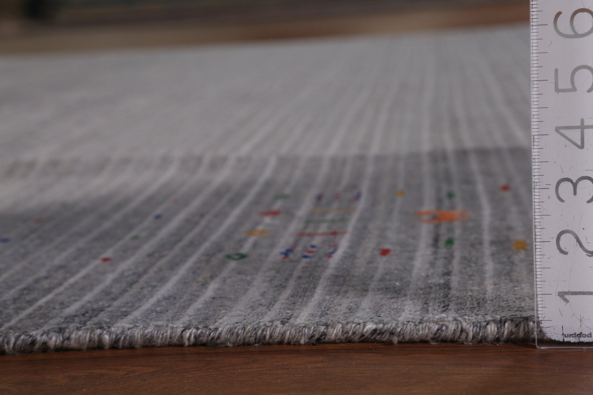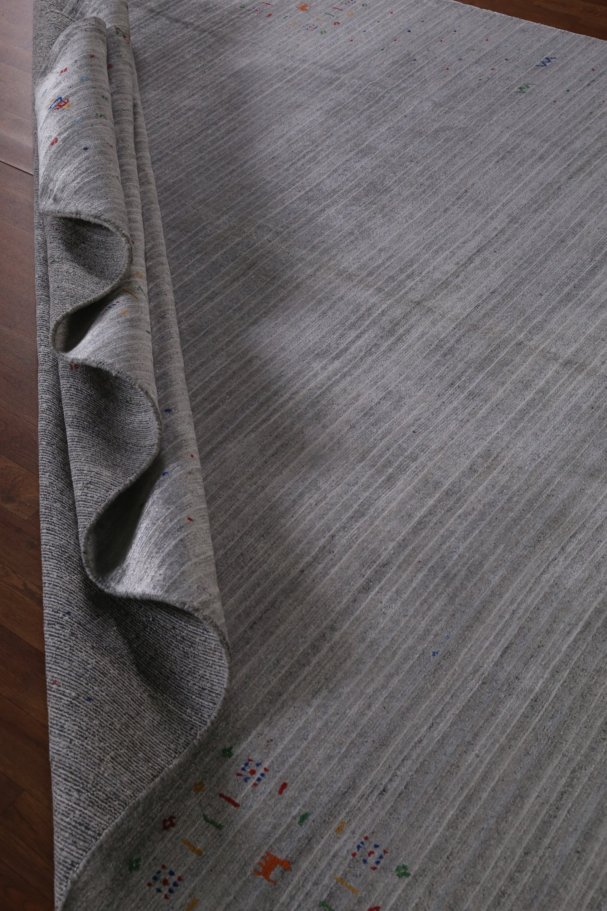 A Beautiful Genuine India Gabbeh rug is Hand Knotted by skillful weavers in India with Silk Material. This rug is in New, First Quality condition. dimensions are 11' 10'' X 8' 1'' in foot and 361 X 246 in centimeter. the primary color is Greys & Charcoal.