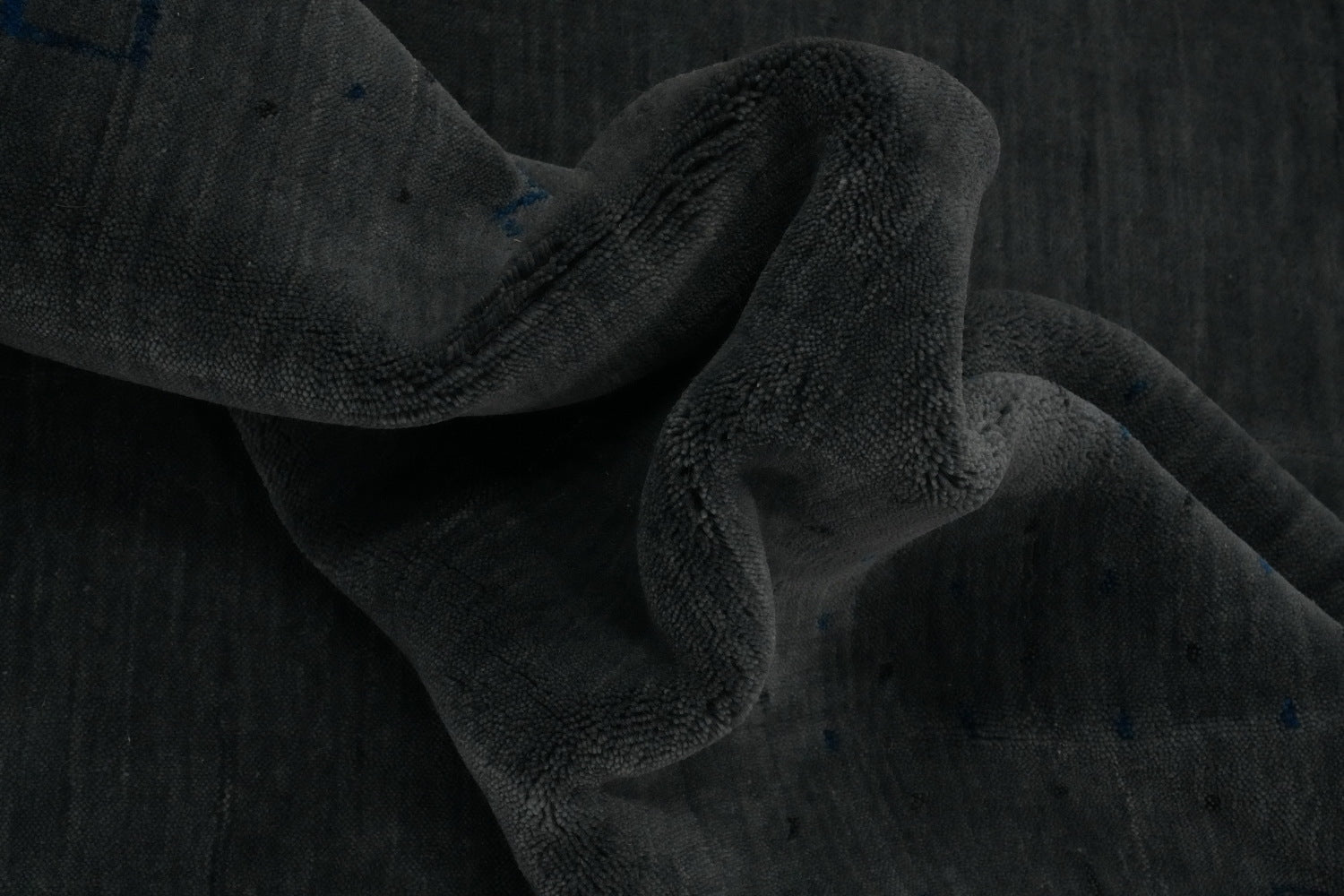 A Beautiful Genuine India Gabbeh rug is Hand Knotted by skillful weavers in India with 100% Wool Material. This rug is in New, First Quality condition. dimensions are 11' 11'' X 9' 0'' in foot and 363 X 274 in centimeter. the primary color is Greys & Charcoal.