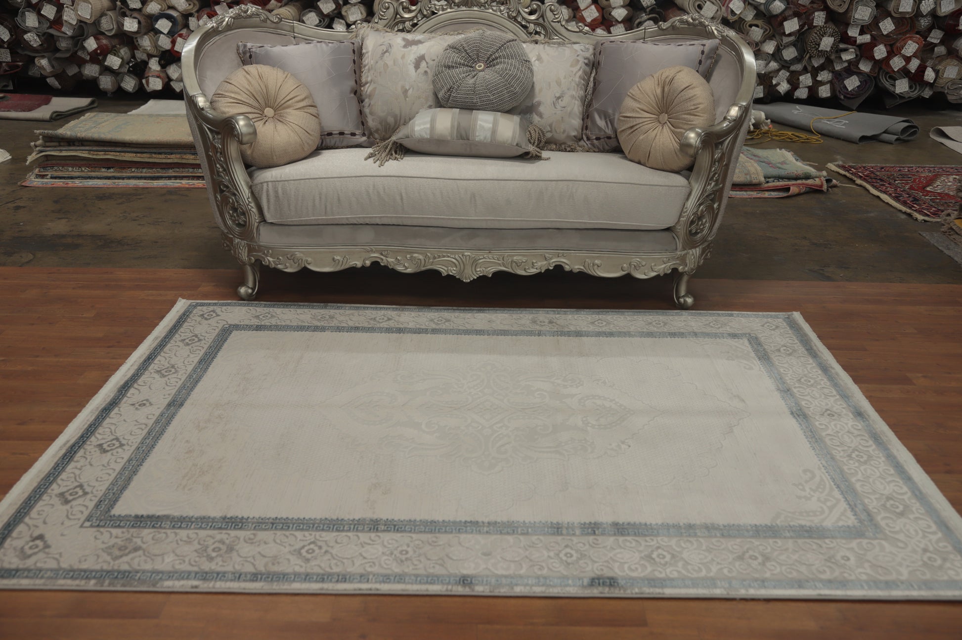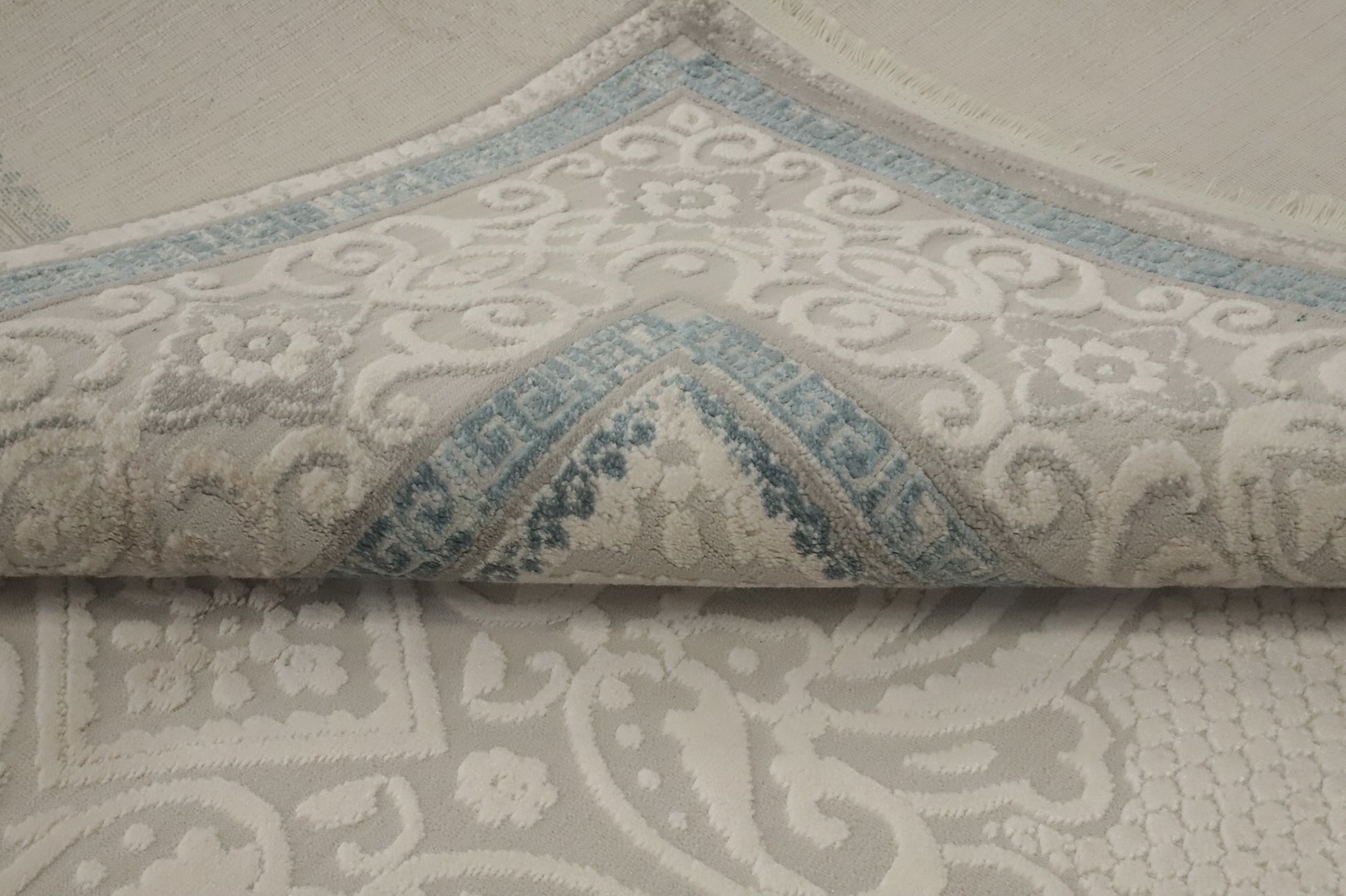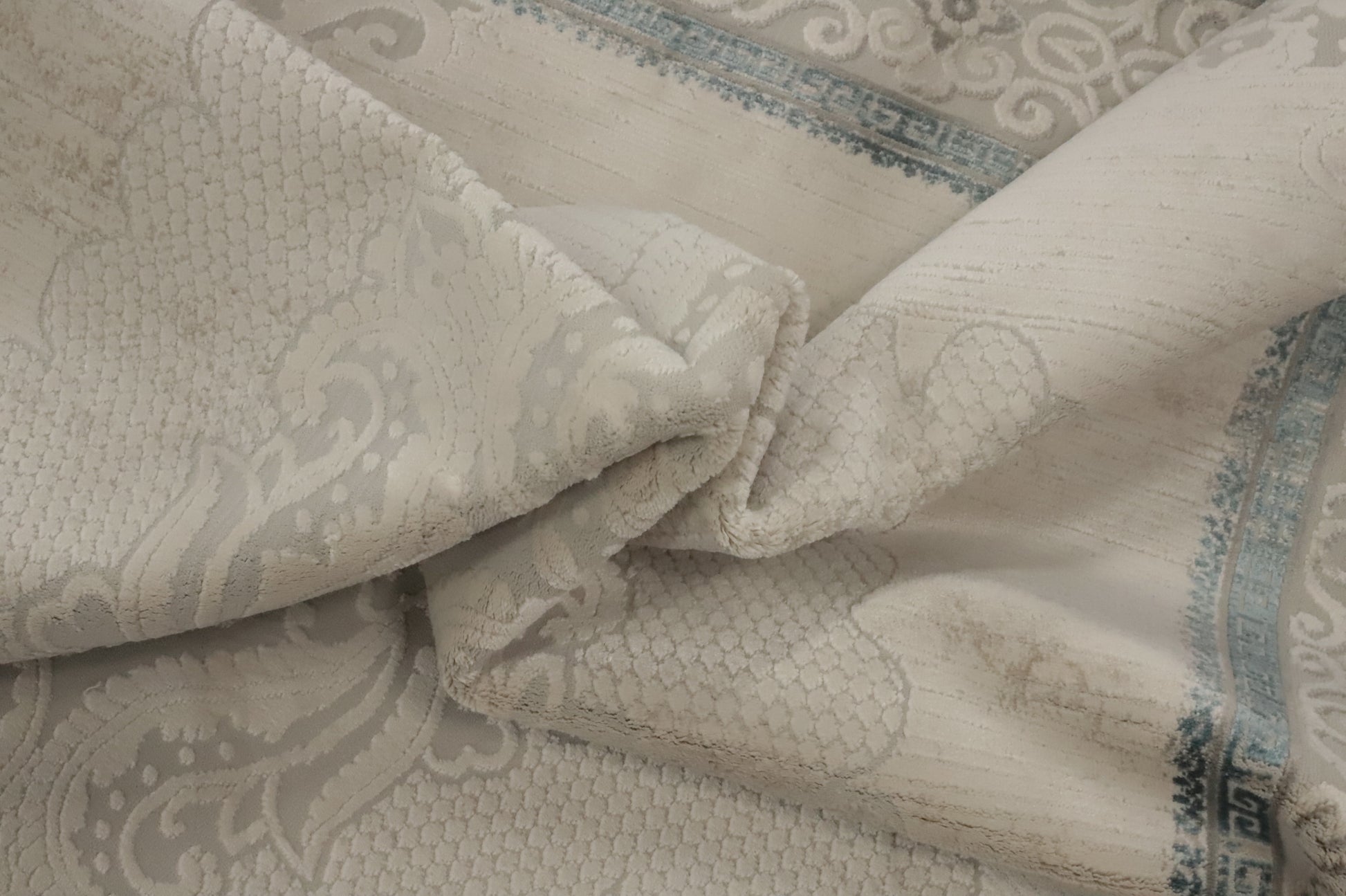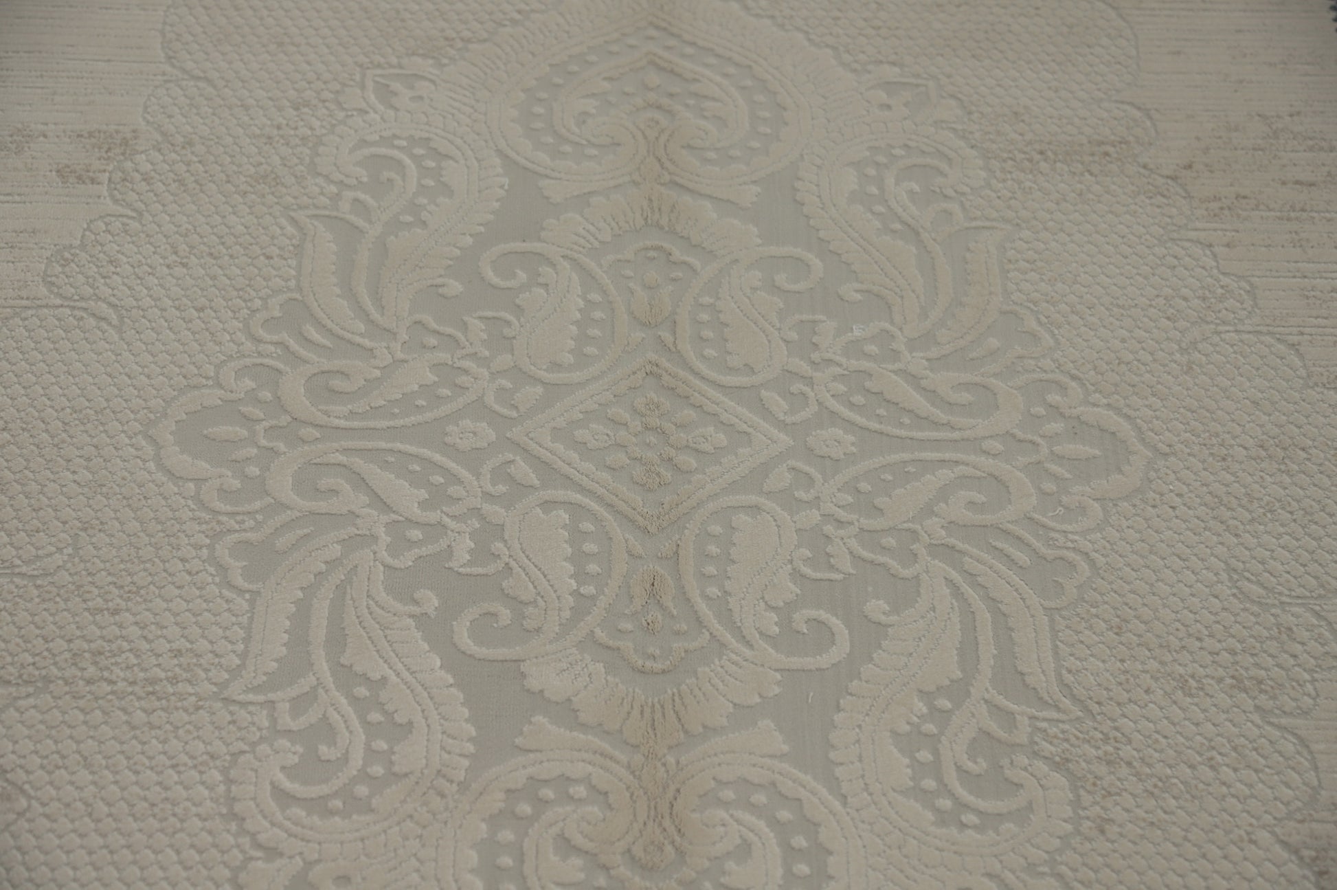 A Beautiful Genuine Turkey Tabriz rug is Machine Made by skillful weavers in Turkey with Polyester Material. This rug is in New, First Quality condition. dimensions are 7' 5'' X 5' 2'' in foot and 226 X 157 in centimeter. the primary color is Beige & Ivories.