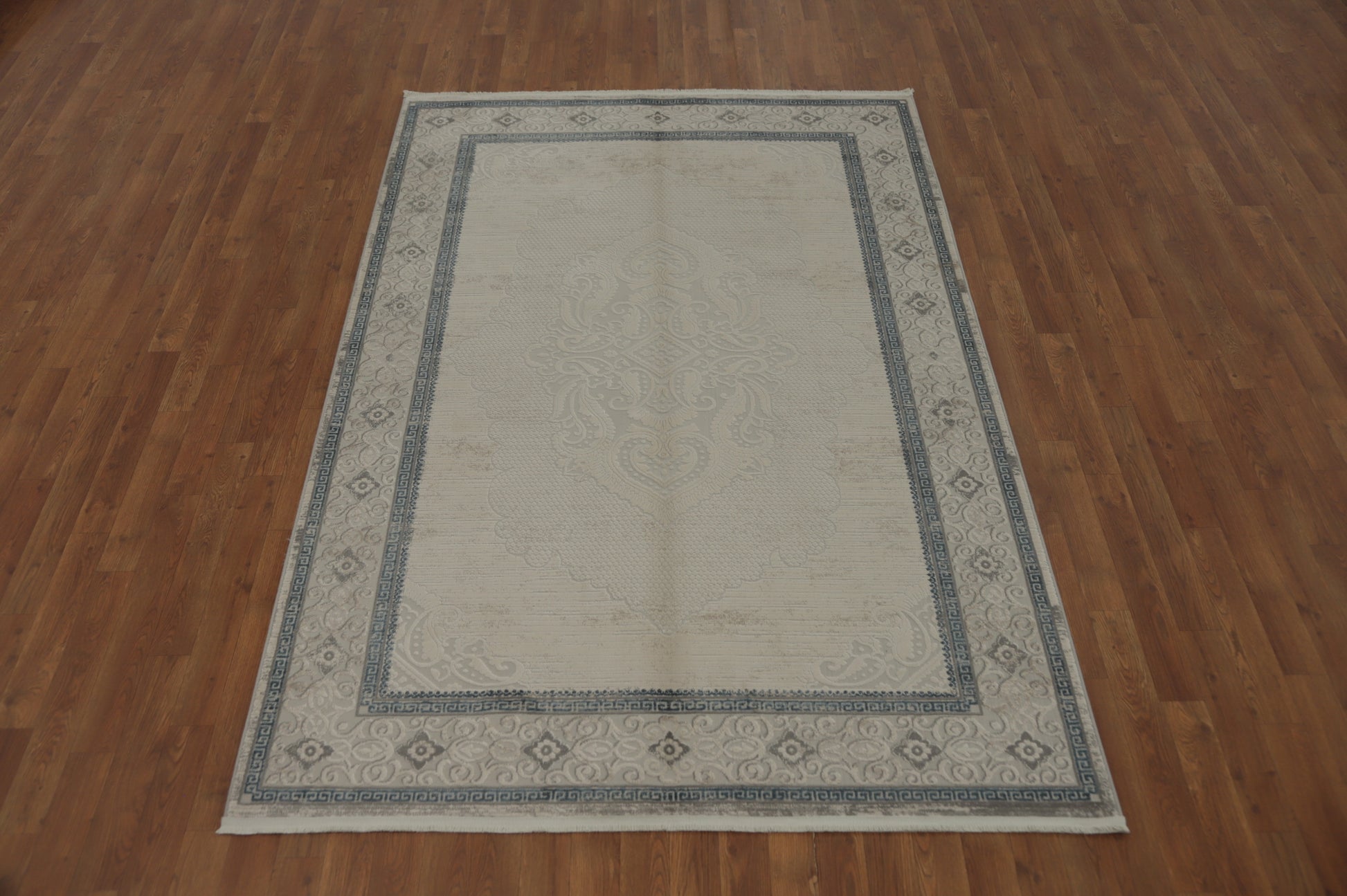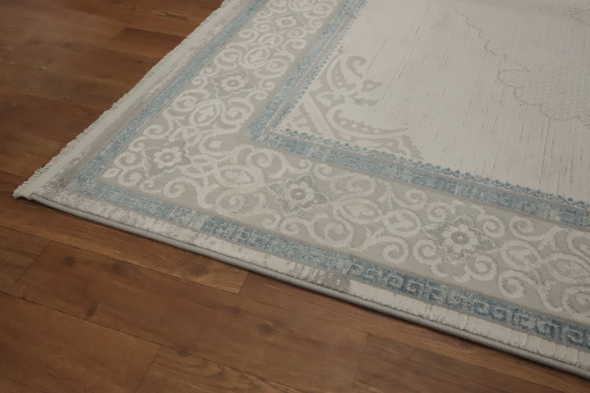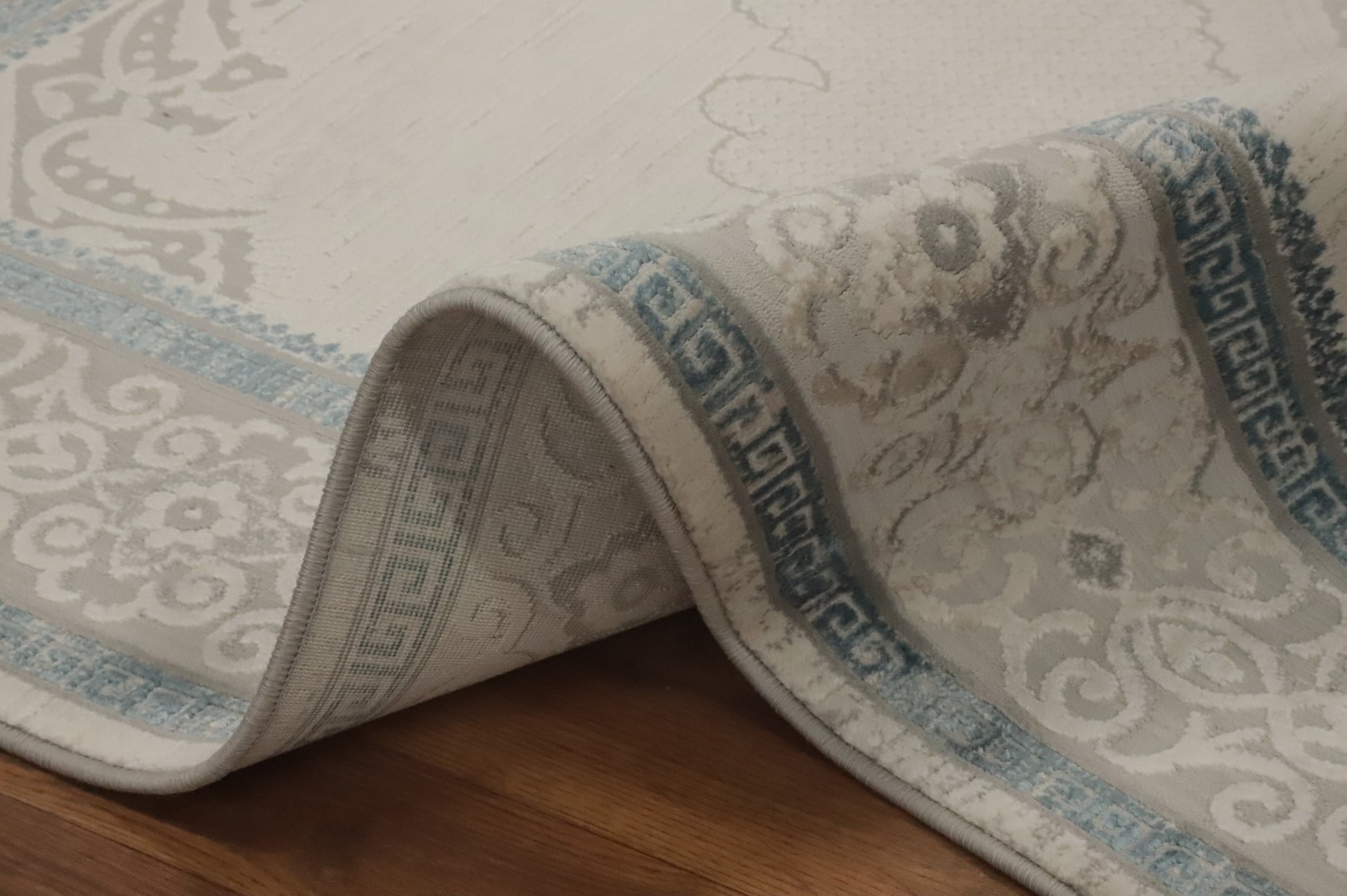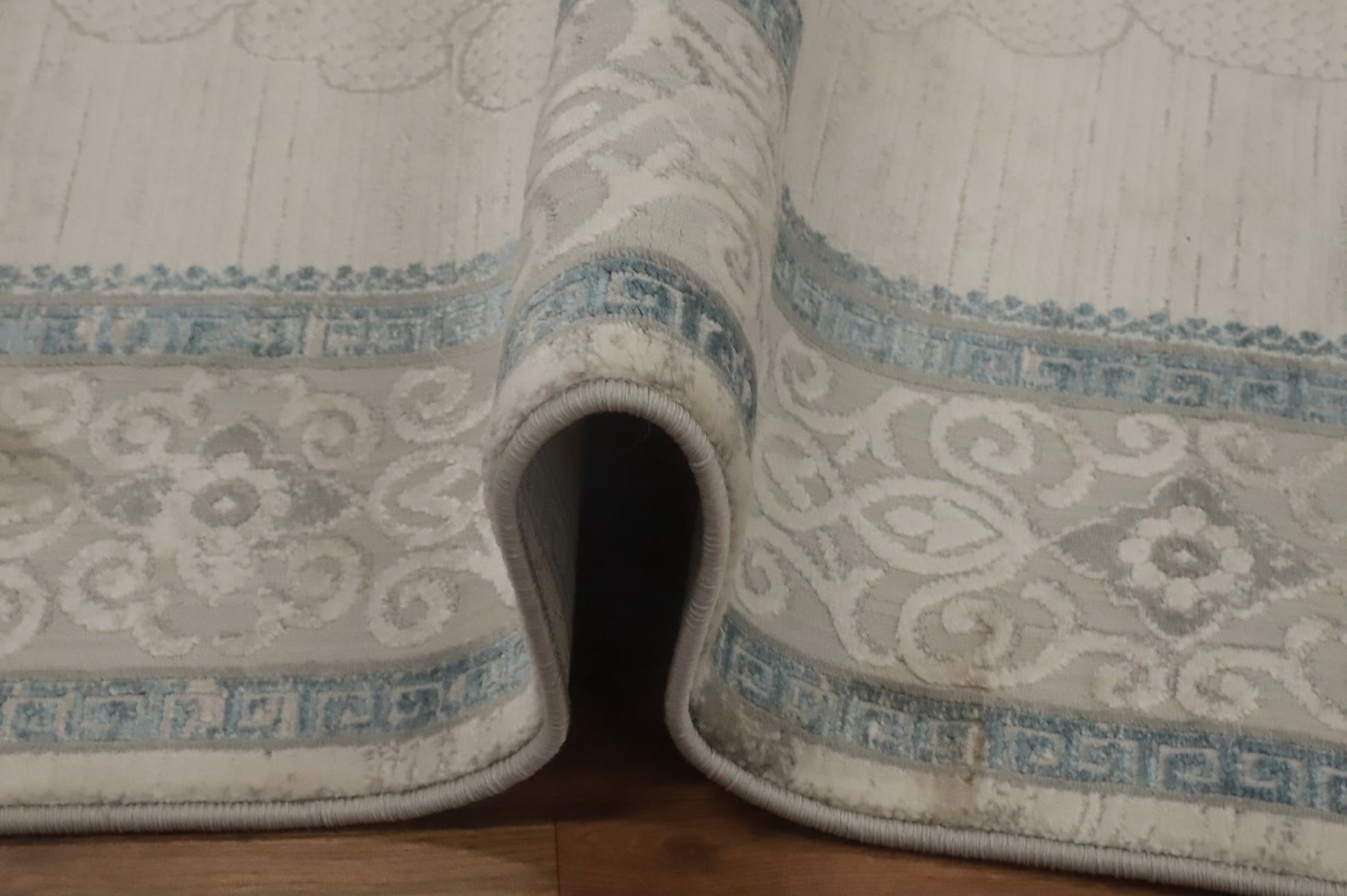 A Beautiful Genuine Turkey Tabriz rug is Machine Made by skillful weavers in Turkey with Polyester Material. This rug is in New, First Quality condition. dimensions are 7' 5'' X 5' 2'' in foot and 226 X 157 in centimeter. the primary color is Beige & Ivories.