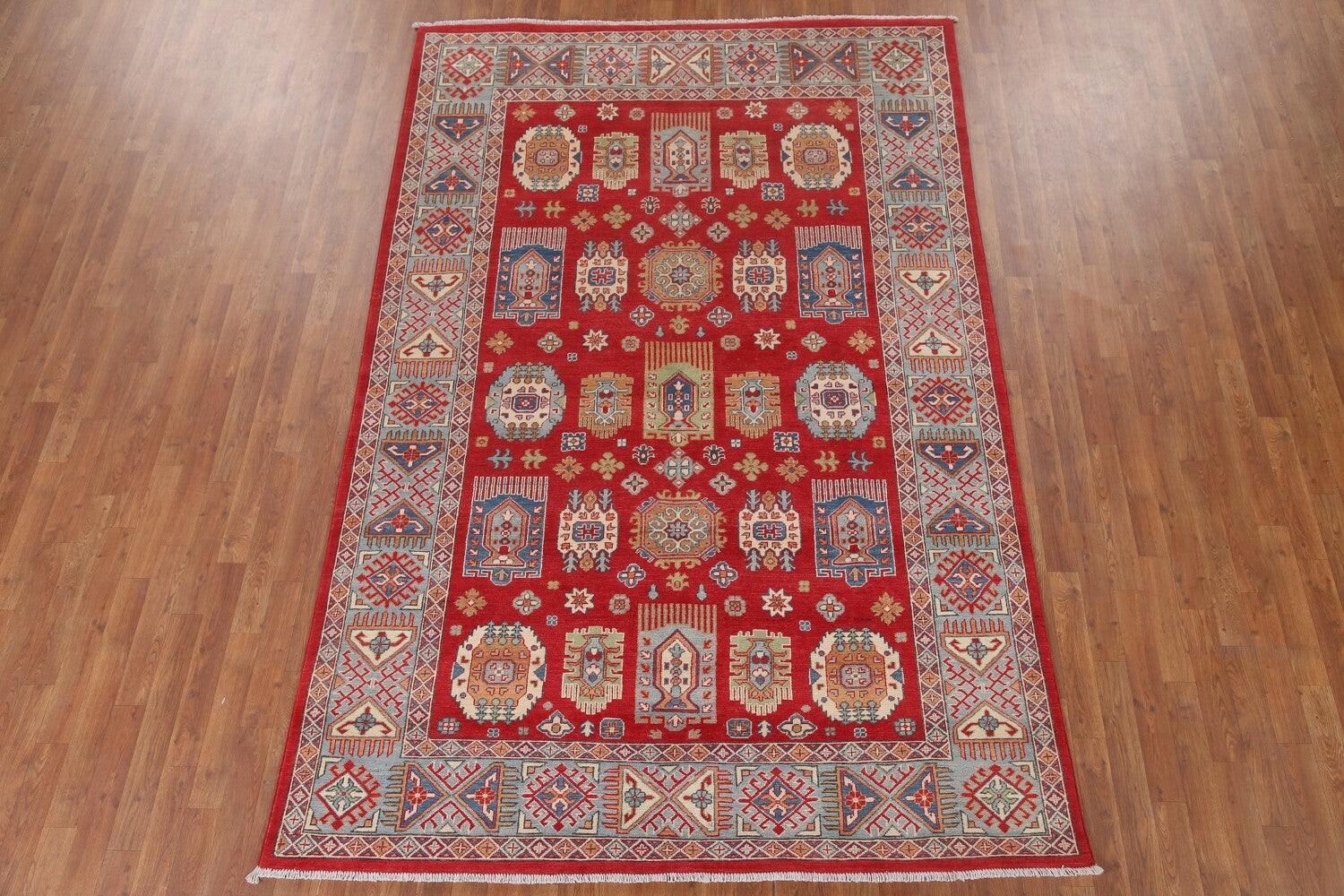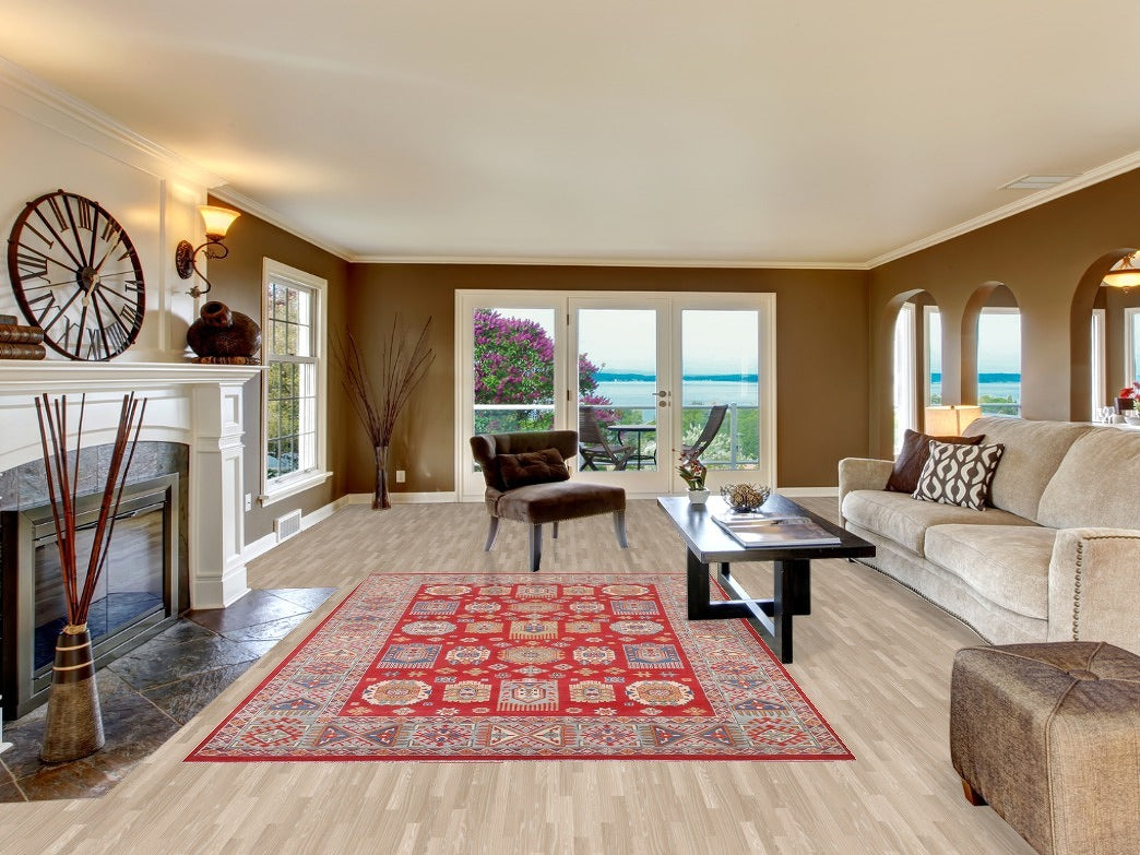 South Western Kazak Red Wool Area Rug 6x10