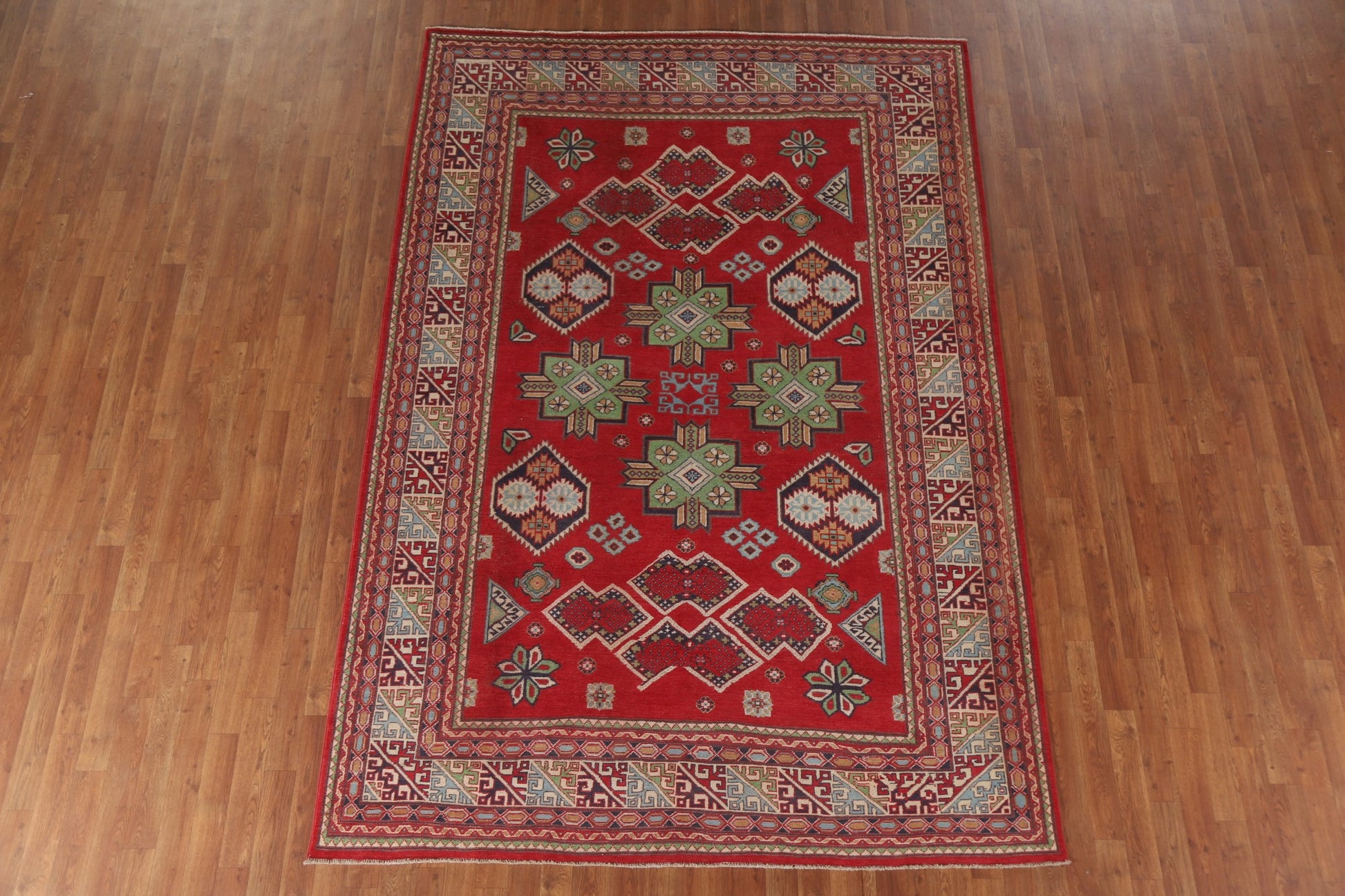 South Western Kazak Red Wool Area Rug 7x10