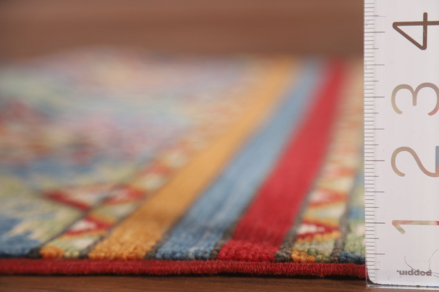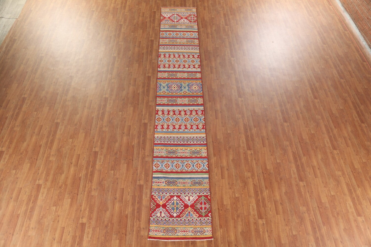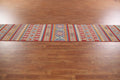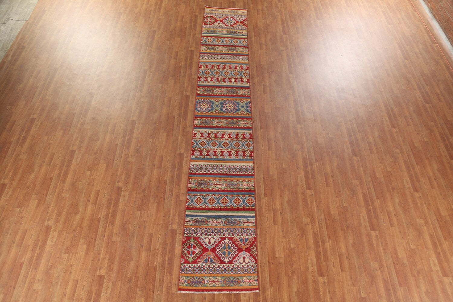 A Beautiful Genuine Pakistan Kazak rug is Hand Knotted by skillful weavers in Pakistan with 100% Wool Material. This rug is in New, First Quality condition. dimensions are 13' 10'' X 2' 6'' in foot and 422 X 76 in centimeter. the primary color is Multi-Colored.
