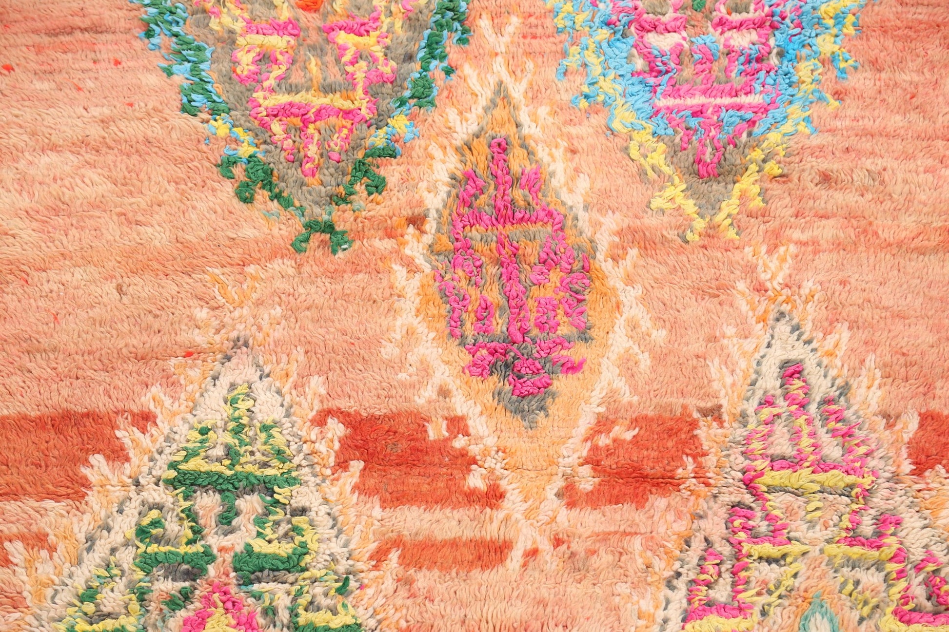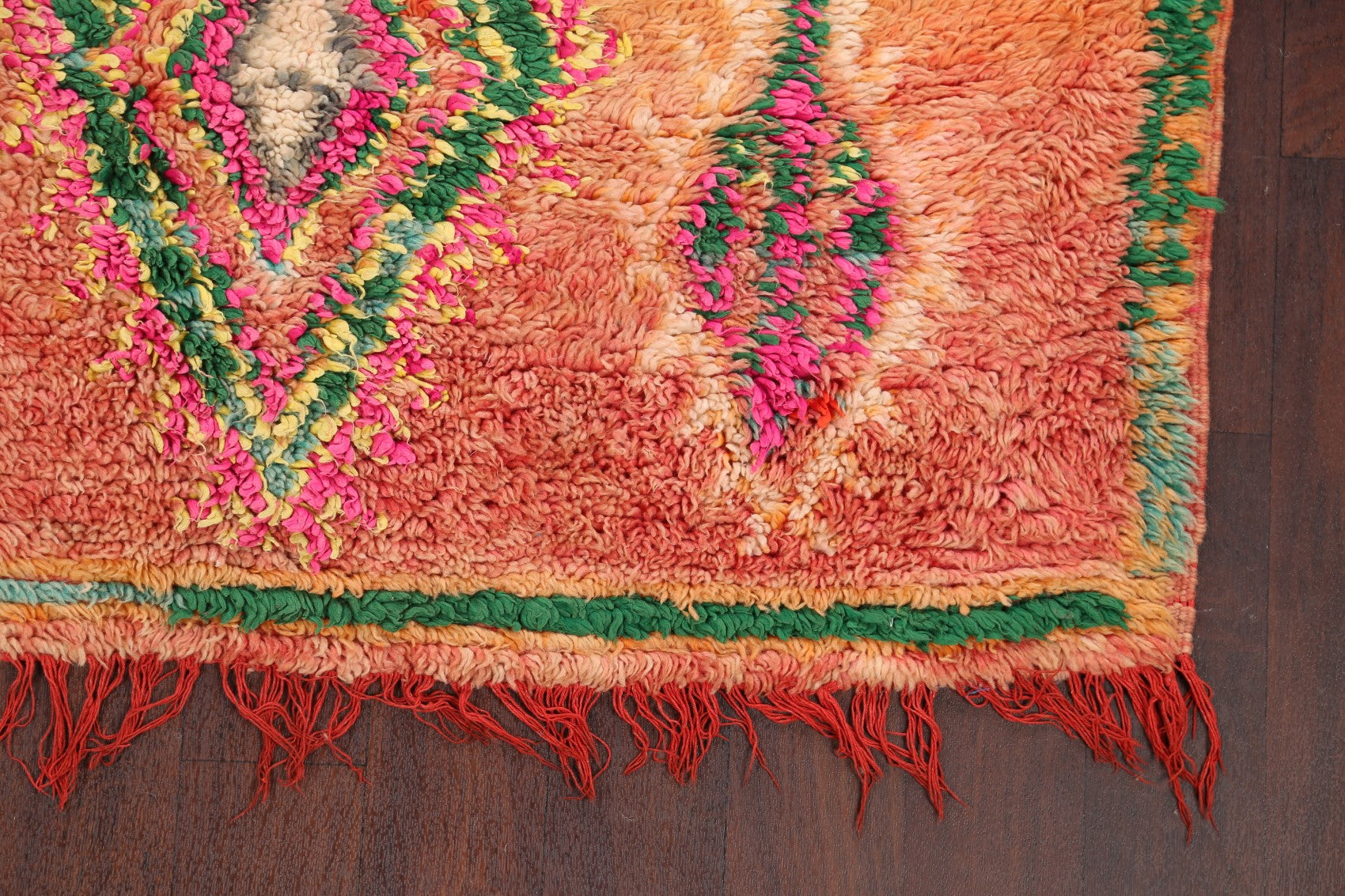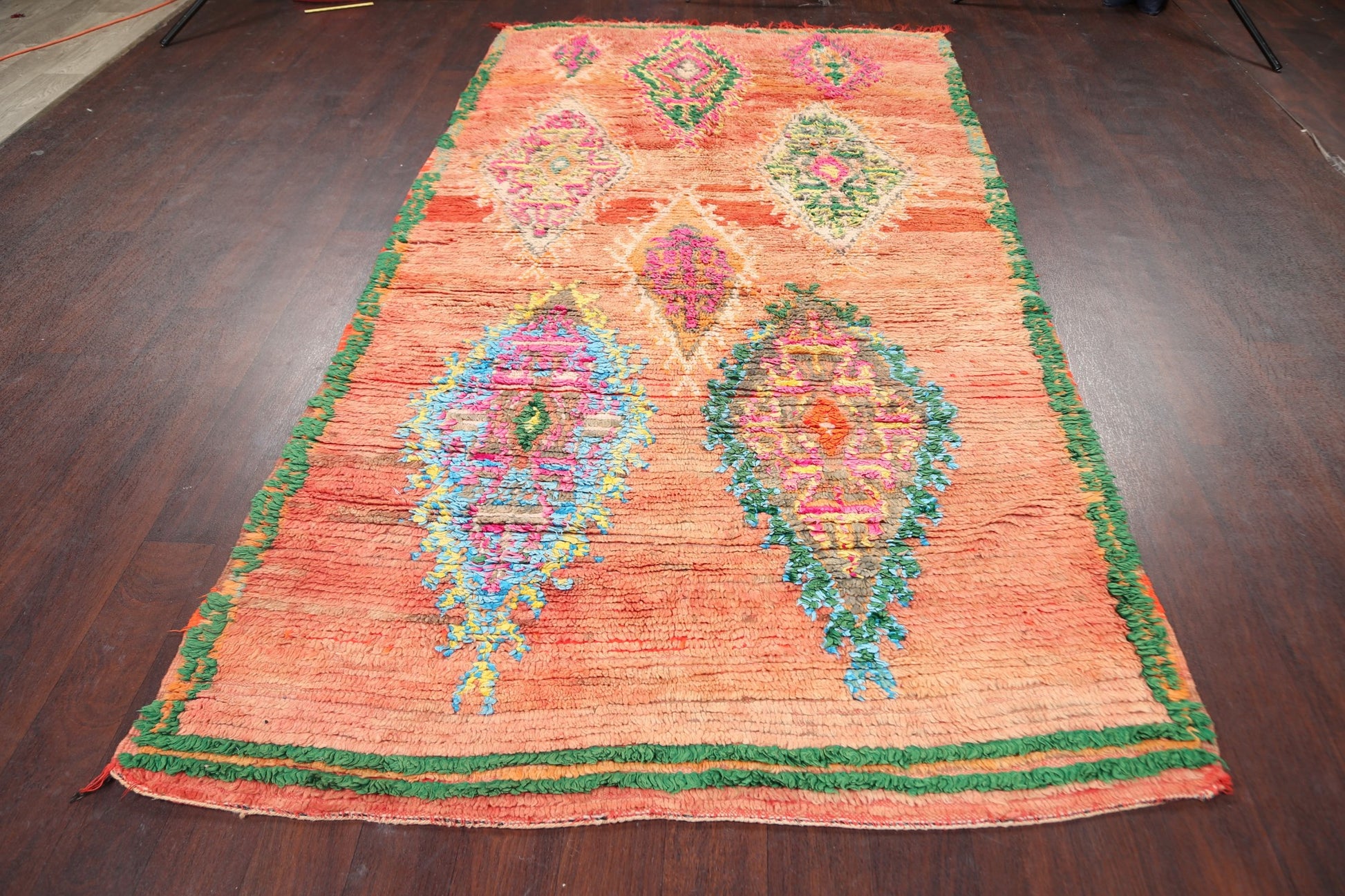 A Beautiful Genuine Morocco Moroccan rug is Hand Knotted by skillful weavers in Morocco with 100% Wool Material. This rug is in Very Good (Abrash) condition. dimensions are 9' 3'' X 4' 10'' in foot and 282 X 147 in centimeter. the primary color is Peach.