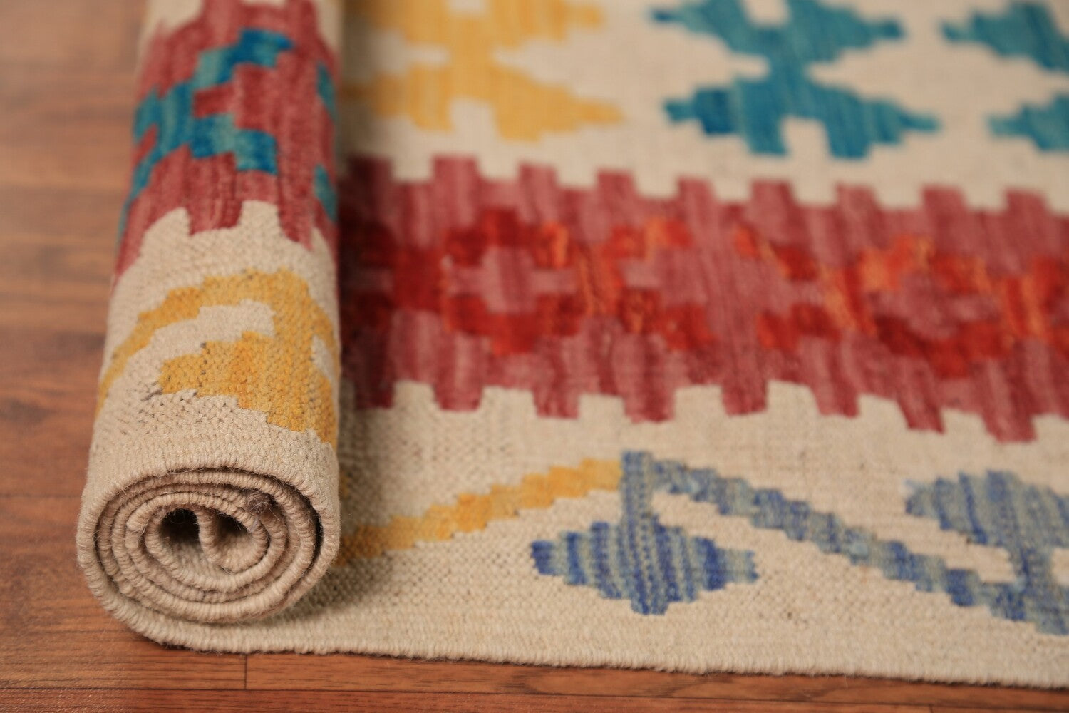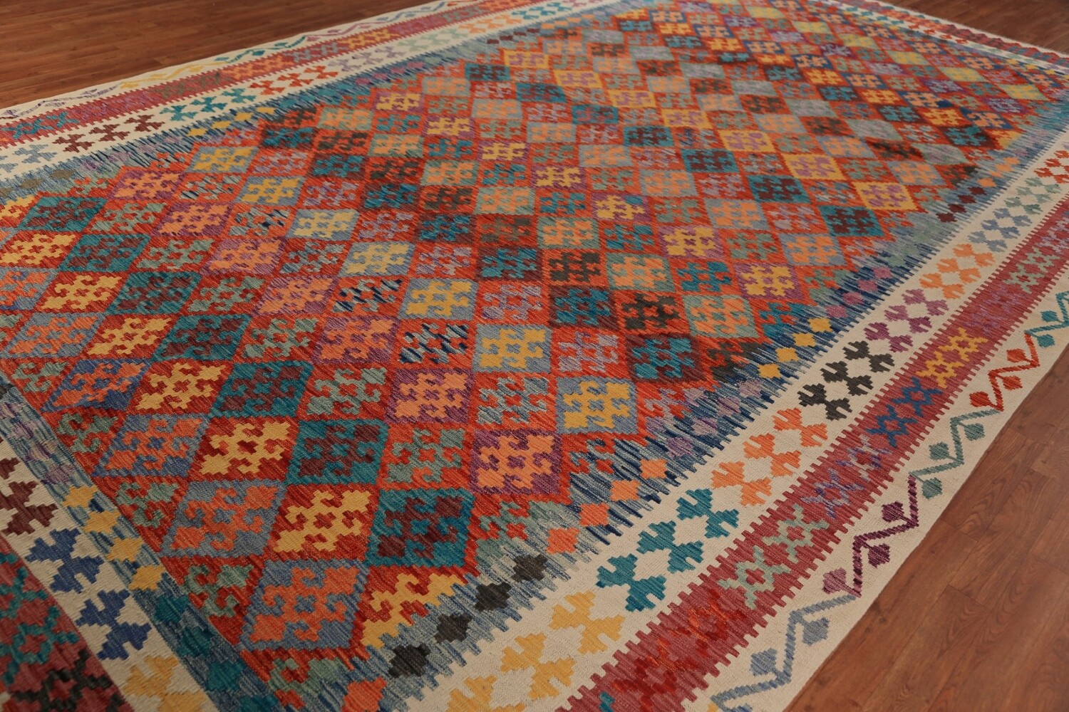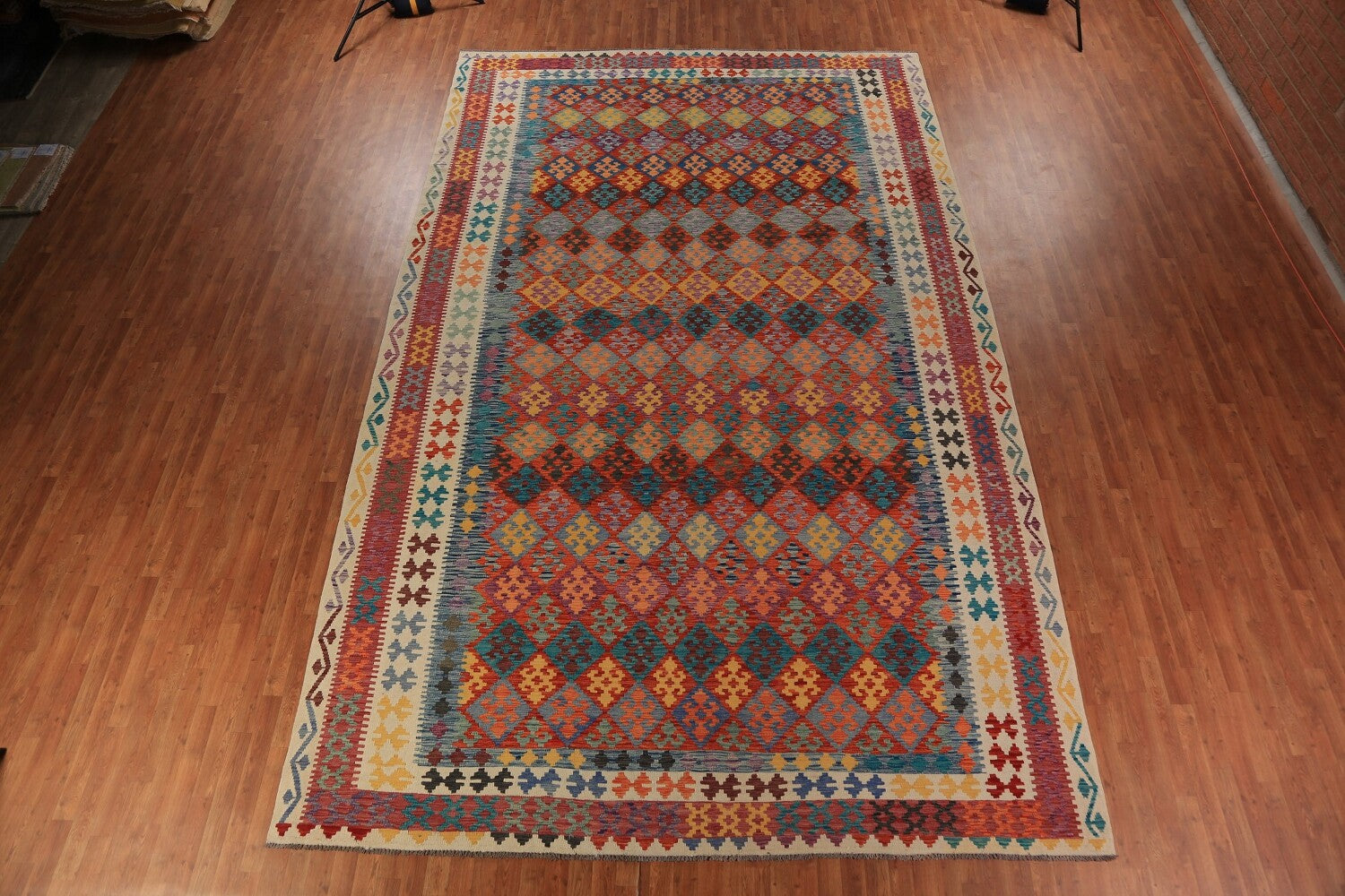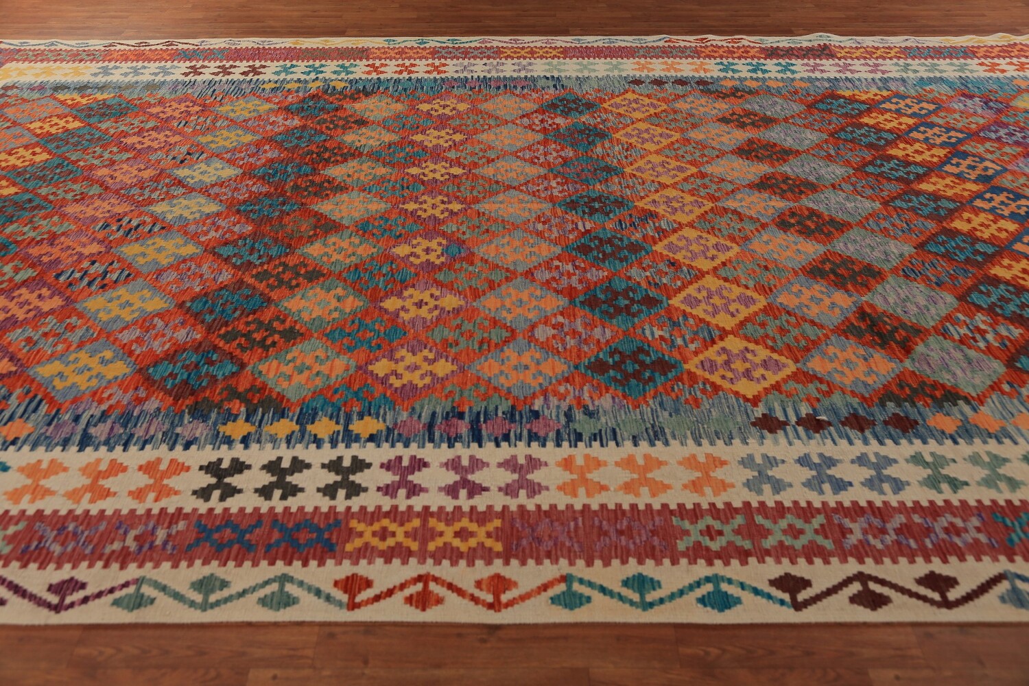 A Beautiful Genuine Pakistan Kilim rug is Hand Woven by skillful weavers in Pakistan with 100% Wool Material. This rug is in New, First Quality condition. dimensions are 16' 1'' X 10' 1'' in foot and 490 X 307 in centimeter. the primary color is Multi-Colored.