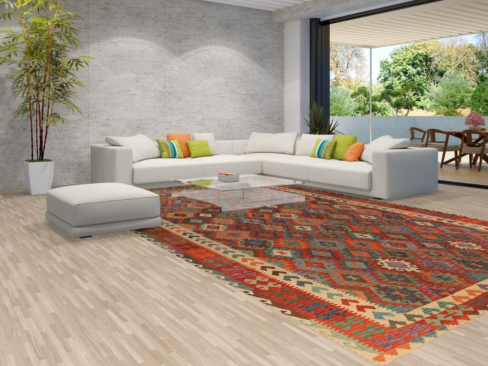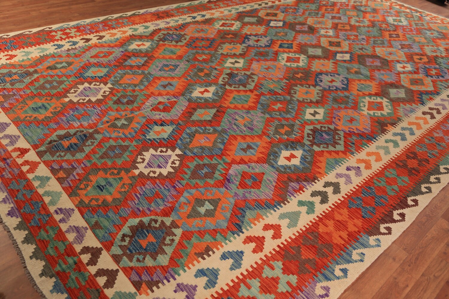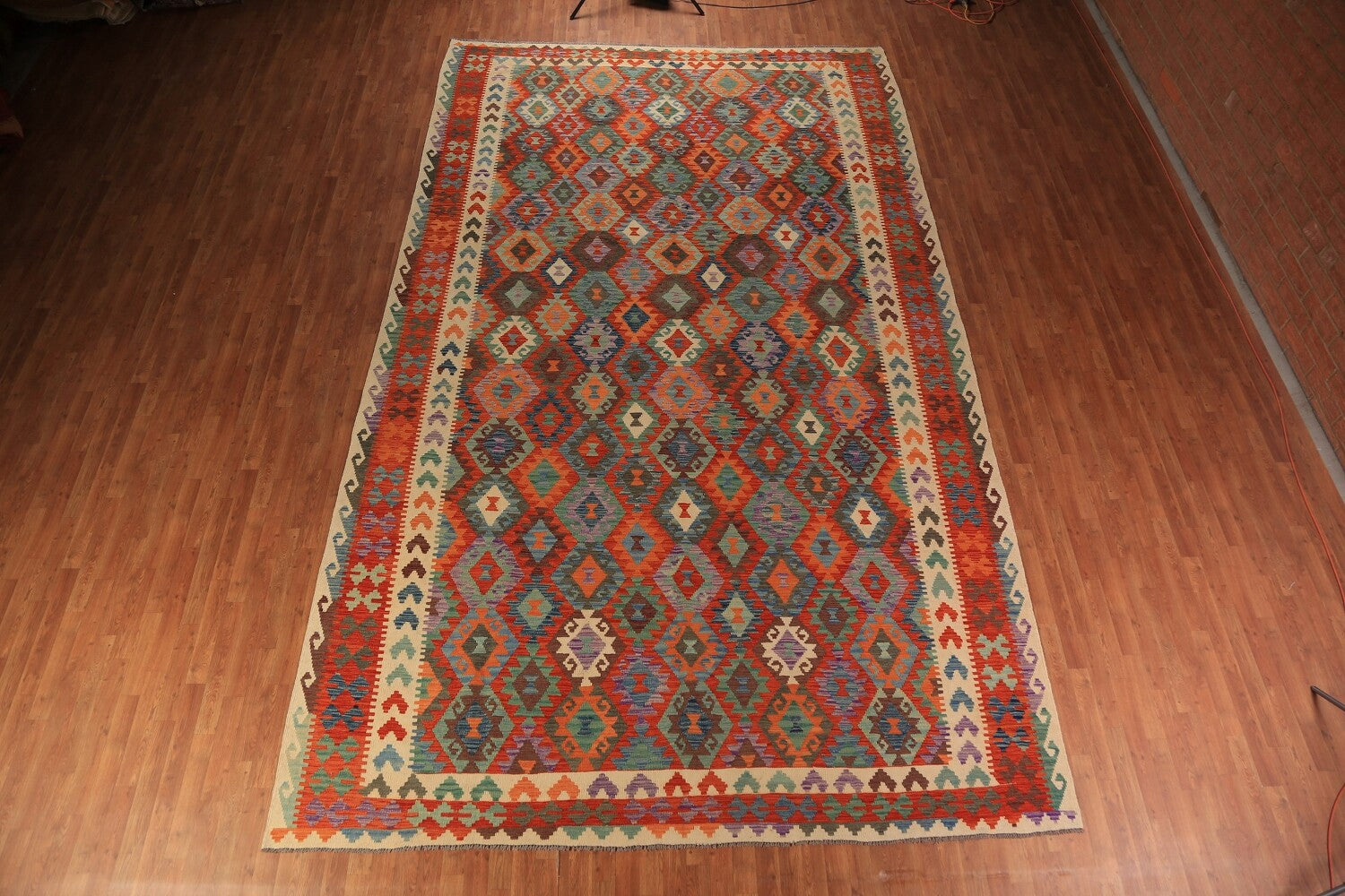 A Beautiful Genuine Pakistan Kilim rug is Hand Woven by skillful weavers in Pakistan with 100% Wool Material. This rug is in New, First Quality condition. dimensions are 16' 1'' X 9' 8'' in foot and 490 X 295 in centimeter. the primary color is Multi-Colored.