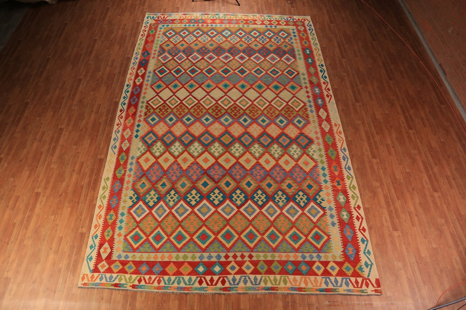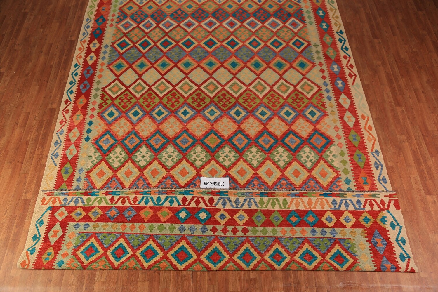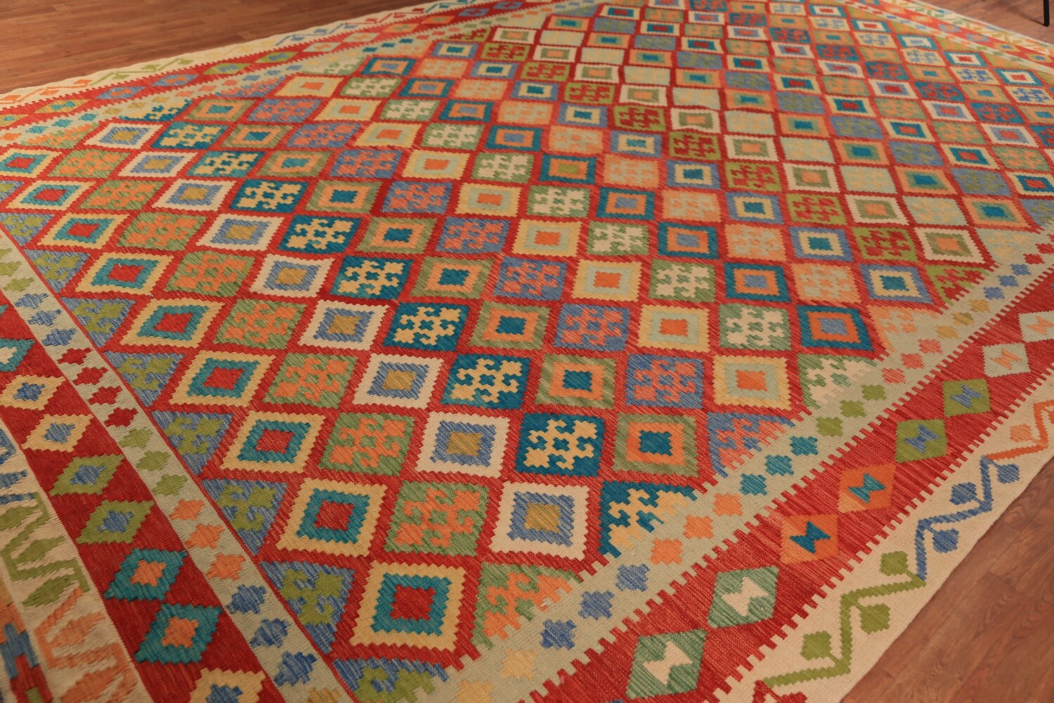 A Beautiful Genuine Pakistan Kilim rug is Hand Woven by skillful weavers in Pakistan with 100% Wool Material. This rug is in New, First Quality condition. dimensions are 16' 0'' X 10' 4'' in foot and 488 X 315 in centimeter. the primary color is Multi-Colored.
