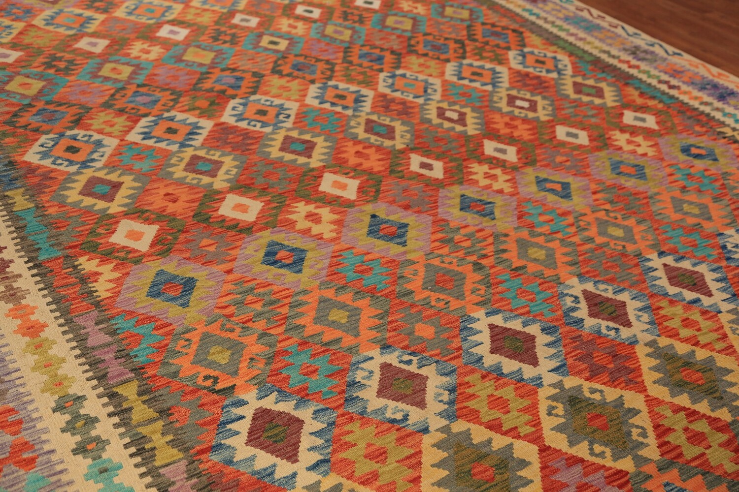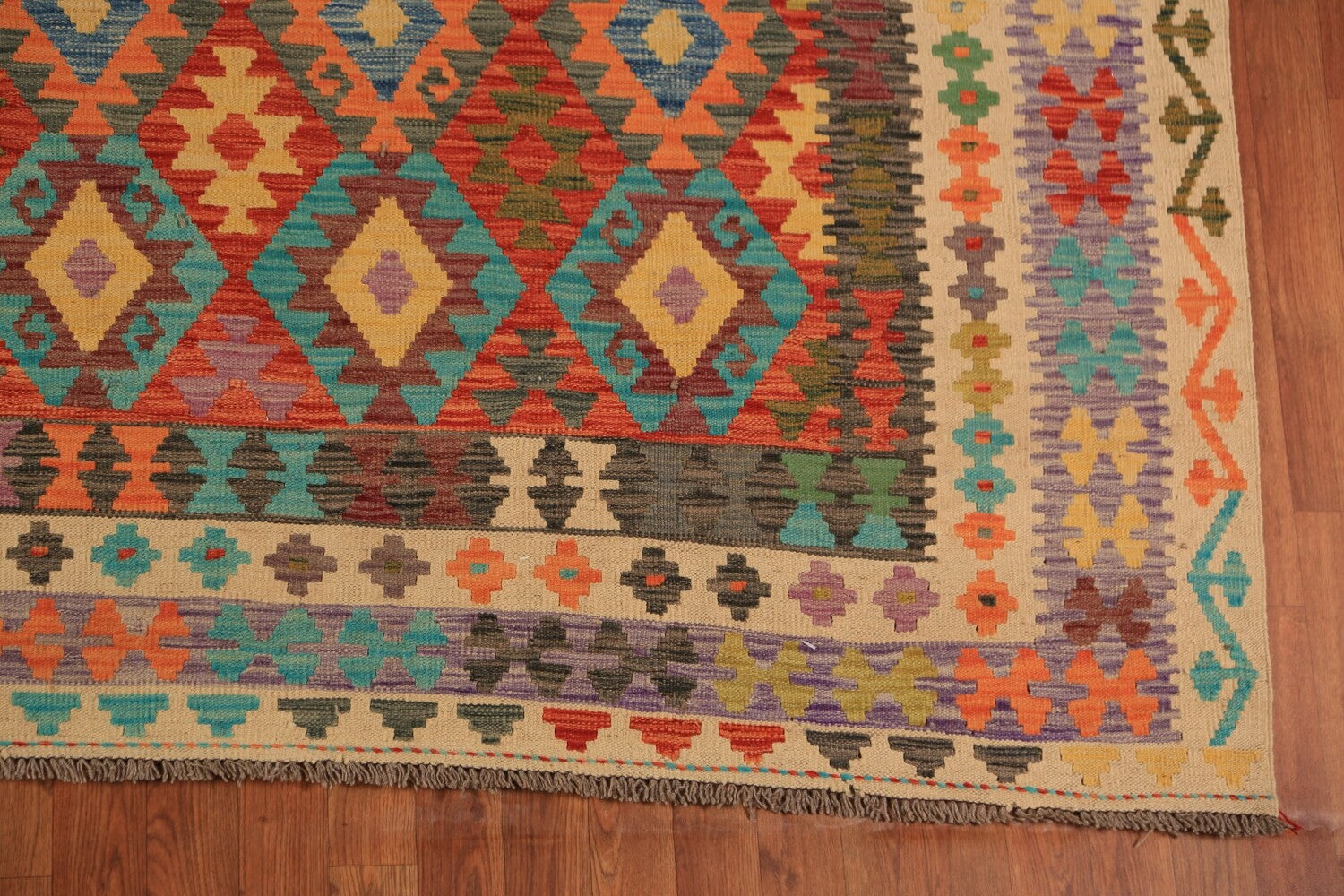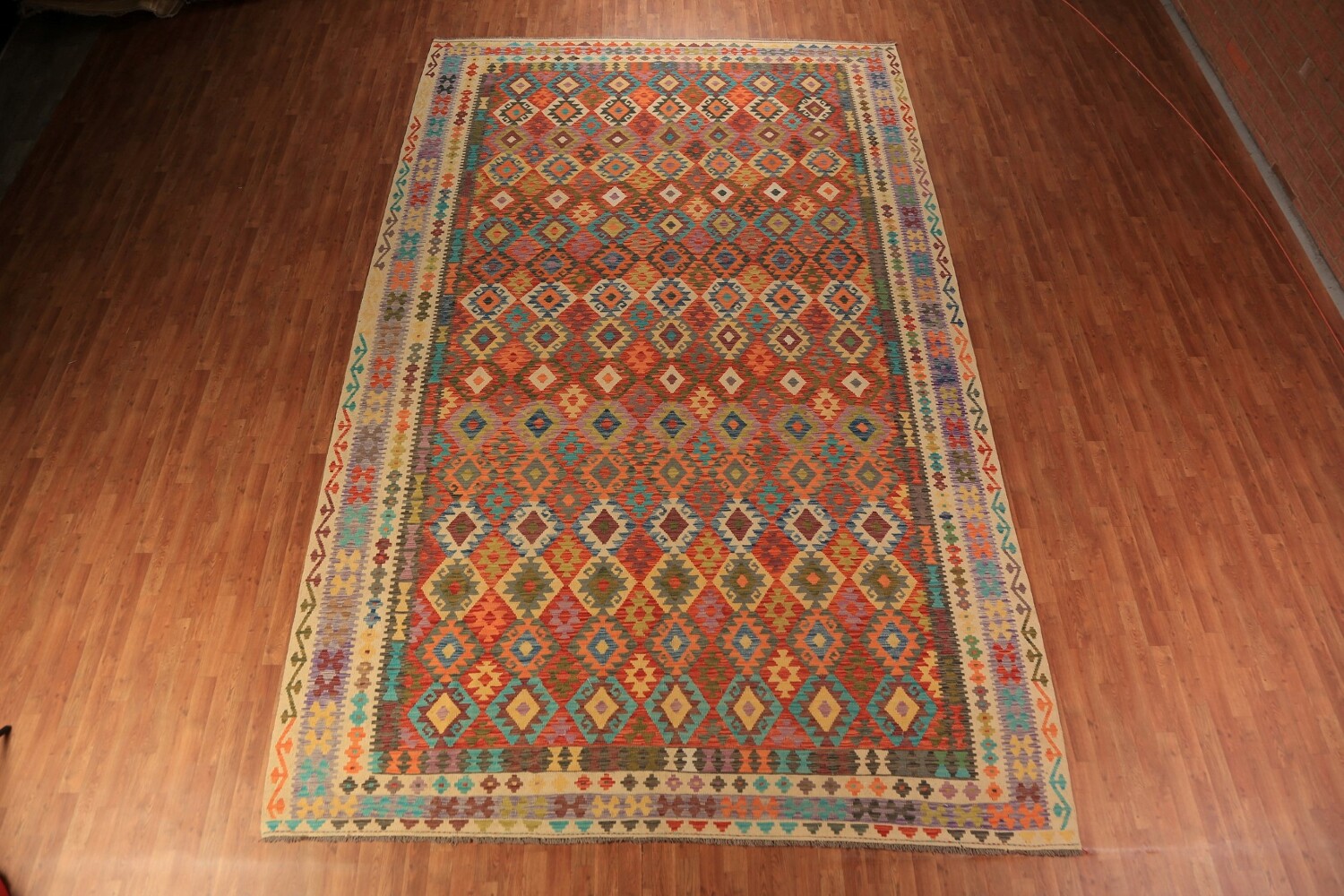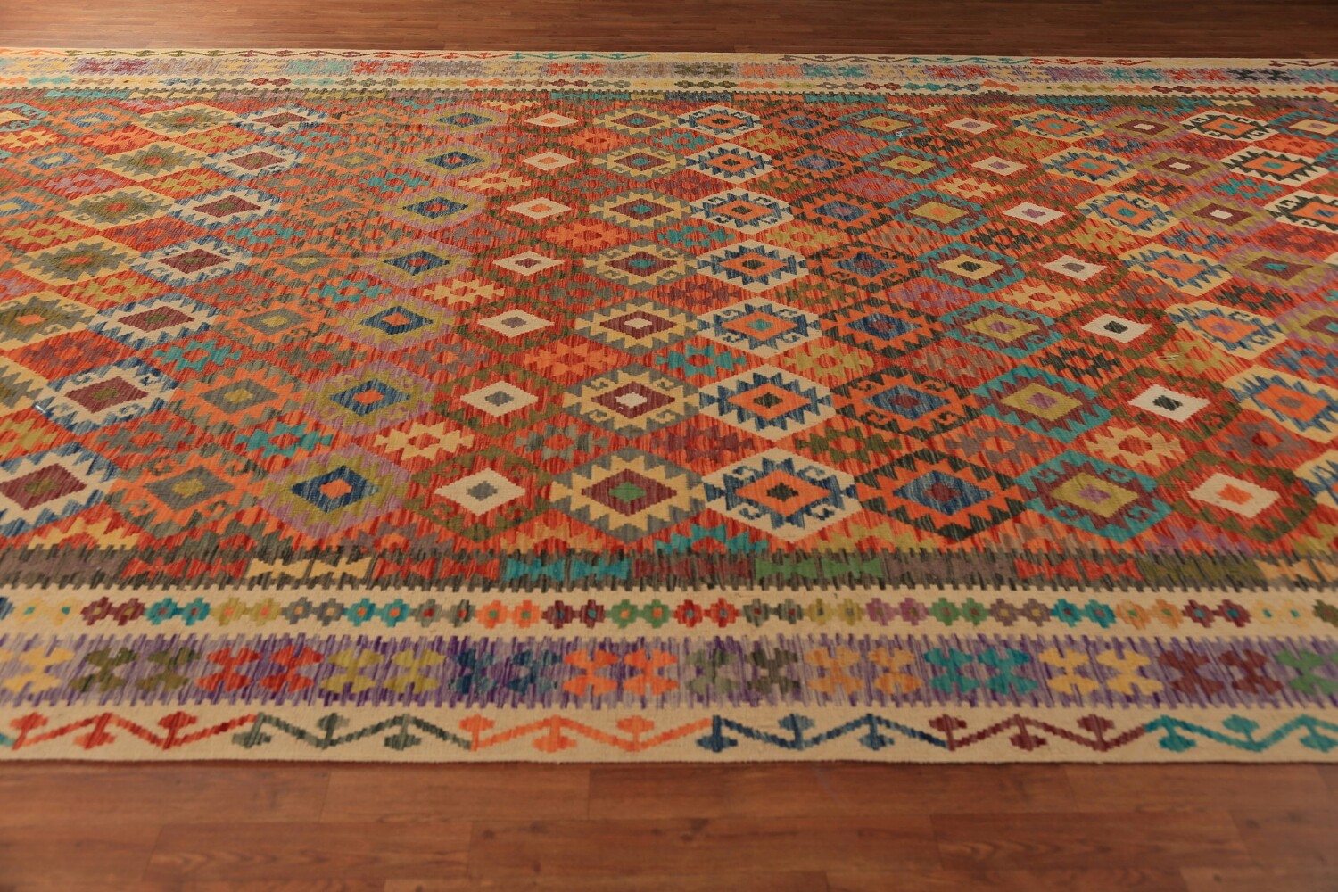 A Beautiful Genuine Pakistan Kilim rug is Hand Woven by skillful weavers in Pakistan with 100% Wool Material. This rug is in New, First Quality condition. dimensions are 16' 1'' X 10' 0'' in foot and 490 X 305 in centimeter. the primary color is Multi-Colored.