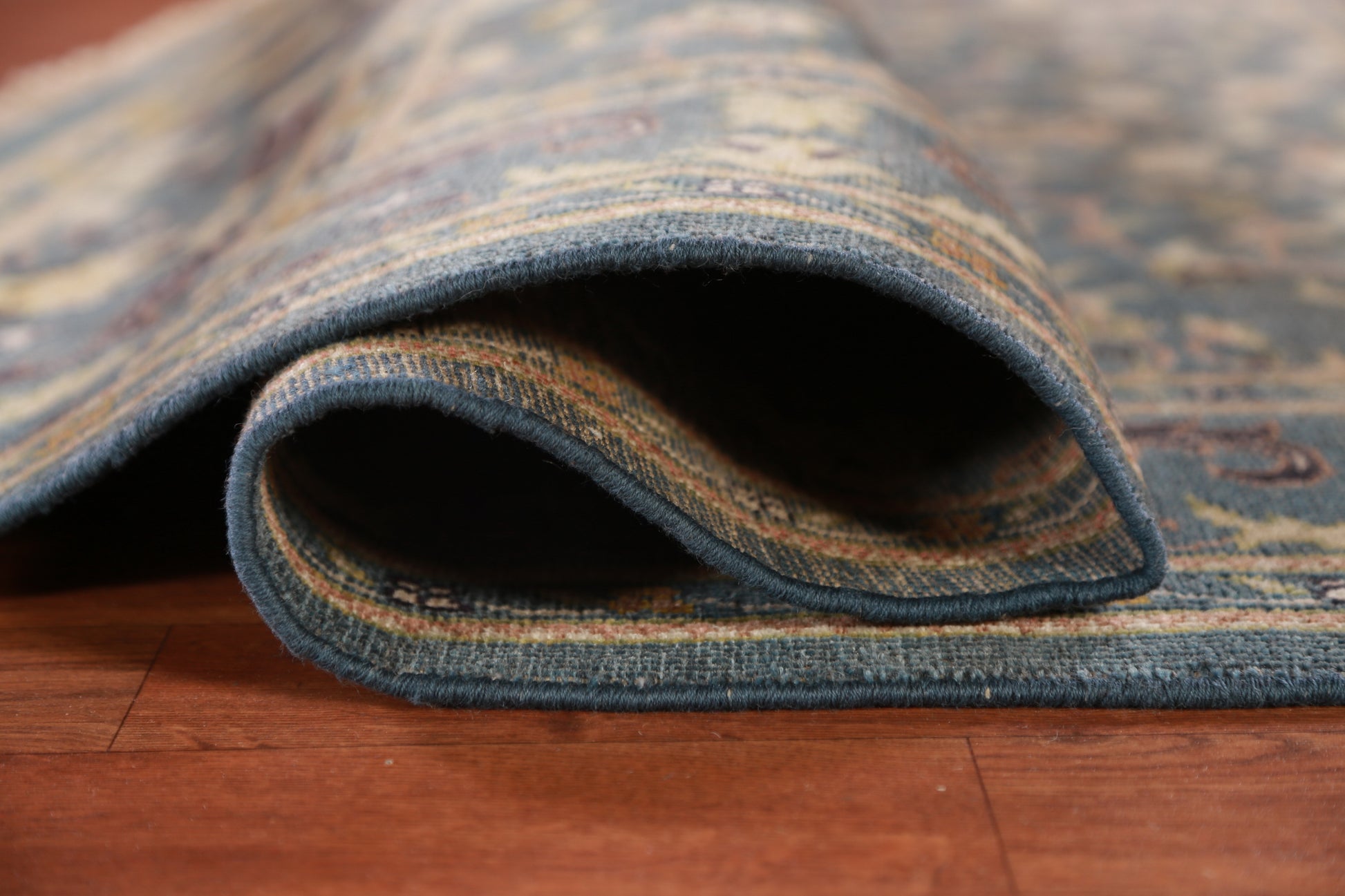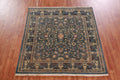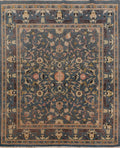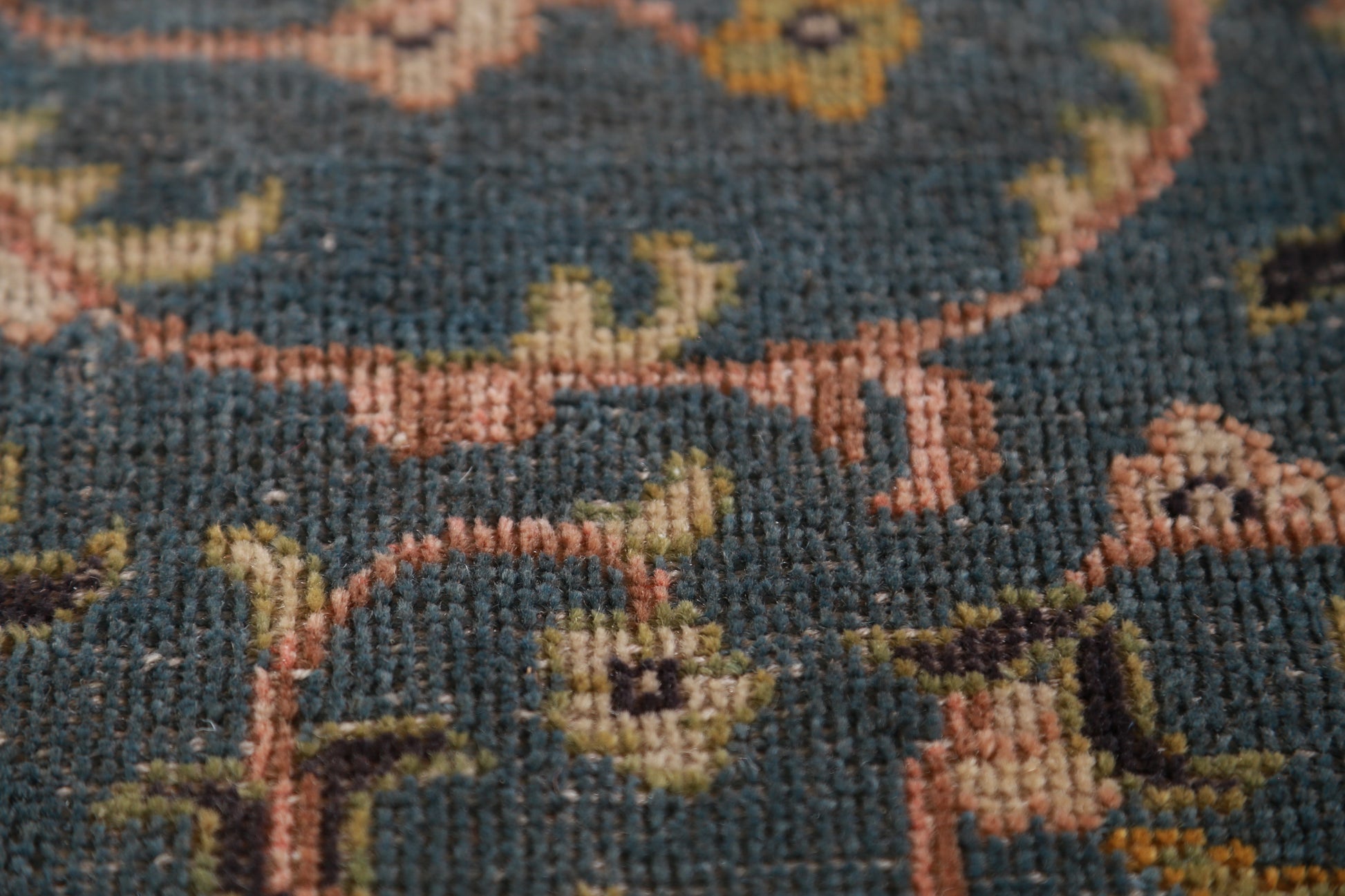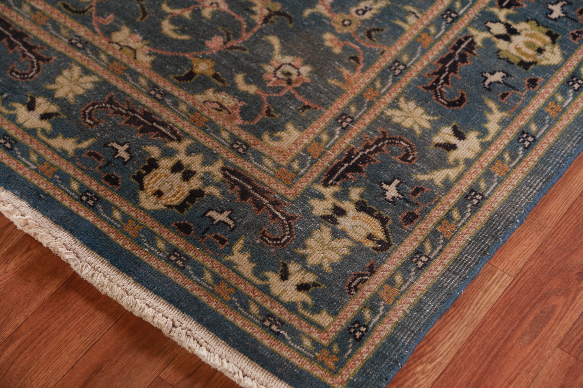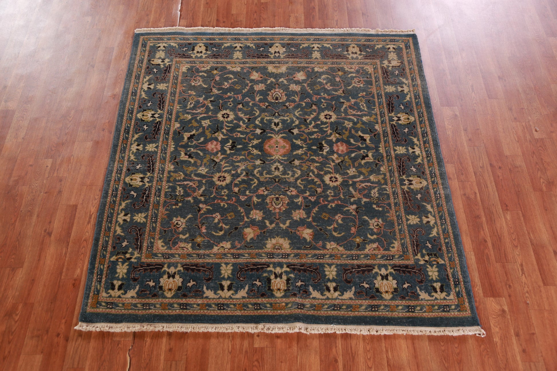 Square Floral Blue Oushak Vegetable Dye Area Rug 5x5
