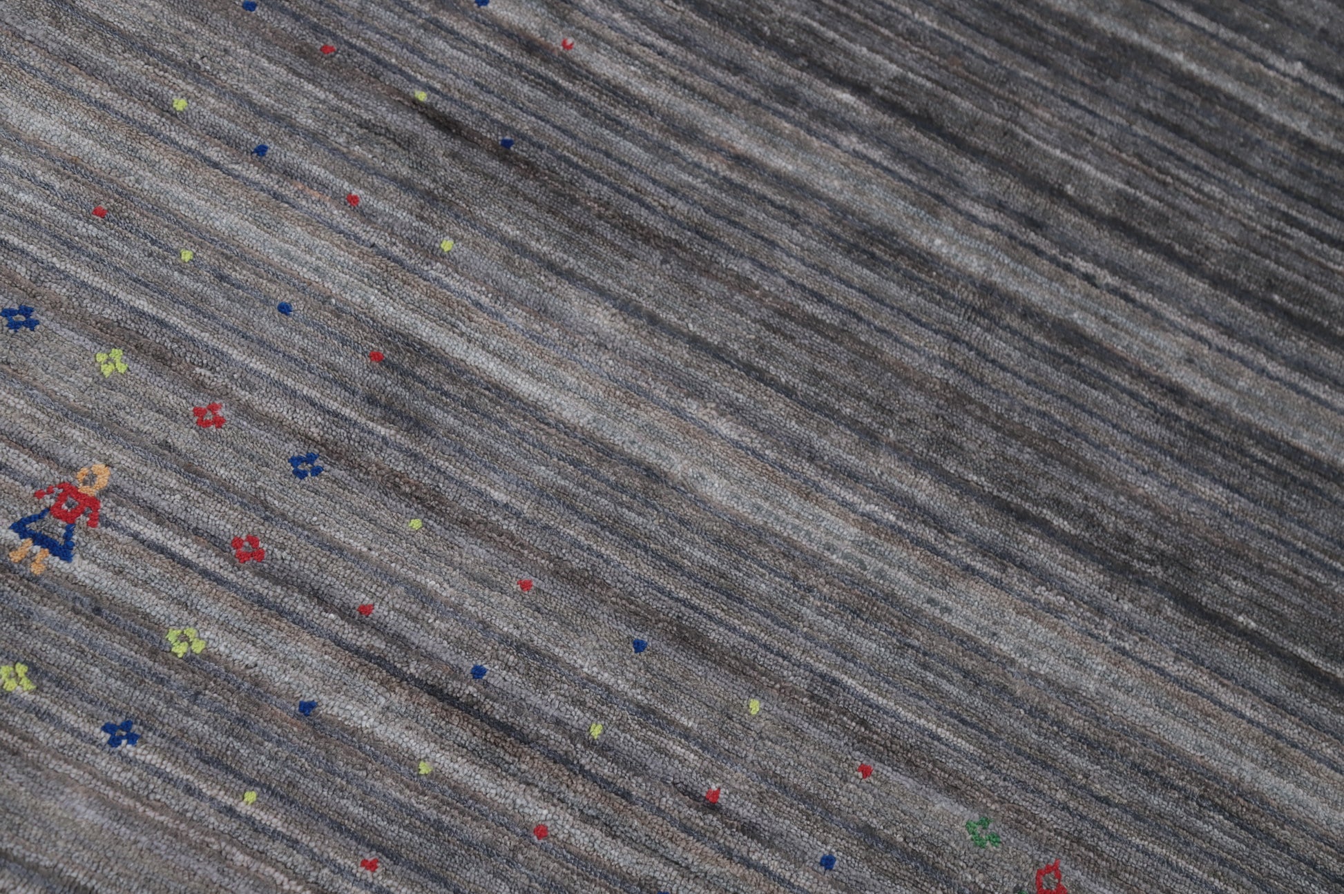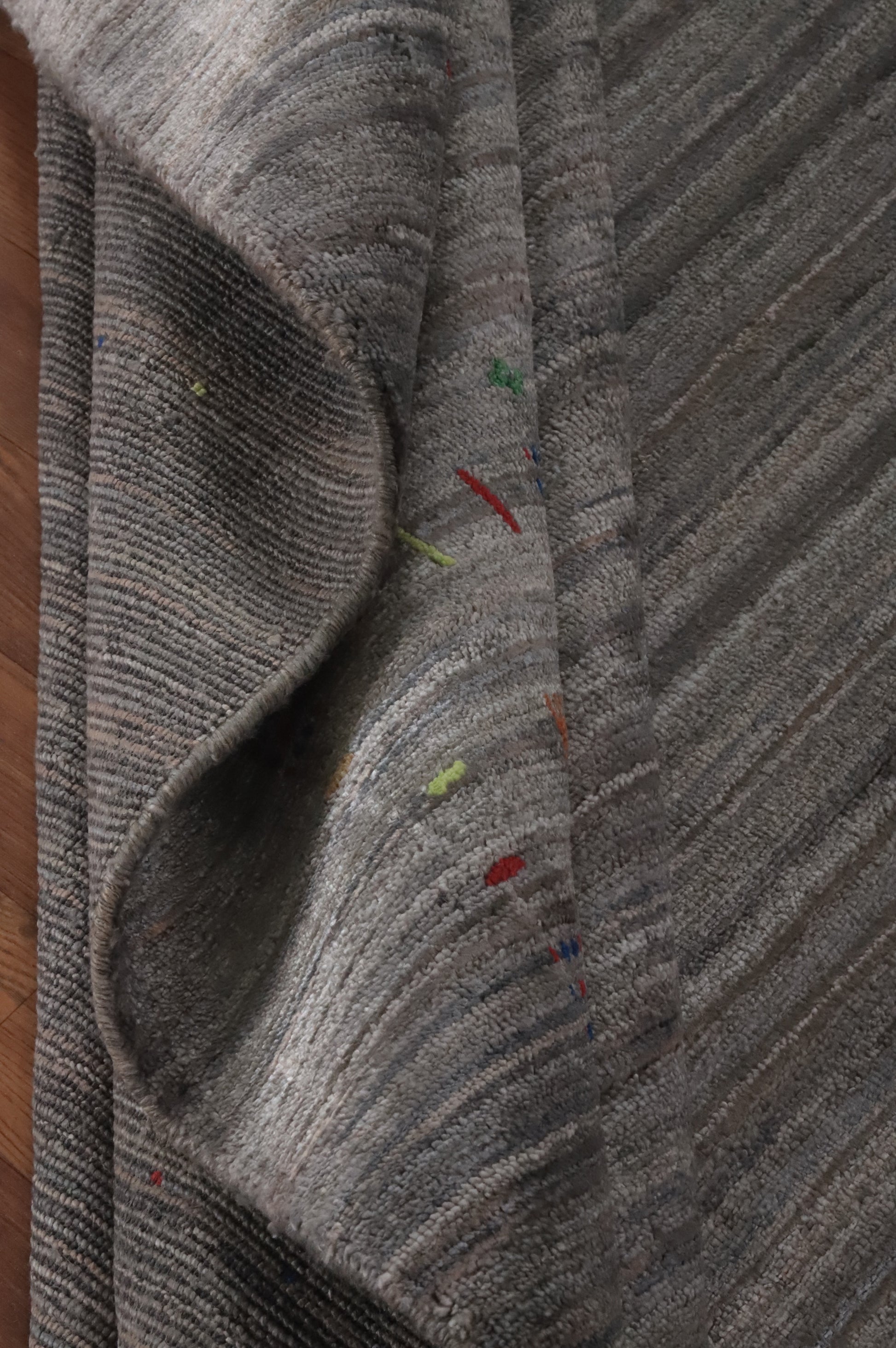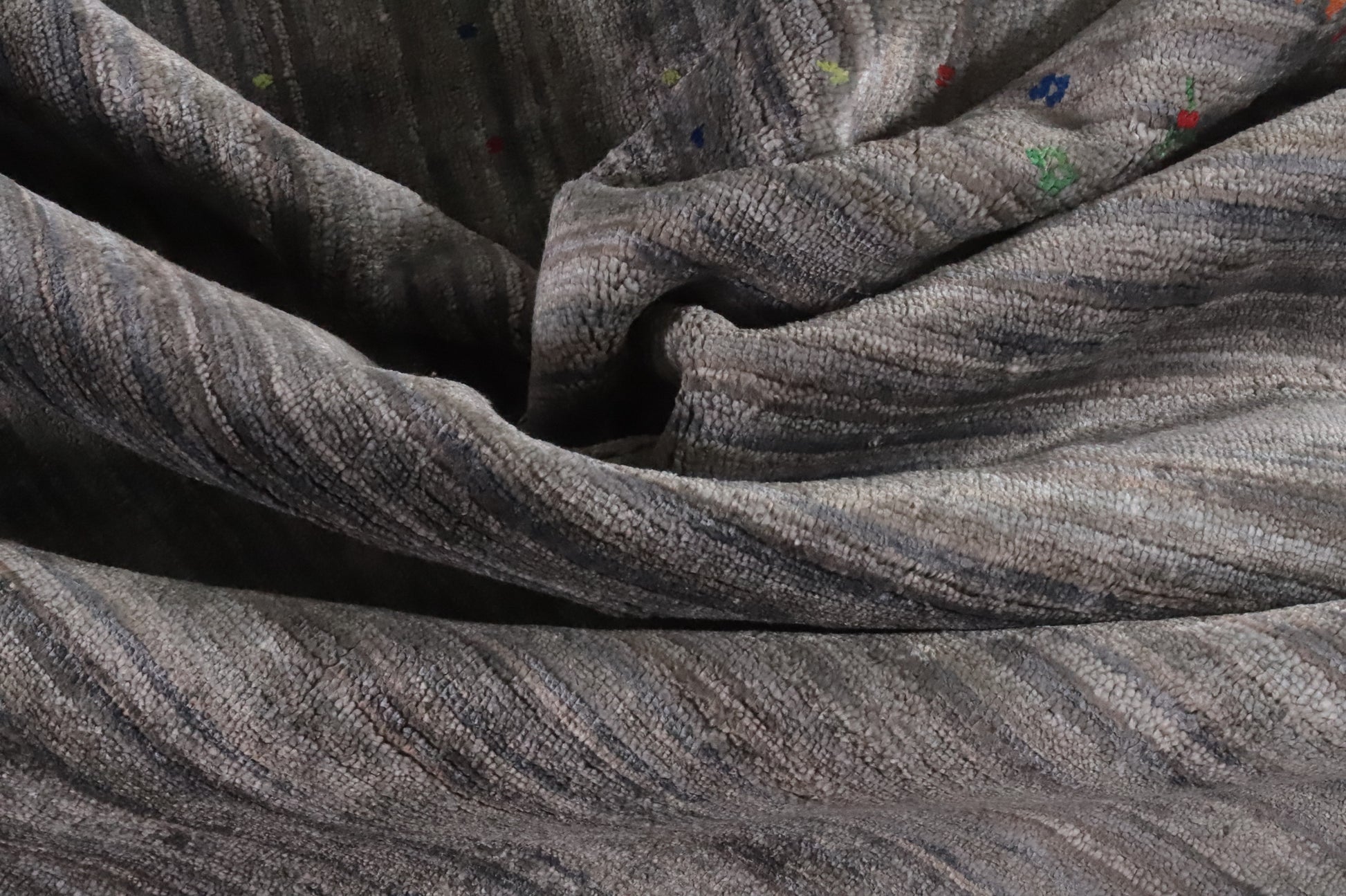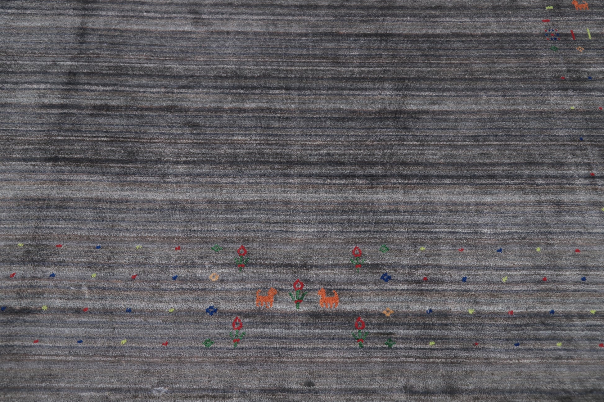 A Beautiful Genuine India Gabbeh rug is Hand Knotted by skillful weavers in India with Silk Material. This rug is in New, First Quality condition. dimensions are 9' 7'' X 9' 4'' in foot and 292 X 284 in centimeter. the primary color is Greys & Charcoal.