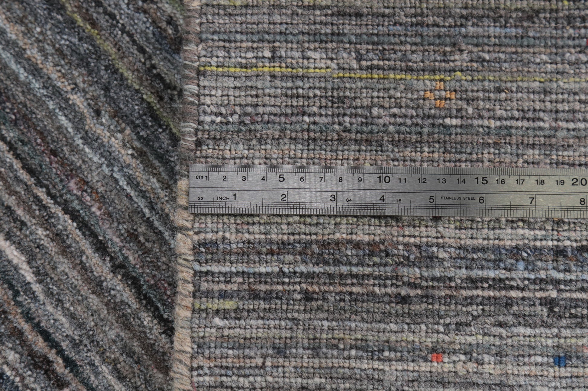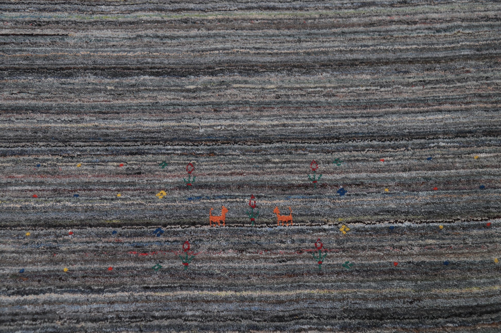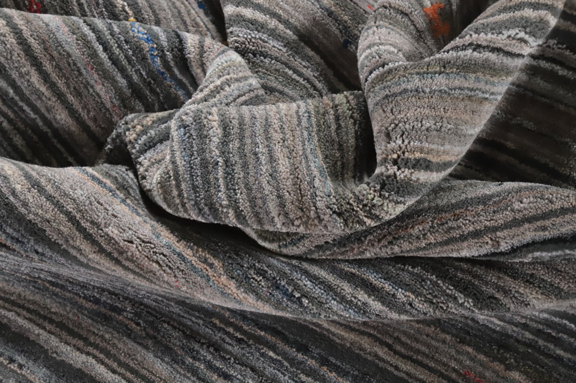 A Beautiful Genuine India Gabbeh rug is Hand Knotted by skillful weavers in India with 100% Wool Material. This rug is in New, First Quality condition. dimensions are 8' 1'' X 8' 0'' in foot and 246 X 244 in centimeter. the primary color is Greys & Charcoal.