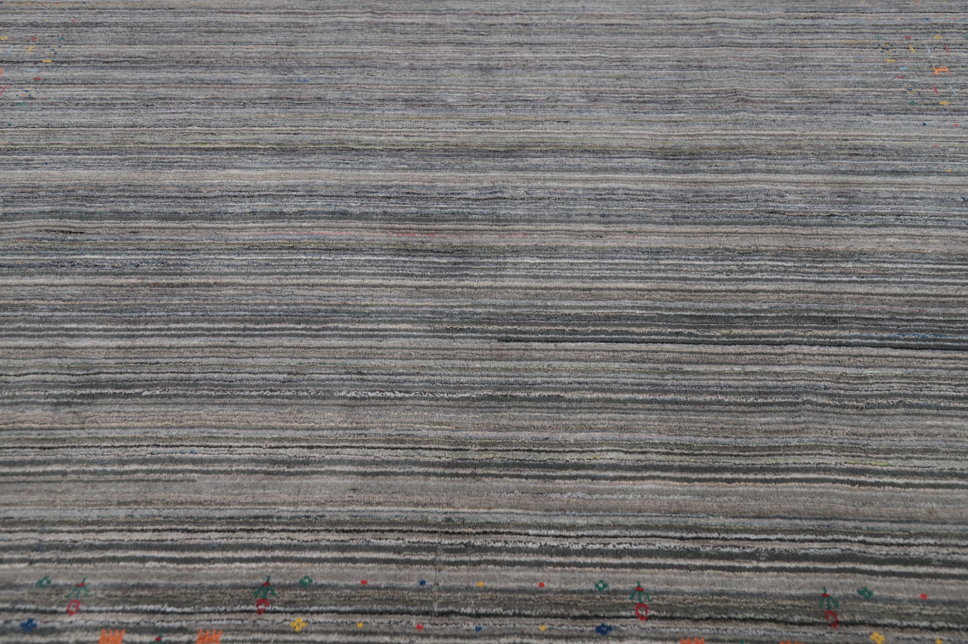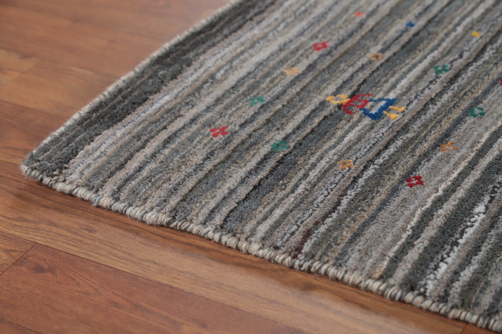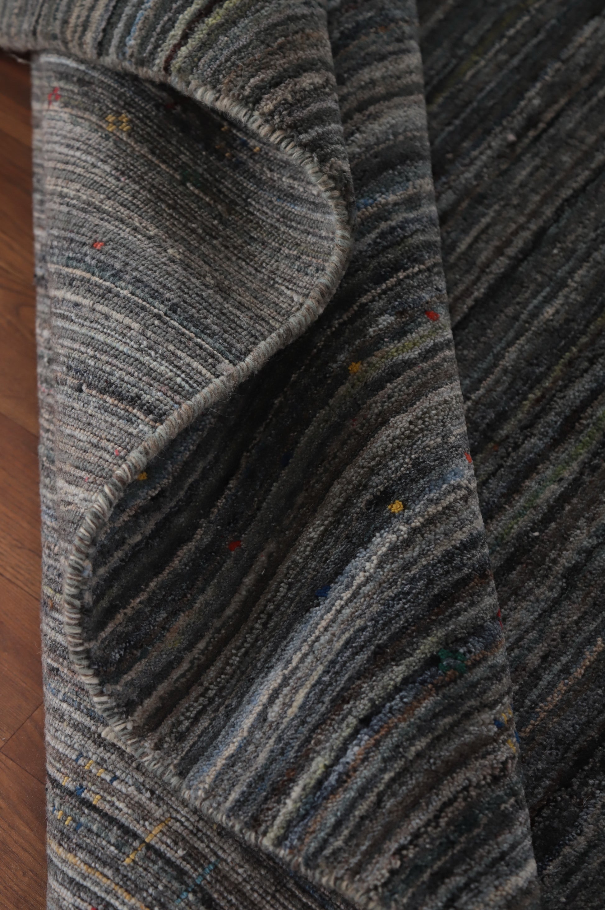 A Beautiful Genuine India Gabbeh rug is Hand Knotted by skillful weavers in India with 100% Wool Material. This rug is in New, First Quality condition. dimensions are 8' 1'' X 8' 0'' in foot and 246 X 244 in centimeter. the primary color is Greys & Charcoal.