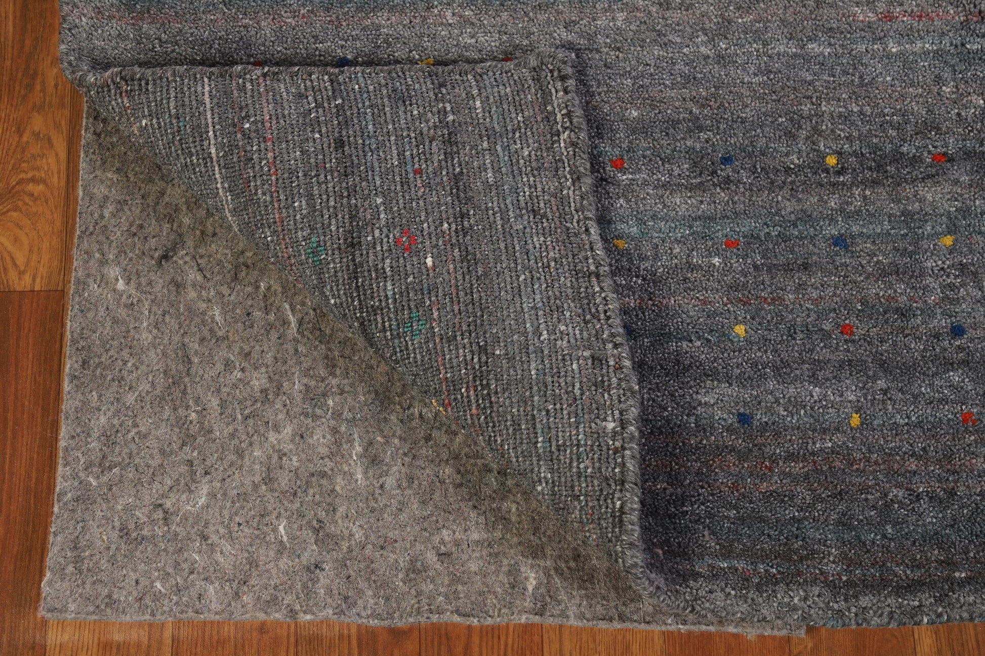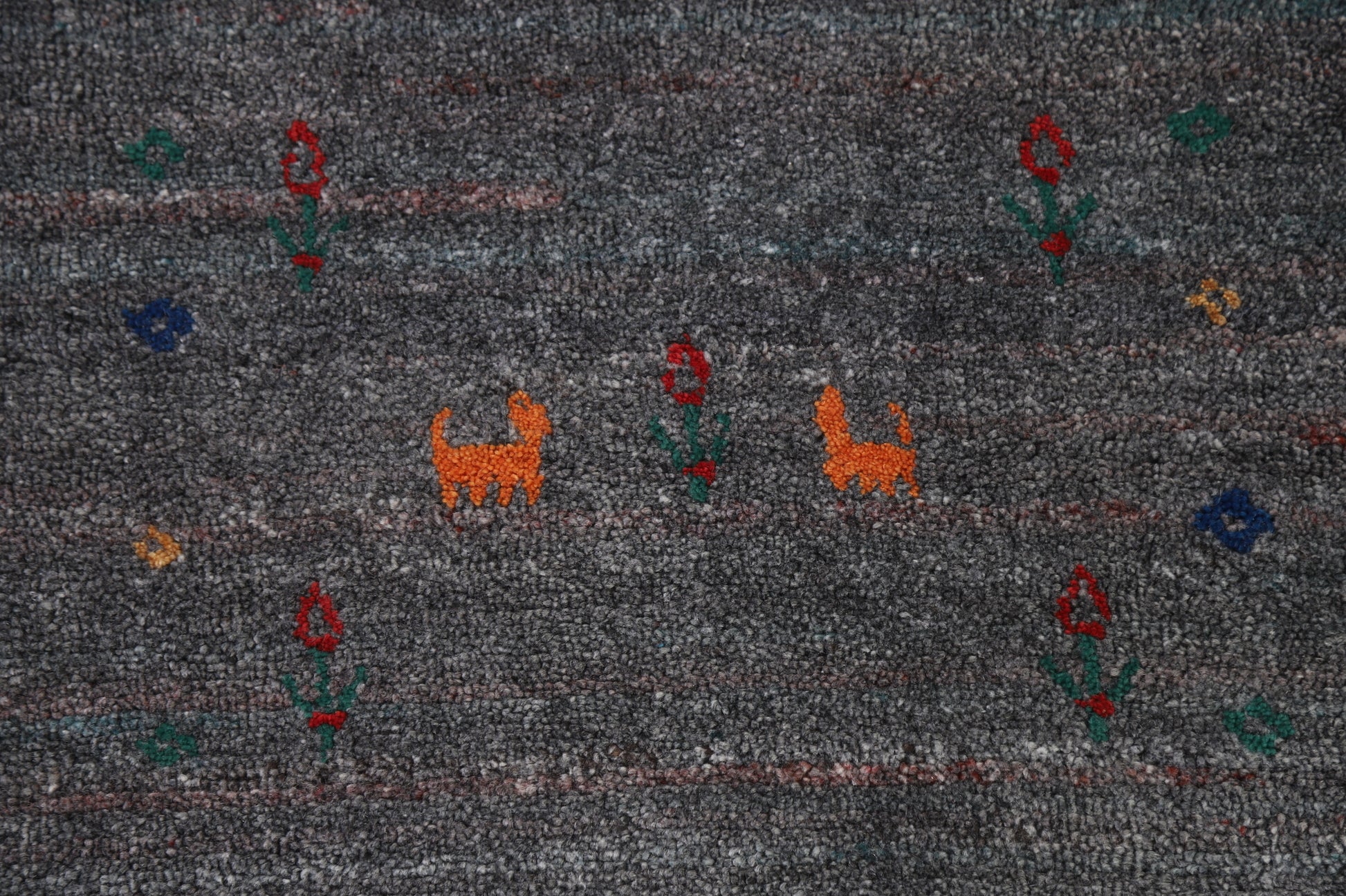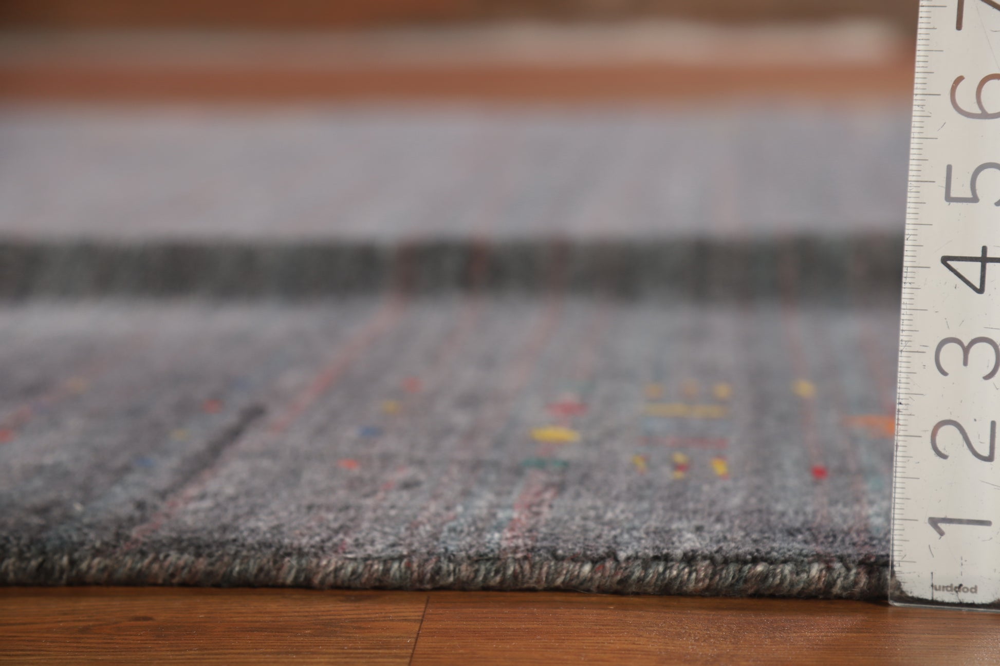 A Beautiful Genuine India Gabbeh rug is Hand Knotted by skillful weavers in India with 100% Wool Material. This rug is in New, First Quality condition. dimensions are 8' 1'' X 8' 2'' in foot and 246 X 249 in centimeter. the primary color is Greys & Charcoal.