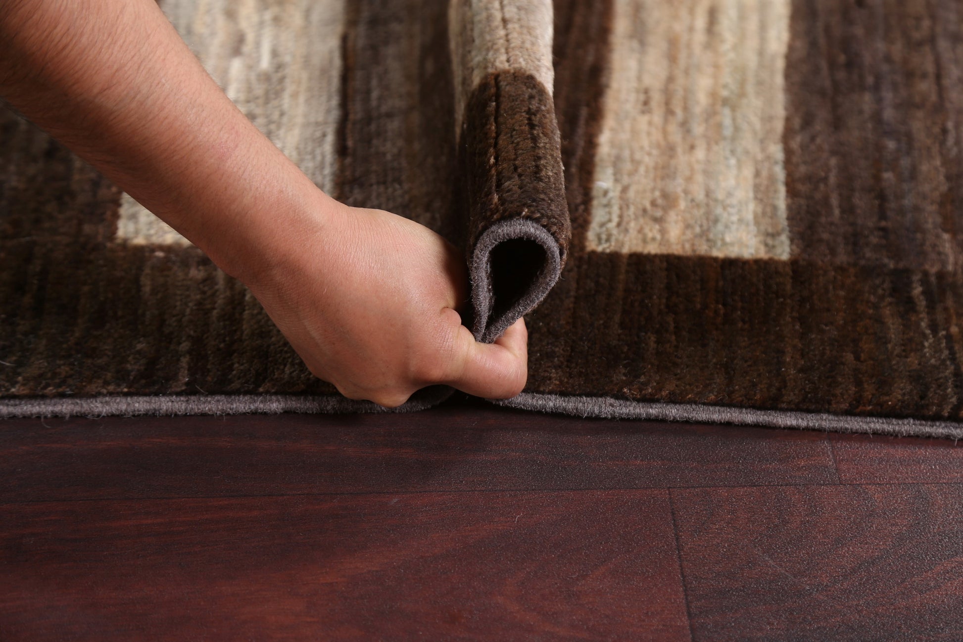 A Beautiful Genuine Pakistan Gabbeh (kashkoli) rug is Hand Knotted by skillful weavers in Pakistan with 100% Wool Material. This rug is in New, First Quality condition. dimensions are 9' 1'' X 6' 3'' in foot and 277 X 191 in centimeter. the primary color is Brown.