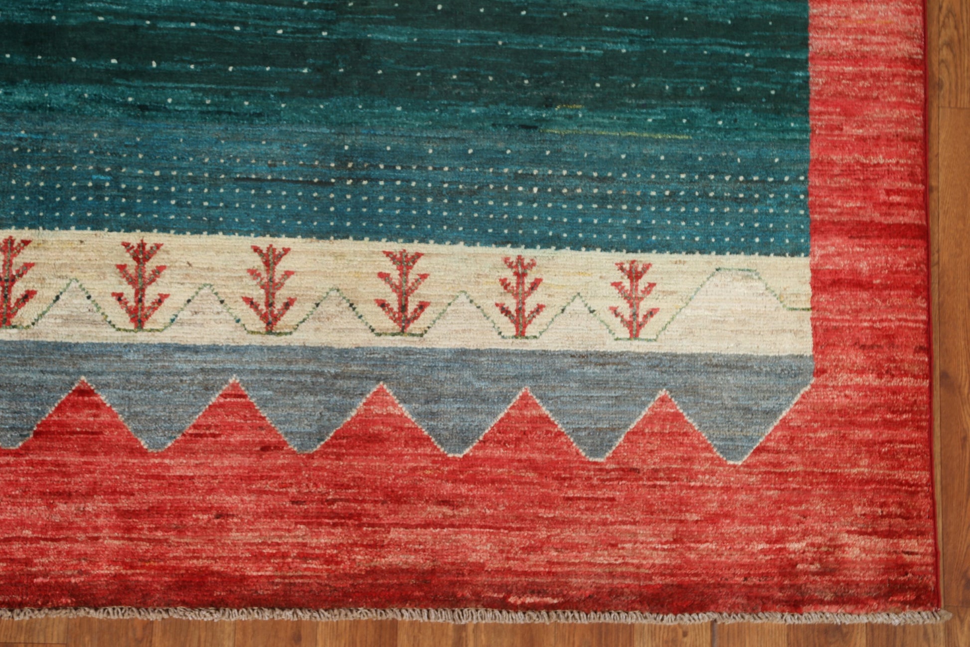 A Beautiful Genuine Pakistan Gabbeh (kashkoli) rug is Hand Knotted by skillful weavers in Pakistan with 100% Wool Material. This rug is in condition. dimensions are 9' 7'' X 6' 6'' in foot and 292 X 198 in centimeter. the primary color is Multi-Colored.