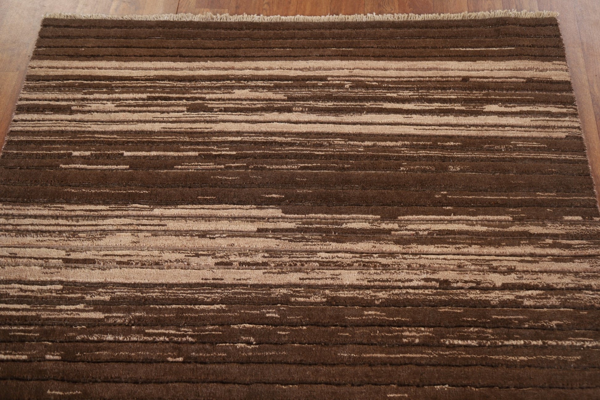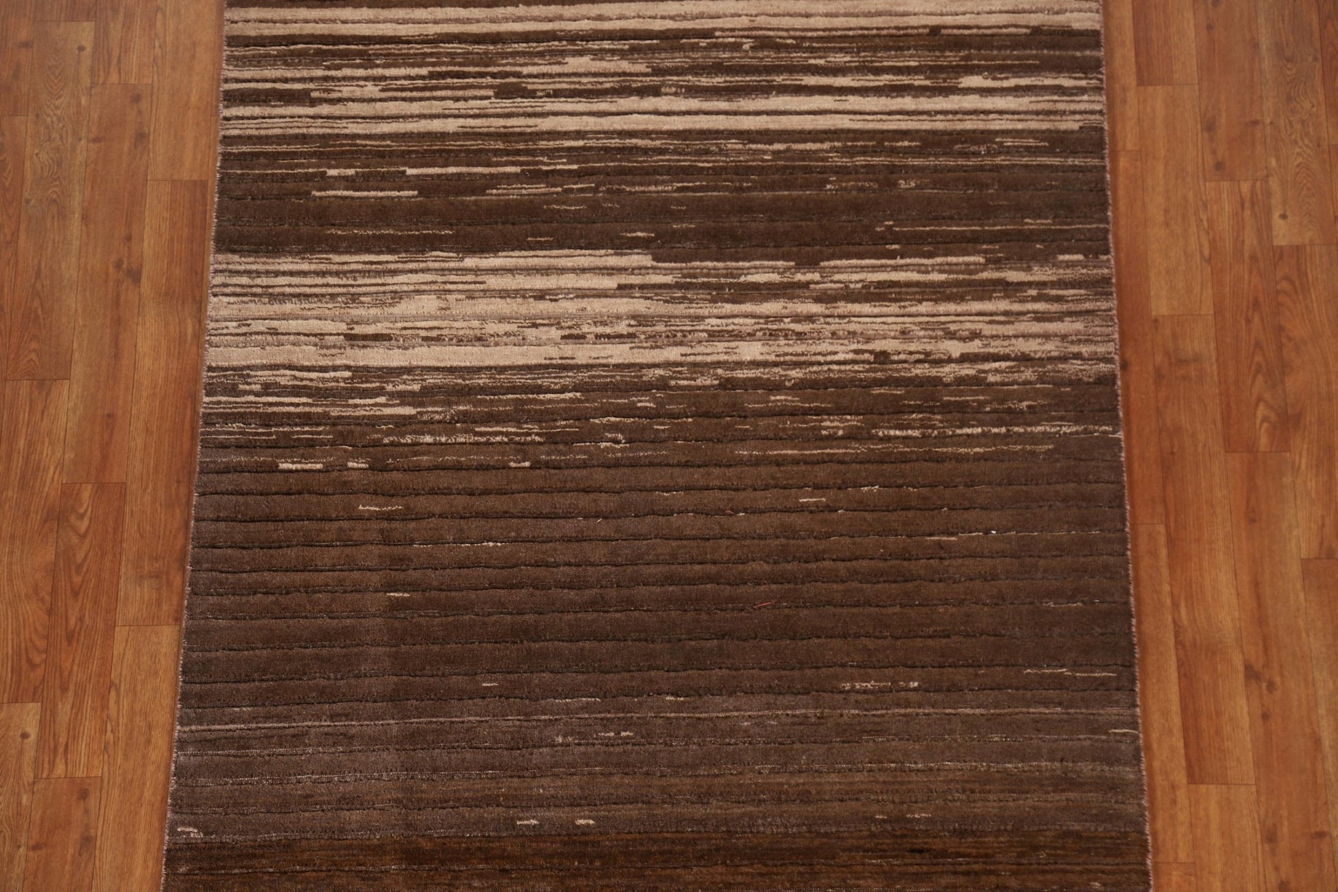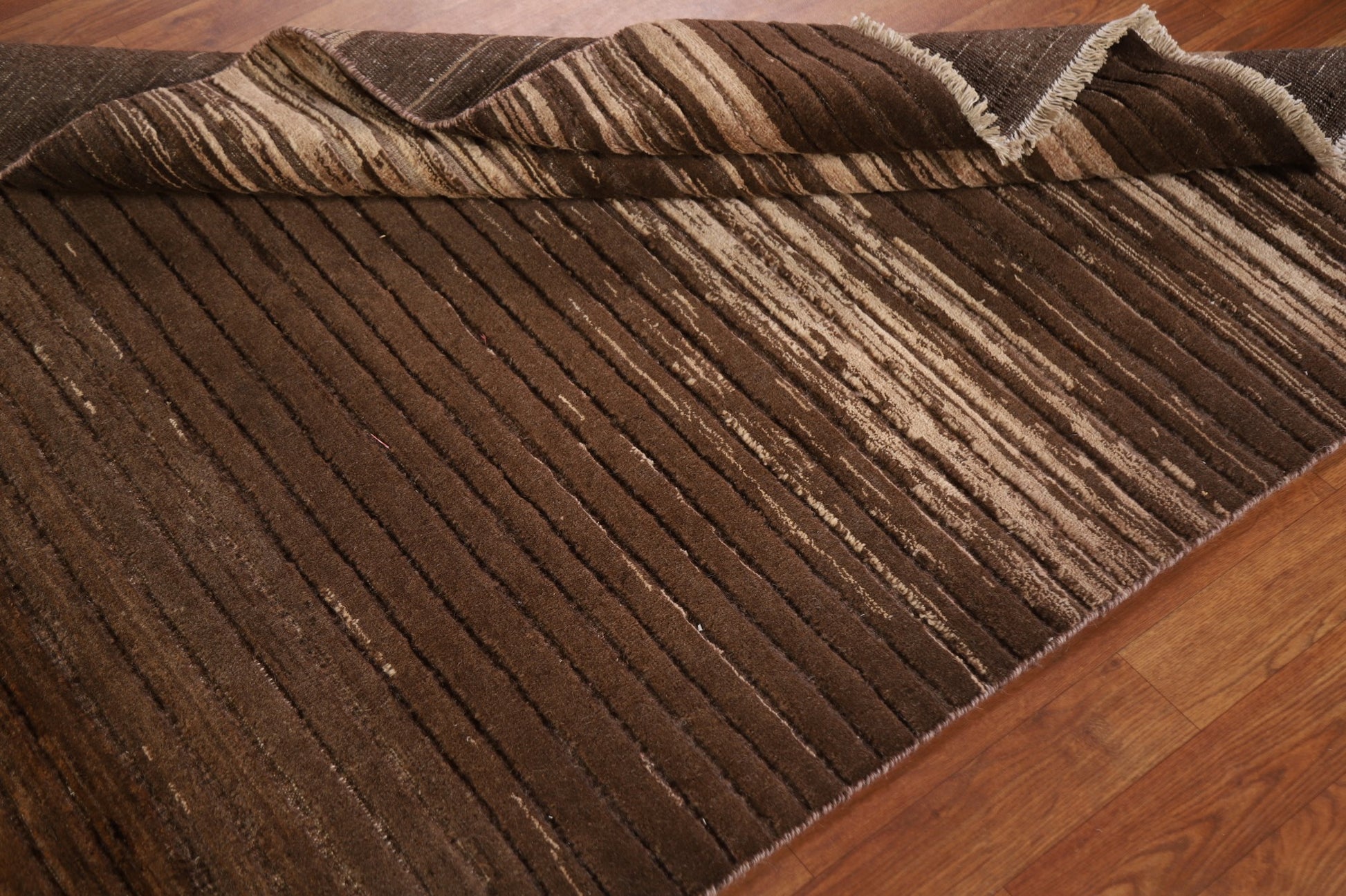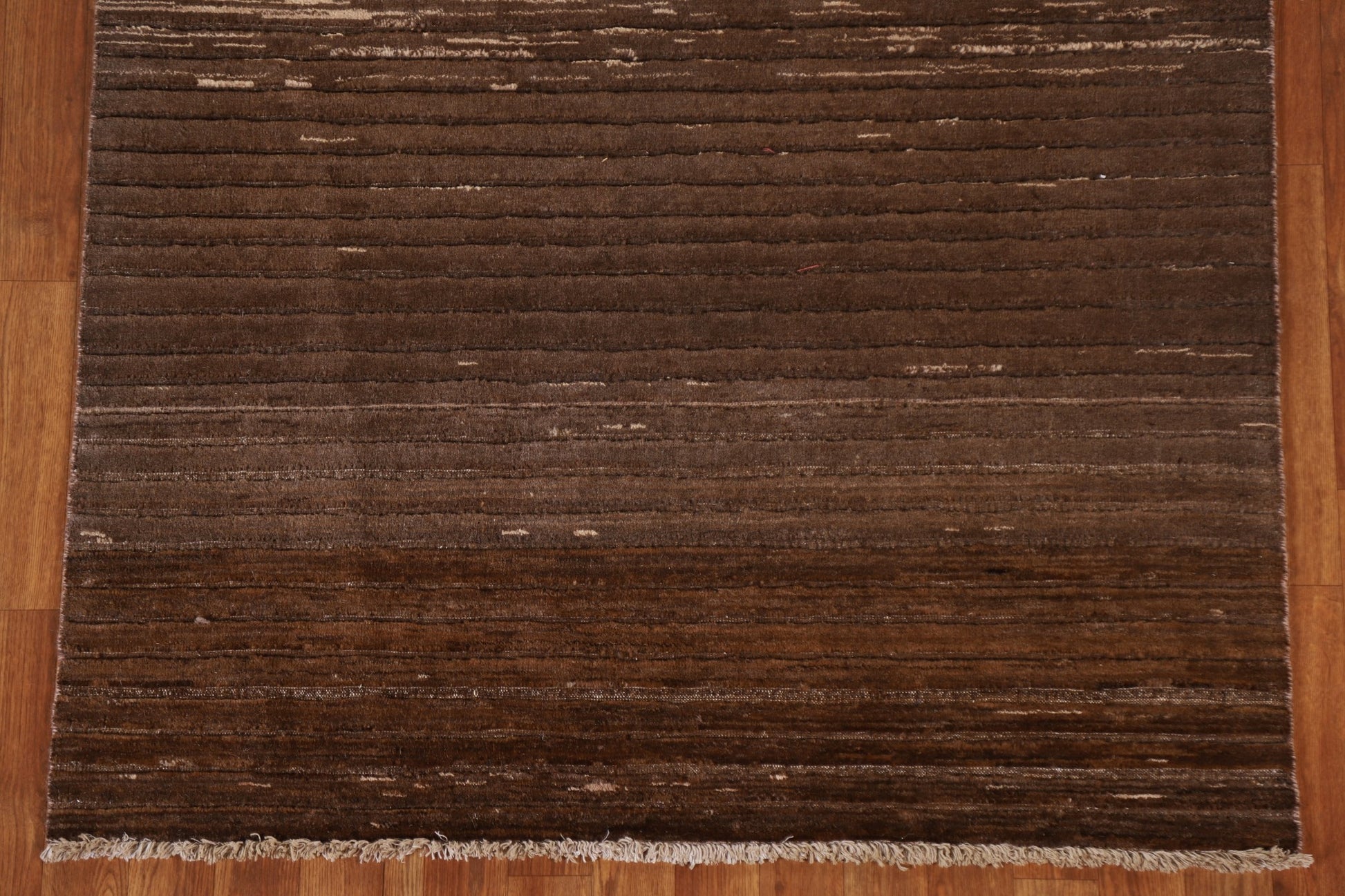 A Beautiful Genuine Pakistan Gabbeh (kashkoli) rug is Hand Knotted by skillful weavers in Pakistan with 100% Wool Material. This rug is in New, First Quality condition. dimensions are 5' 4'' X 4' 0'' in foot and 163 X 122 in centimeter. the primary color is Brown.