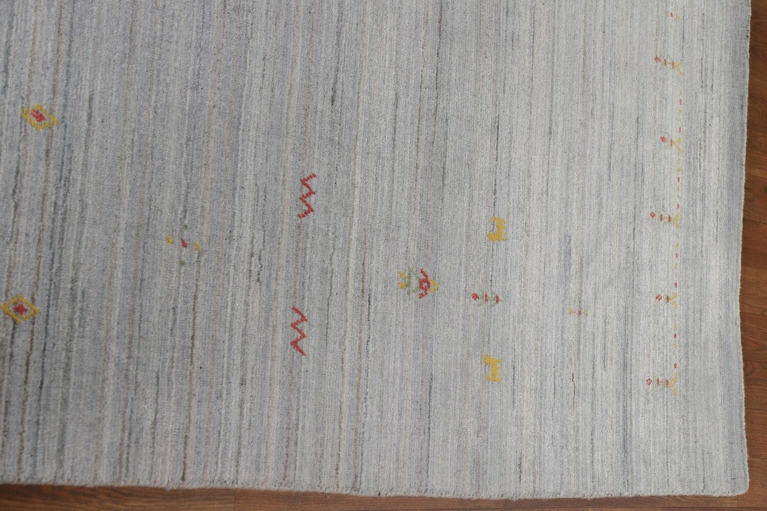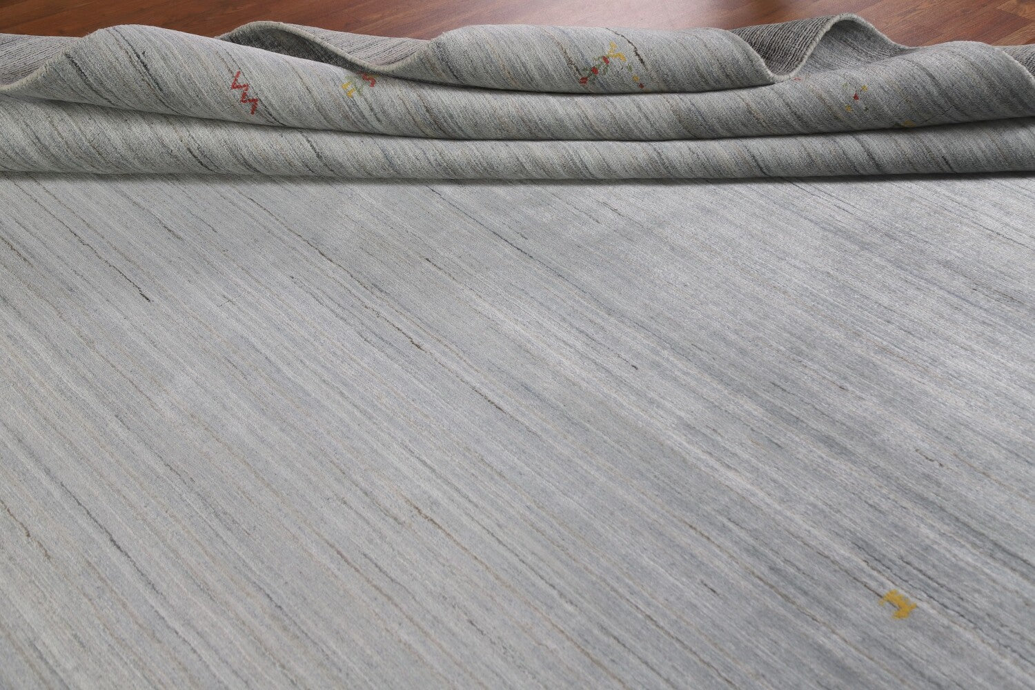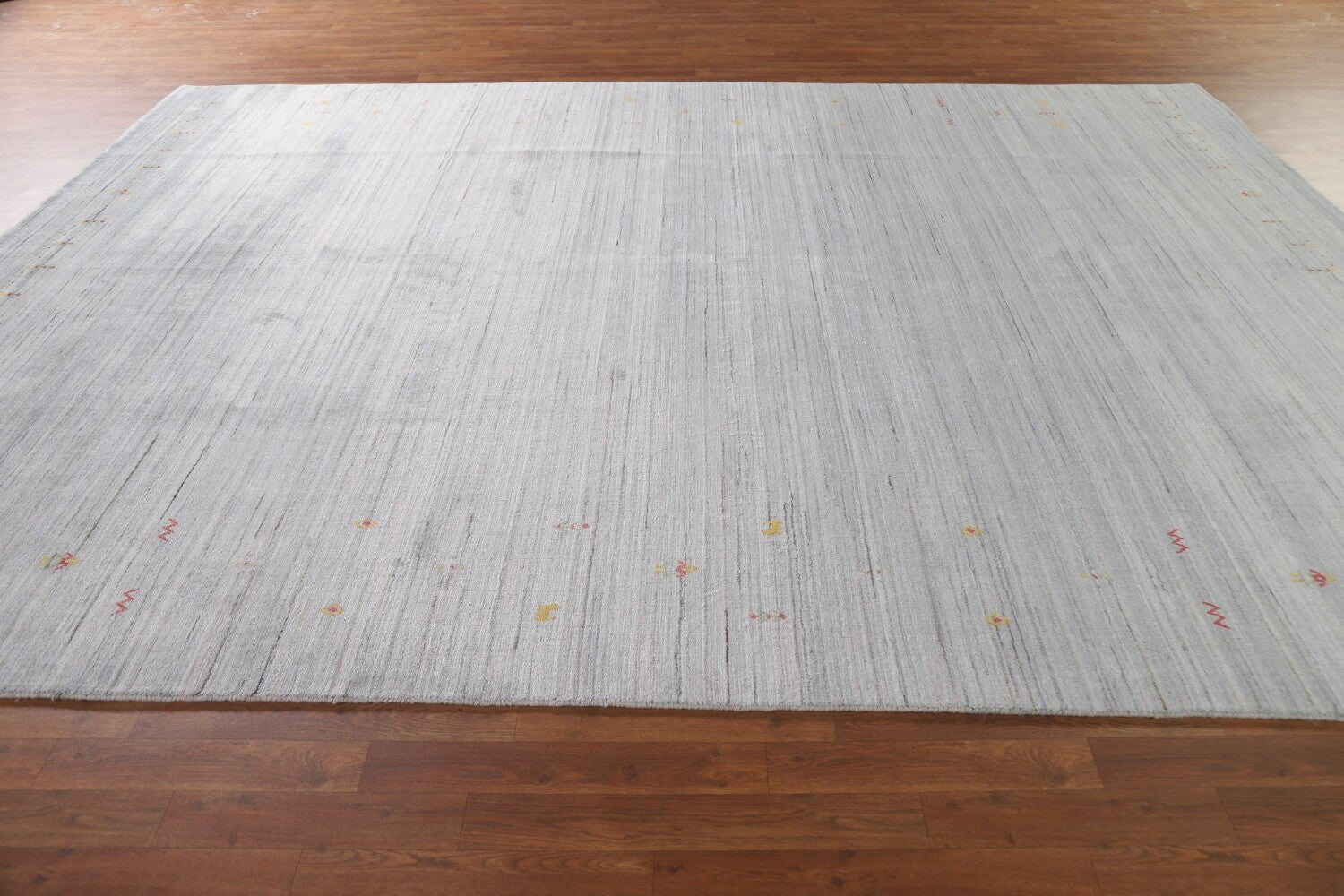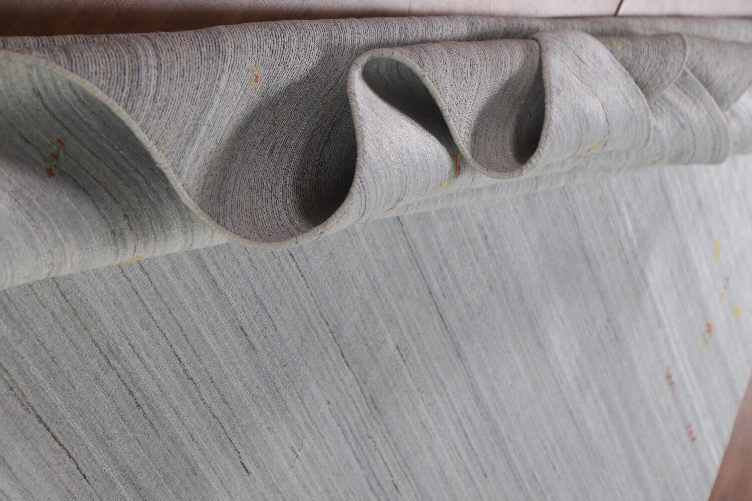 A Beautiful Genuine India Gabbeh rug is Hand Knotted by skillful weavers in India with 100% Wool Material. This rug is in New, First Quality condition. dimensions are 11' 9'' X 8' 9'' in foot and 358 X 267 in centimeter. the primary color is Greys & Charcoal.