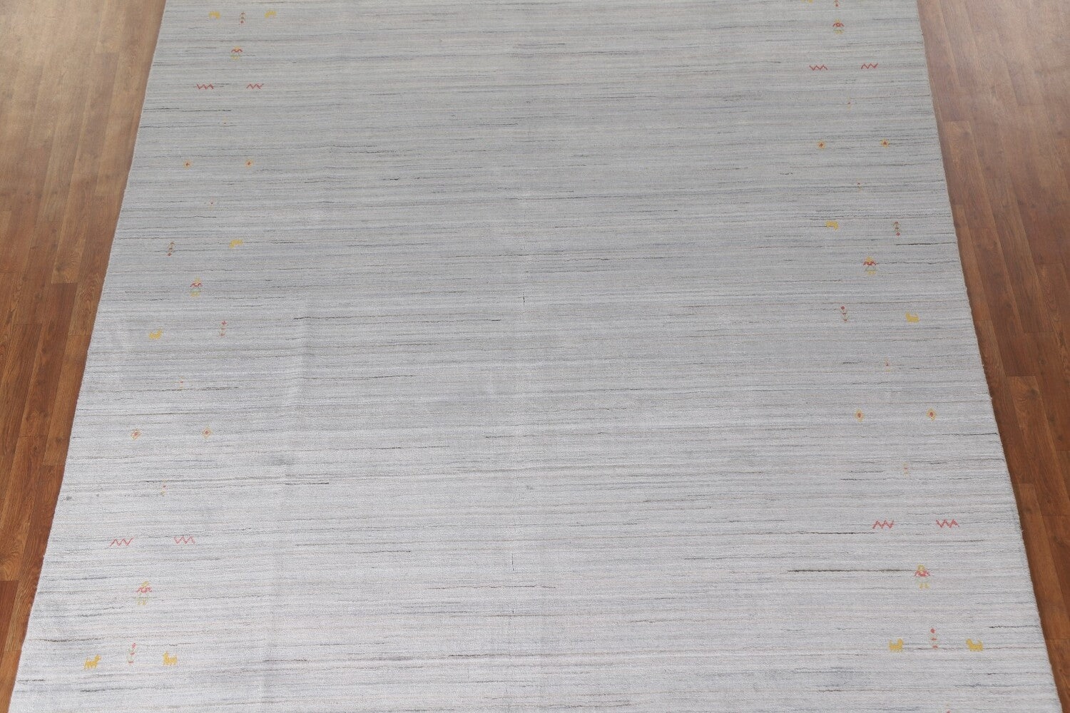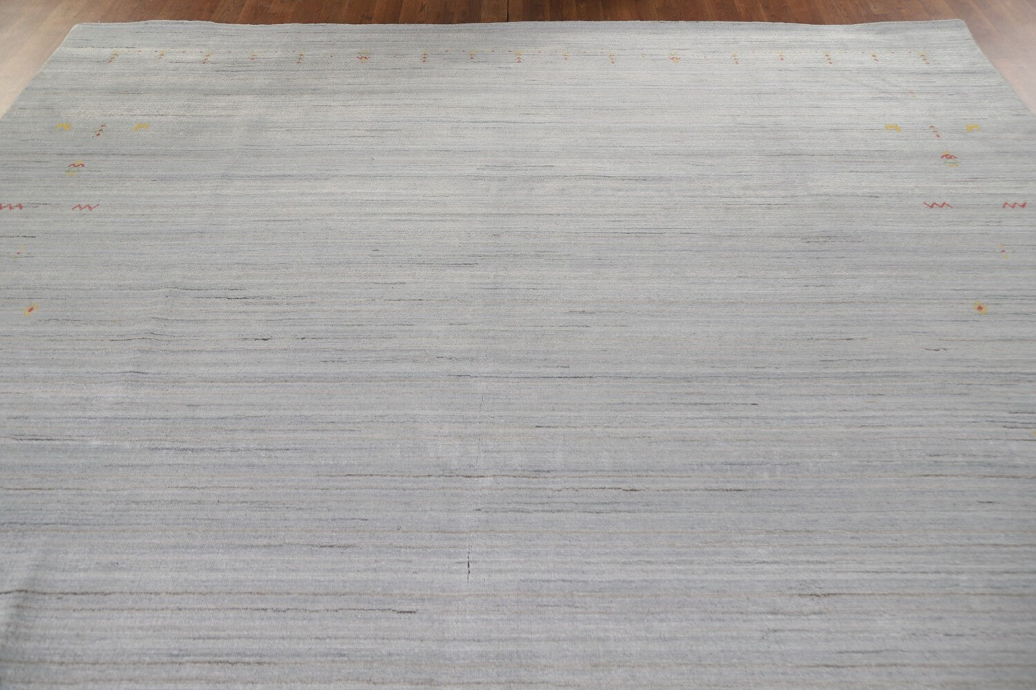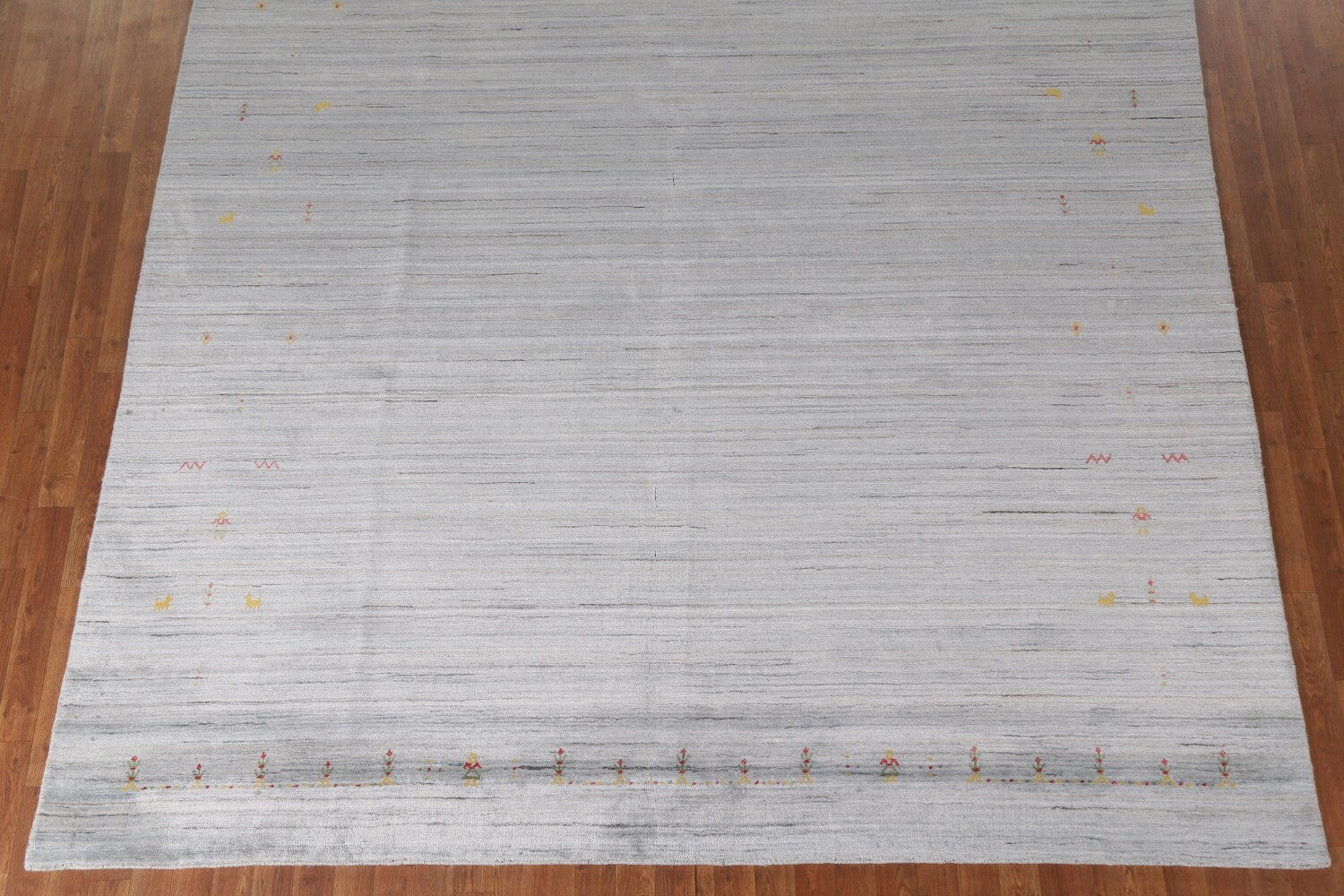 A Beautiful Genuine India Gabbeh rug is Hand Knotted by skillful weavers in India with 100% Wool Material. This rug is in New, First Quality condition. dimensions are 11' 9'' X 8' 9'' in foot and 358 X 267 in centimeter. the primary color is Greys & Charcoal.