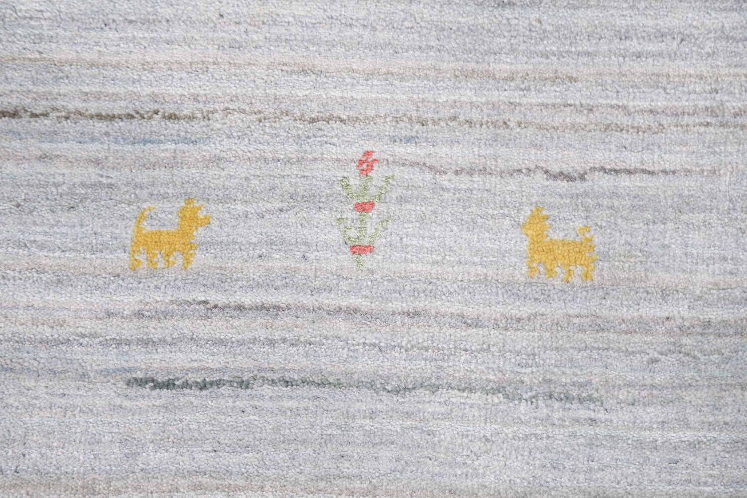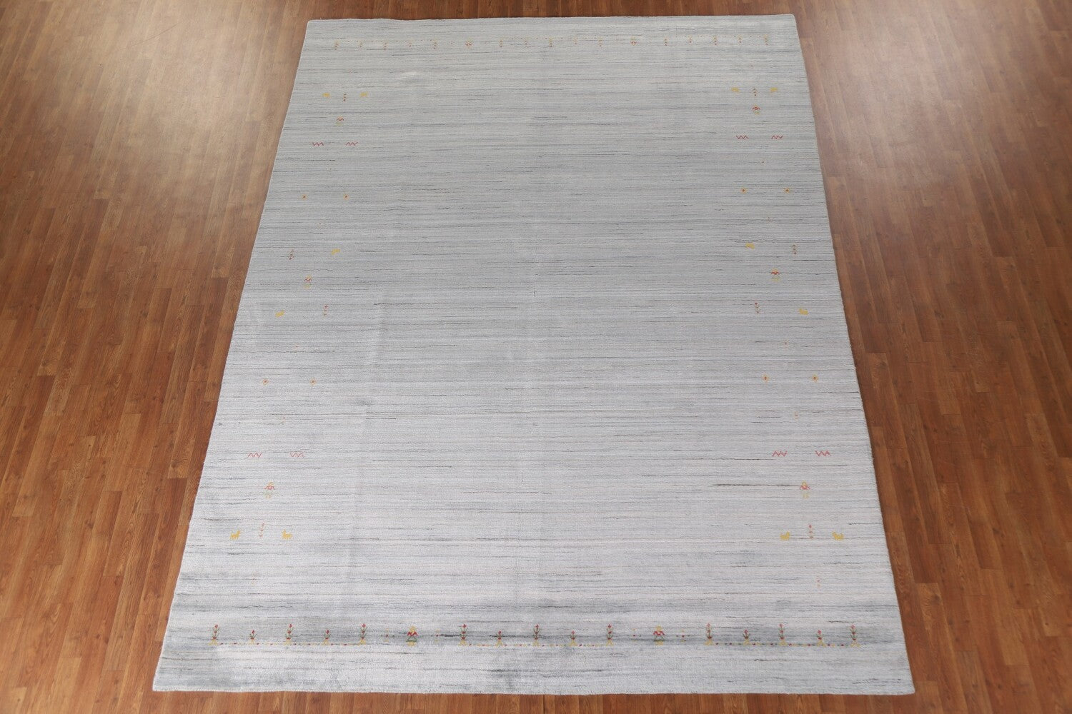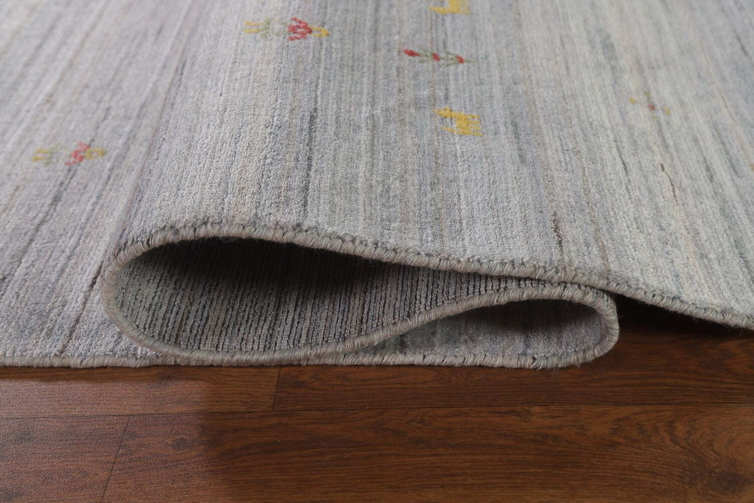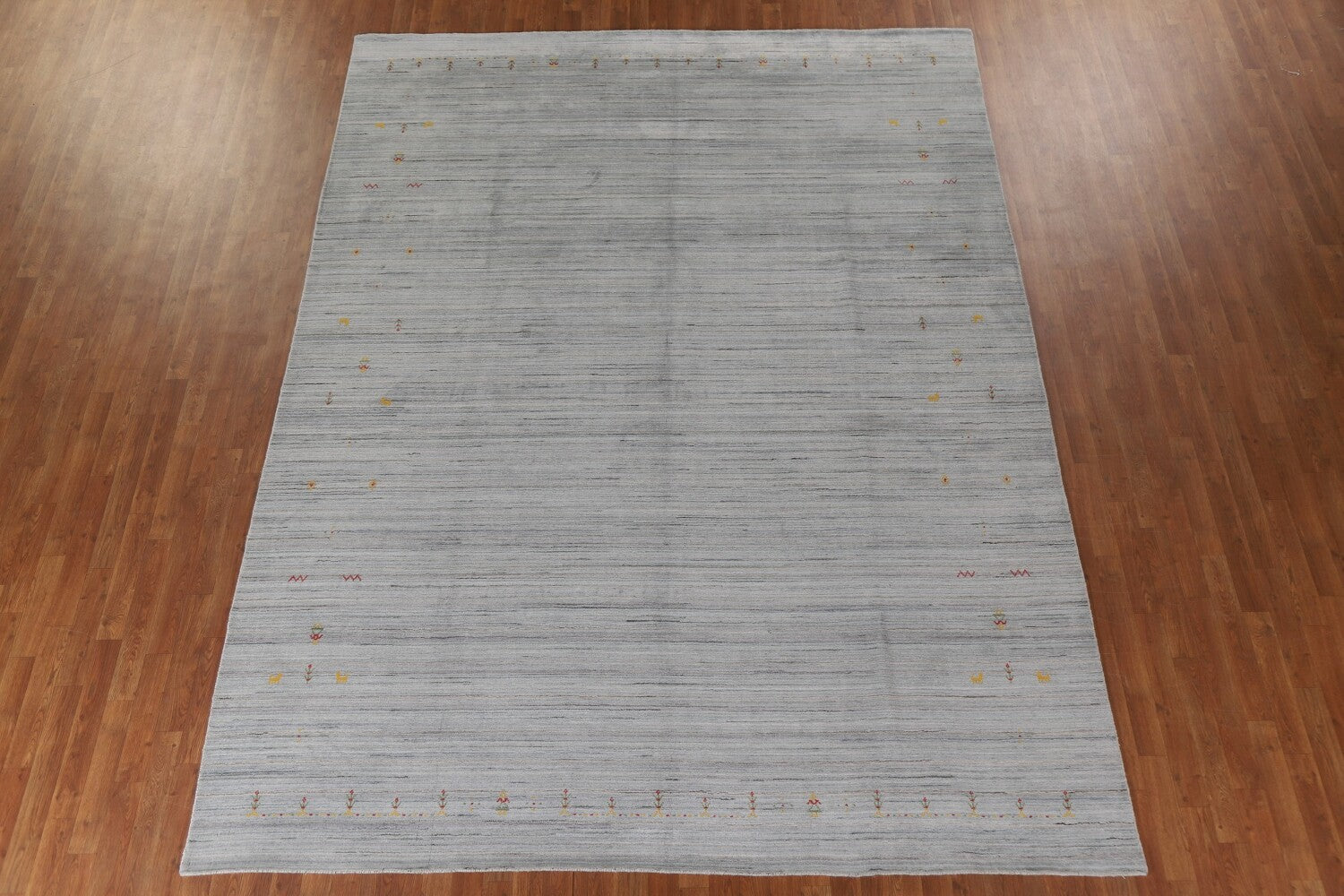 A Beautiful Genuine India Gabbeh rug is Hand Knotted by skillful weavers in India with 100% Wool Material. This rug is in New, First Quality condition. dimensions are 11' 9'' X 8' 9'' in foot and 358 X 267 in centimeter. the primary color is Greys & Charcoal.