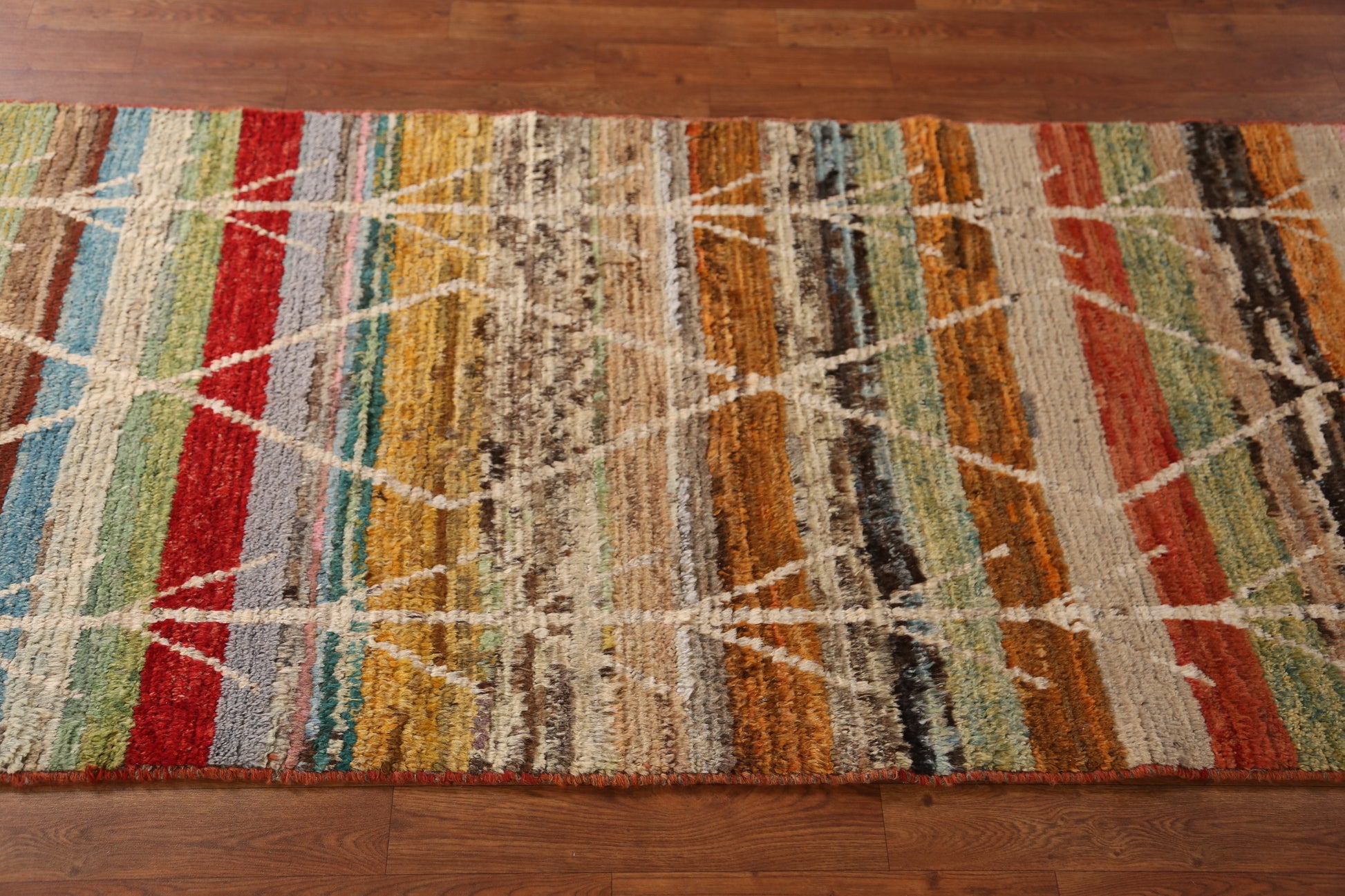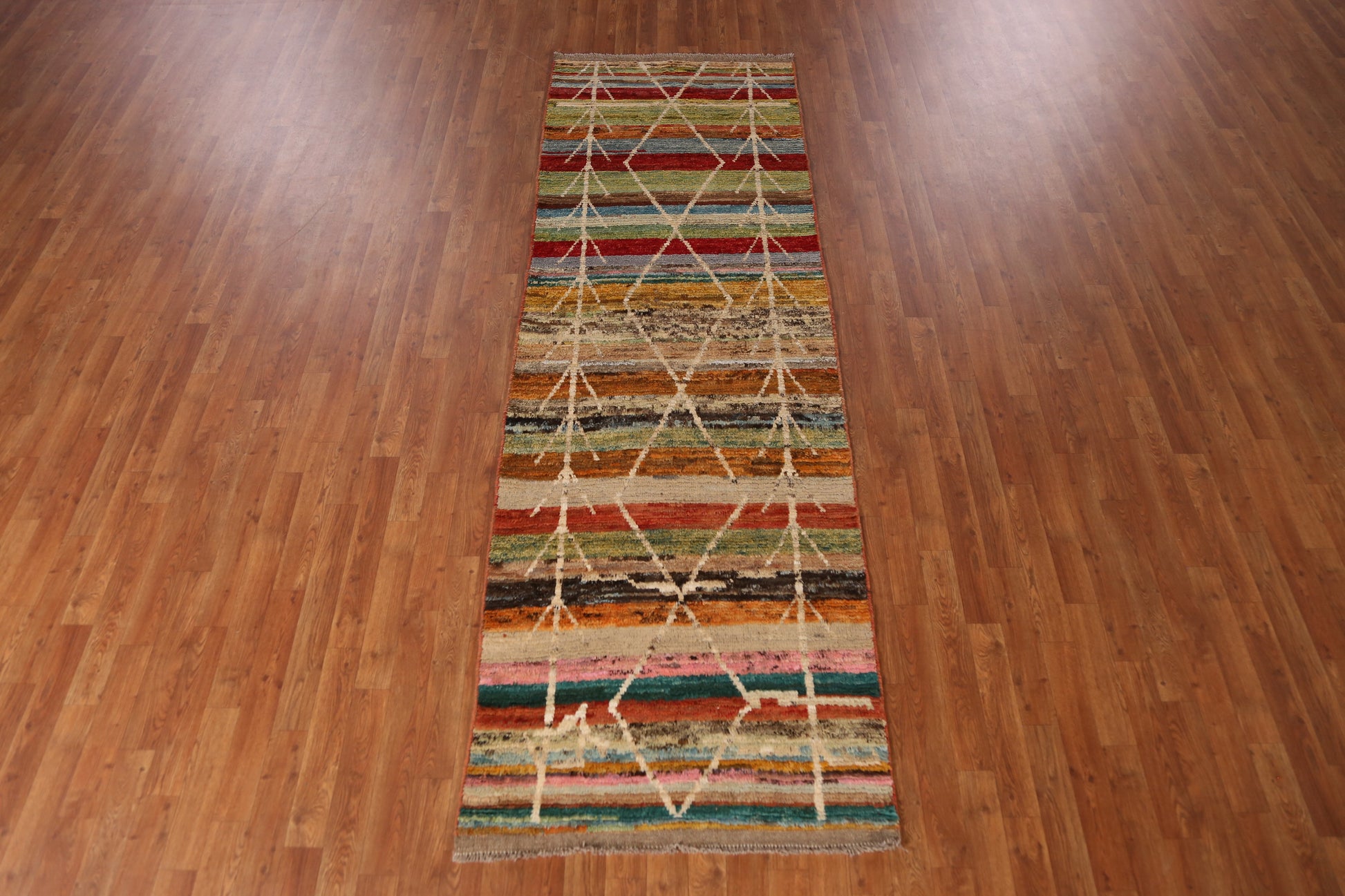 Striped Geometric Moroccan Oriental Runner Rug 3x10