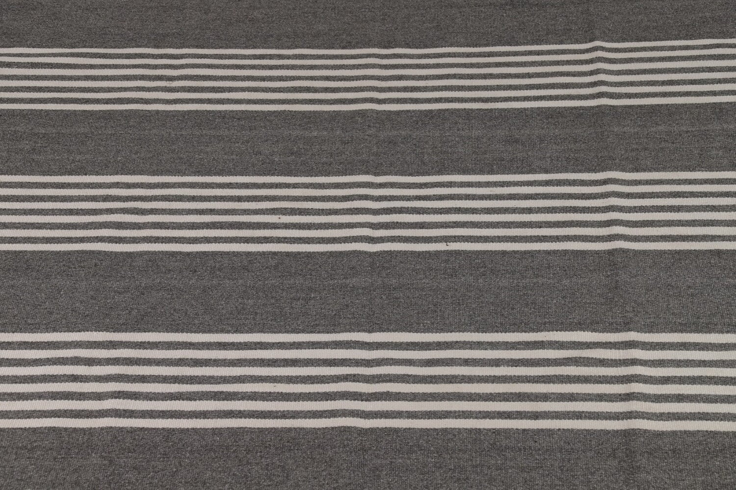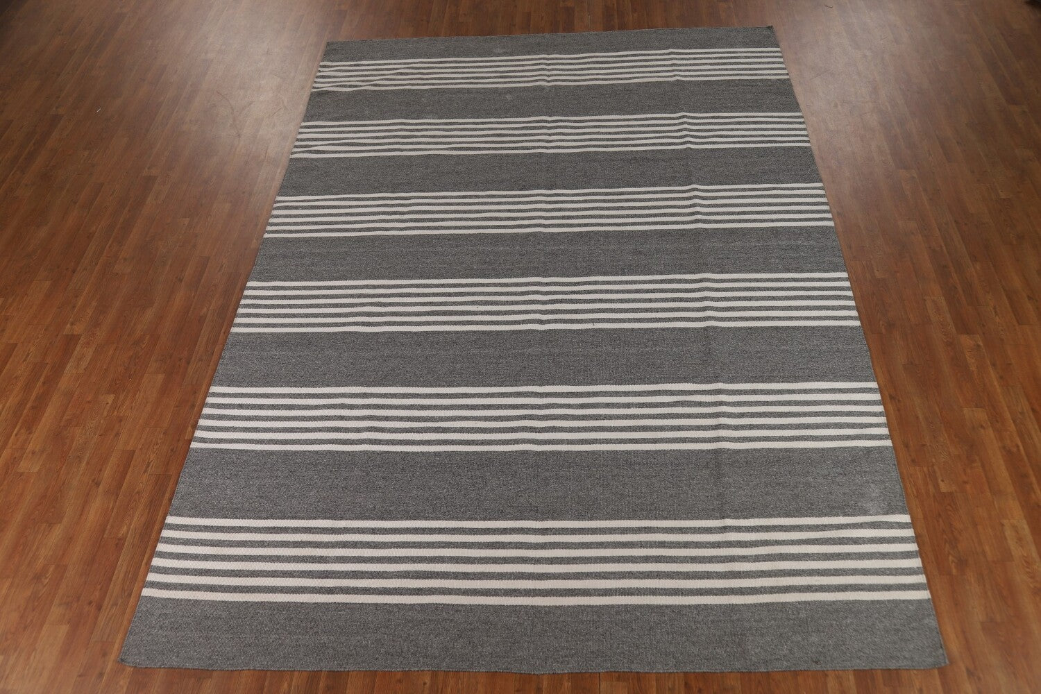 Striped Gray Kilim Durrie Oriental Area Rug 8x12
