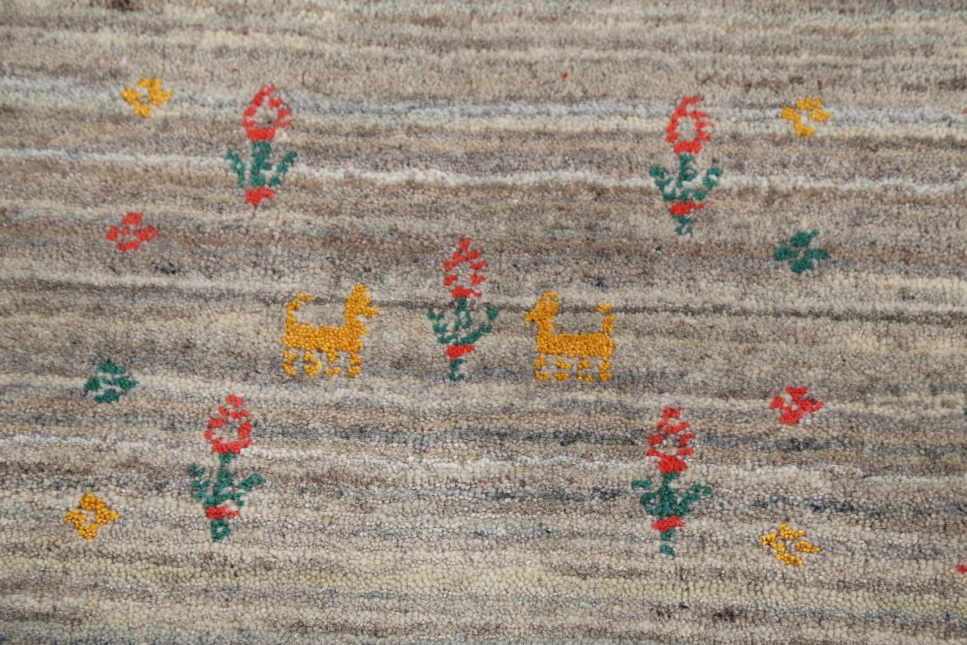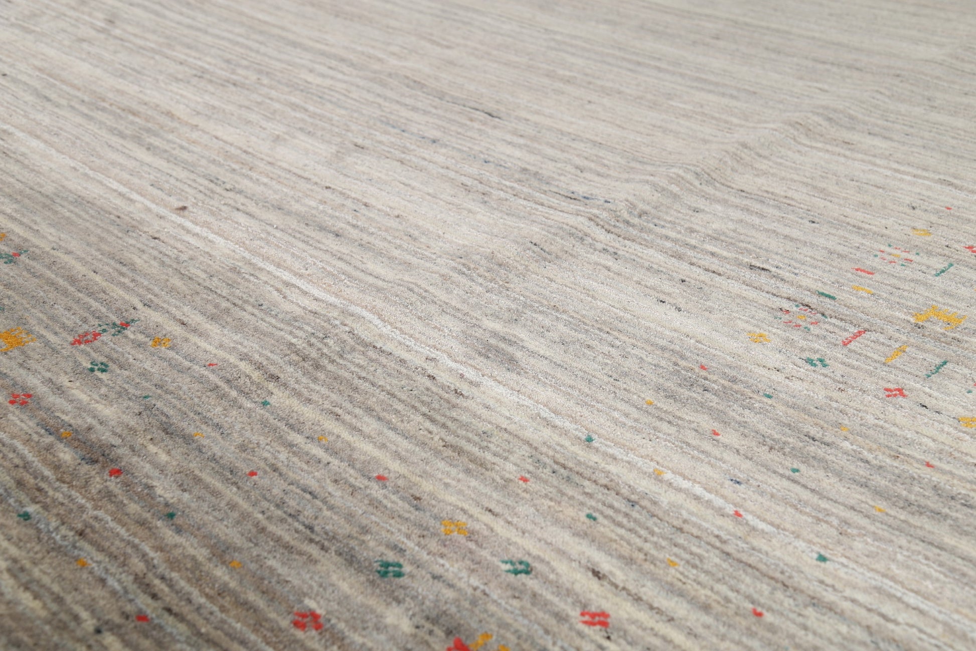 A Beautiful Genuine India Gabbeh rug is Hand Knotted by skillful weavers in India with 100% Wool Material. This rug is in New, First Quality condition. dimensions are 7' 11'' X 7' 10'' in foot and 241 X 239 in centimeter. the primary color is Beige & Ivories.