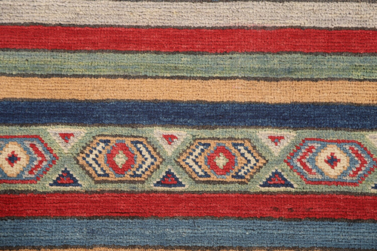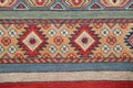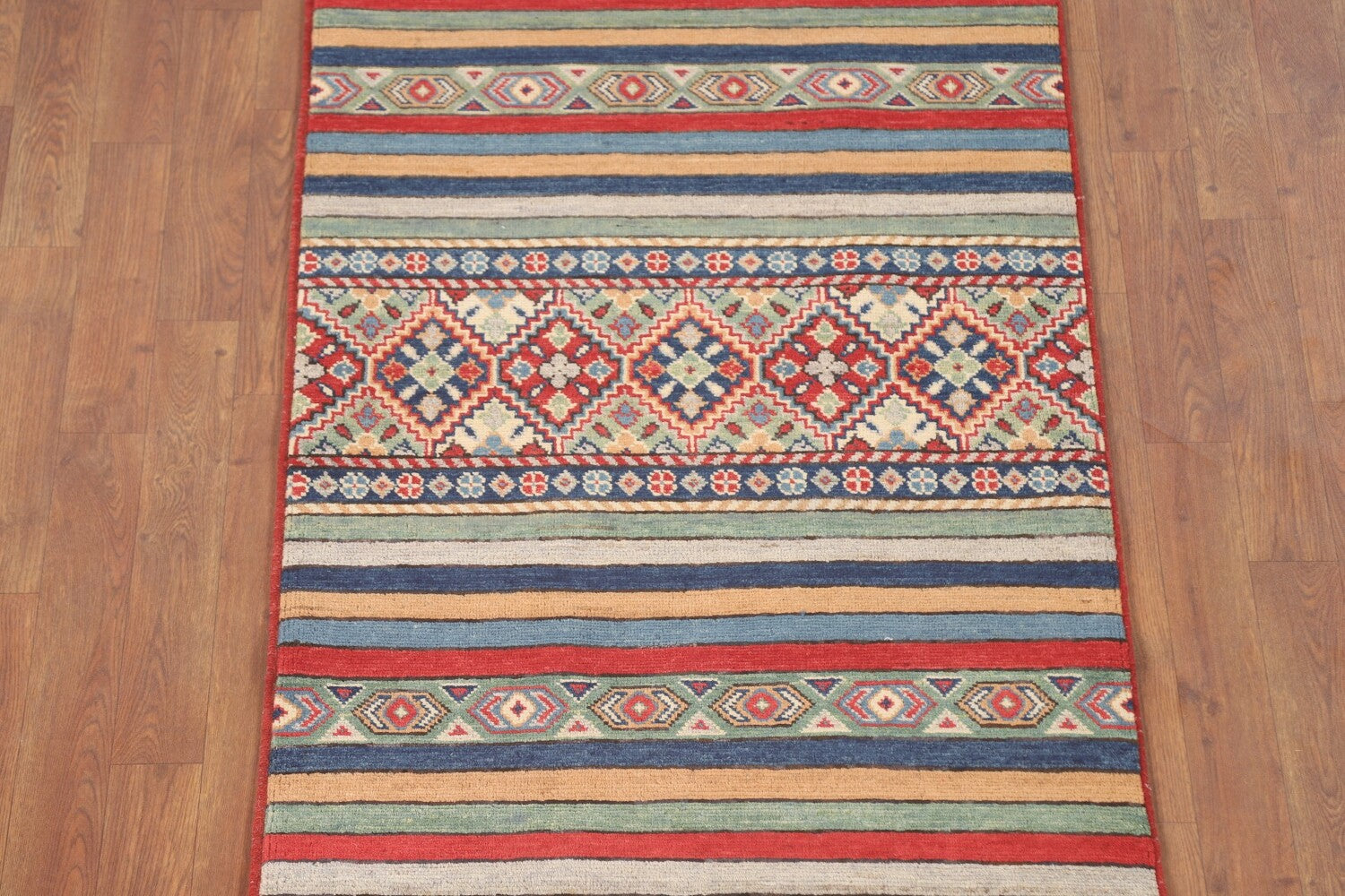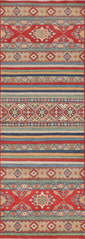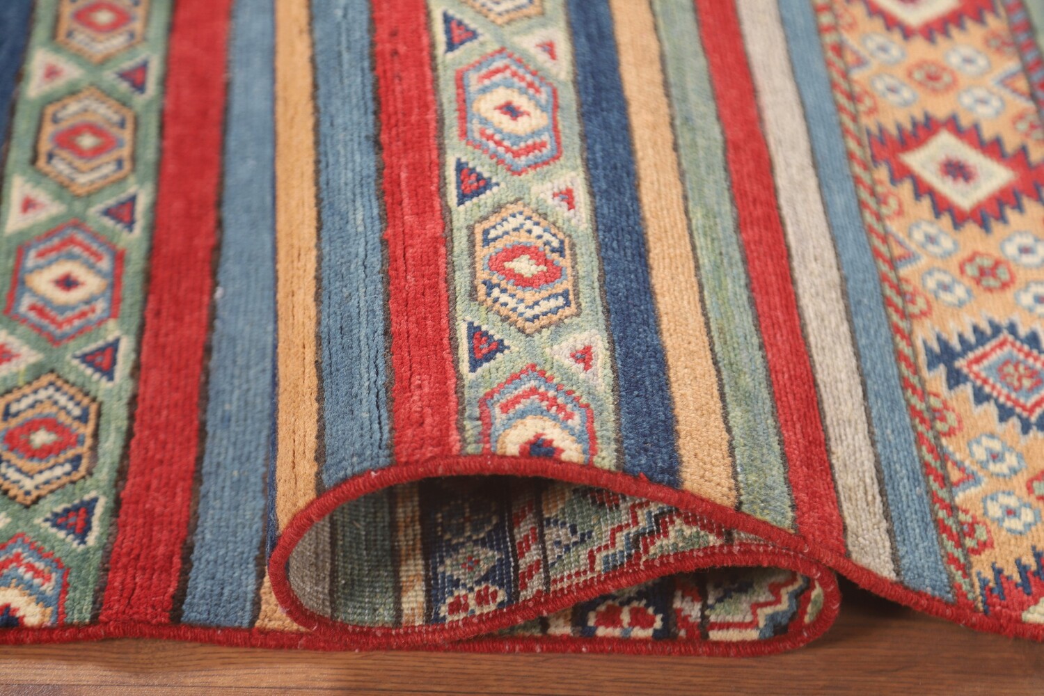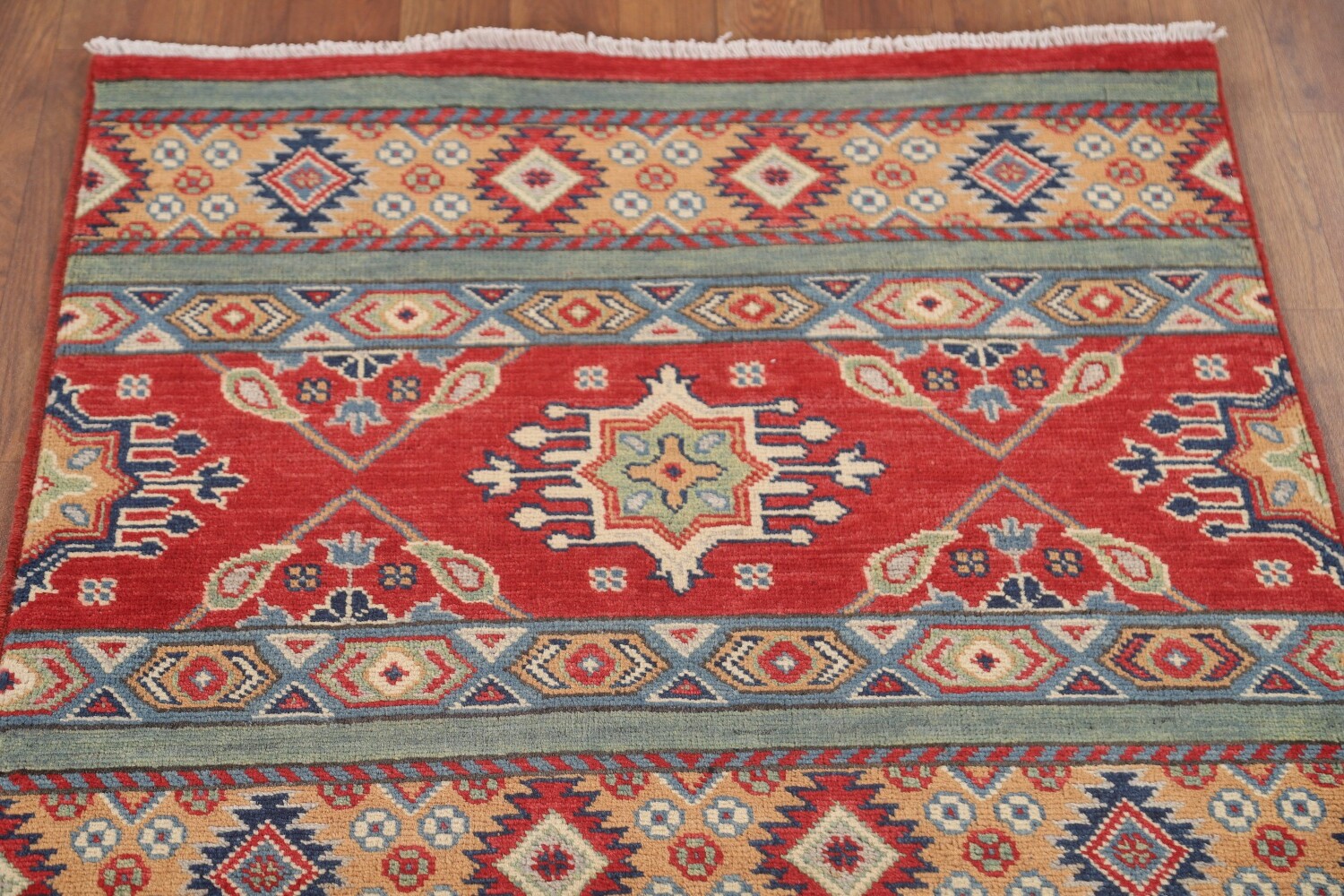 A Beautiful Genuine Pakistan Kazak rug is Hand Knotted by skillful weavers in Pakistan with 100% Wool Material. This rug is in New, First Quality condition. dimensions are 9' 5'' X 2' 8'' in foot and 287 X 81 in centimeter. the primary color is Multi-Colored.