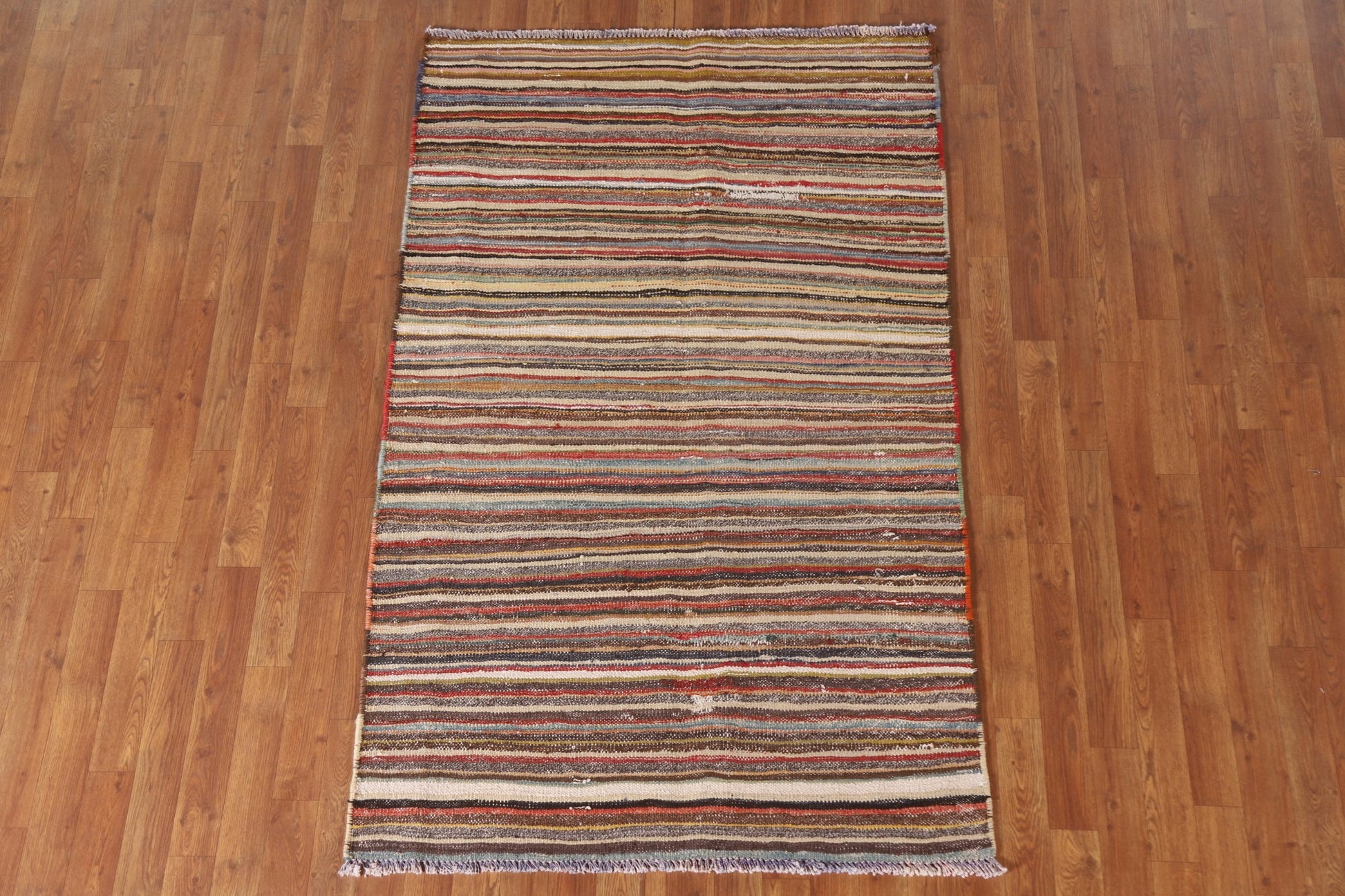 A Beautiful Genuine Persia ( Persia ) Kilim rug is Hand Woven by skillful weavers in Persia ( Persia ) with 100% Wool Material. This rug is in Very Good condition. dimensions are 6' 1'' X 3' 9'' in foot and 185 X 114 in centimeter. the primary color is Multi-Colored.