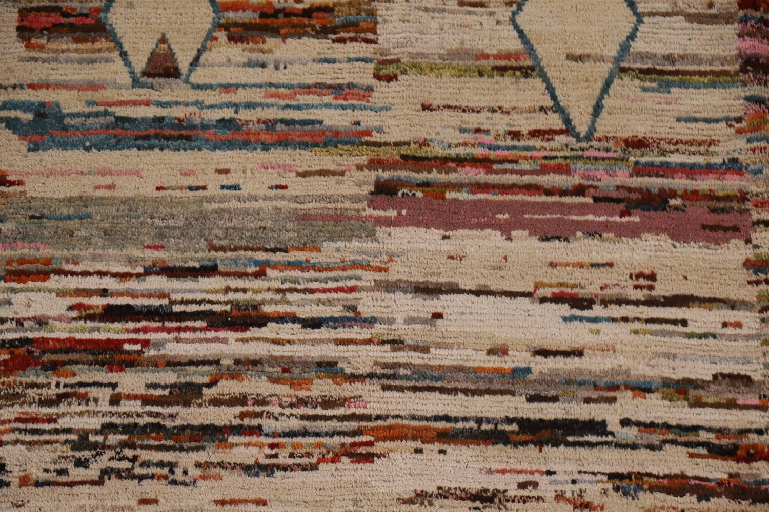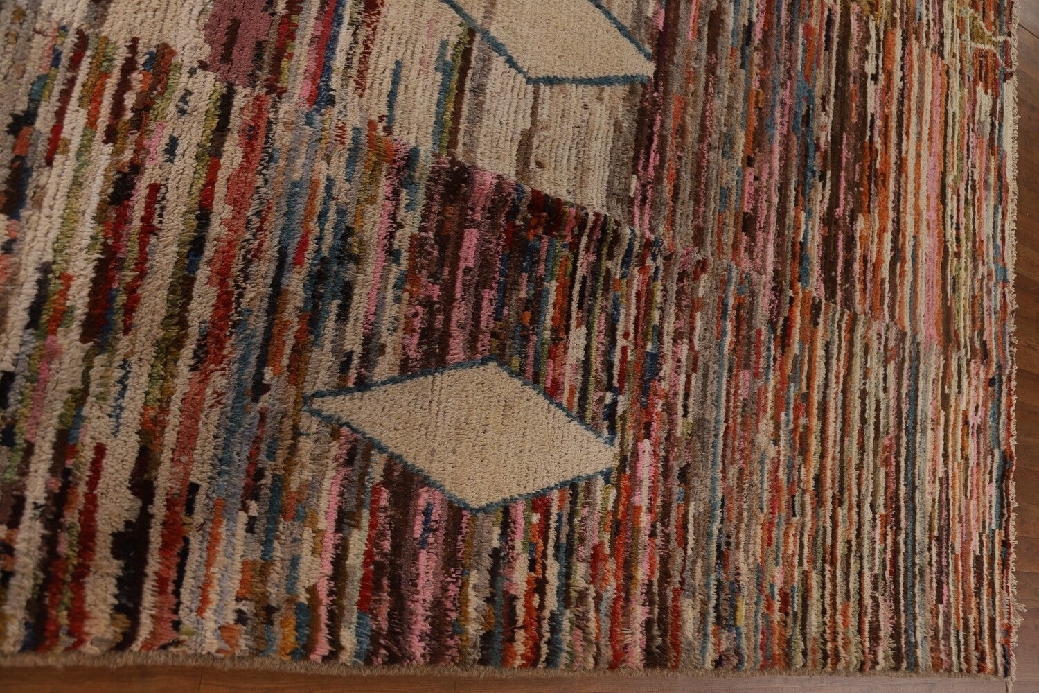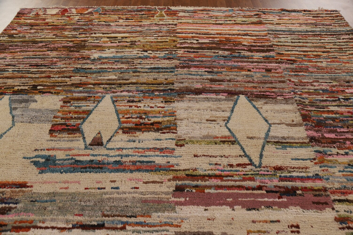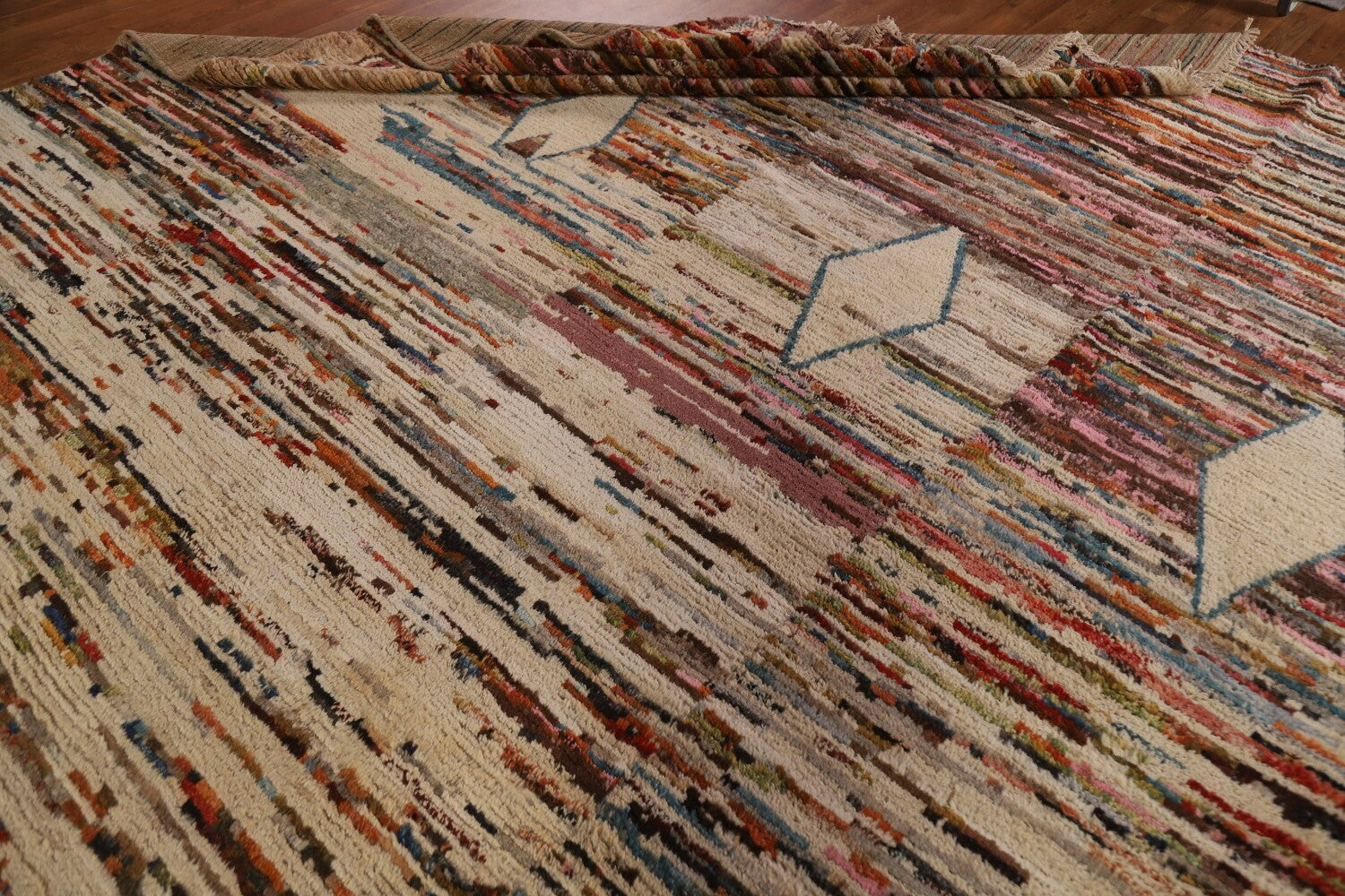A Beautiful Genuine Pakistan Moroccan rug is Hand Knotted by skillful weavers in Pakistan with 100% Wool Material. This rug is in condition. dimensions are 11' 8'' X 9' 1'' in foot and 356 X 277 in centimeter. the primary color is Beige & Ivories.