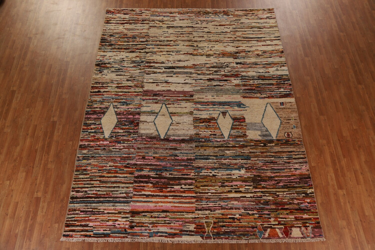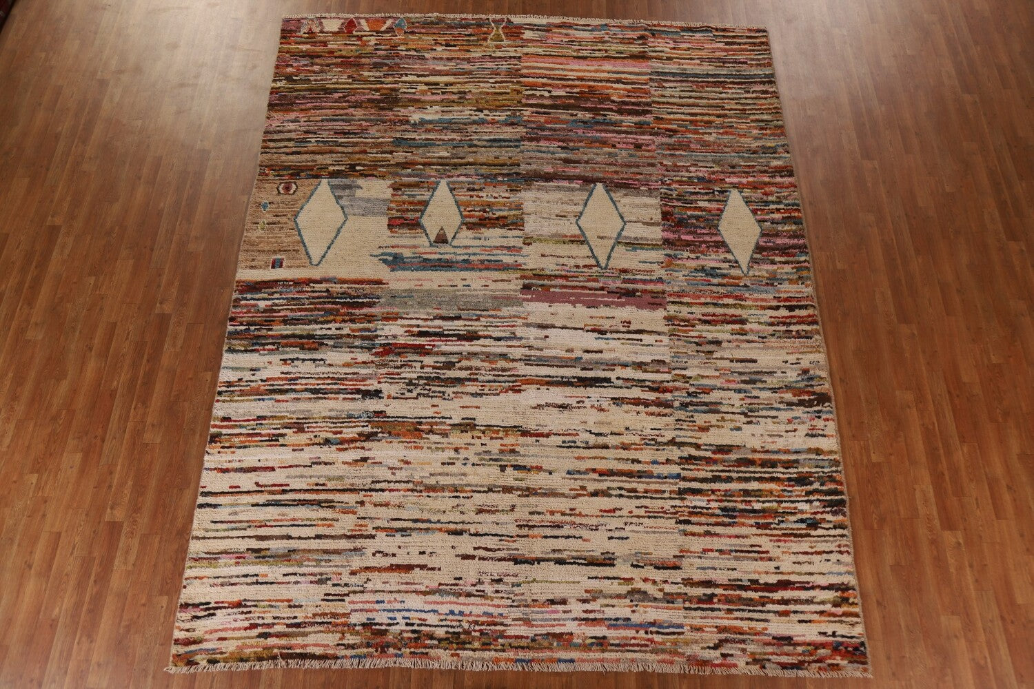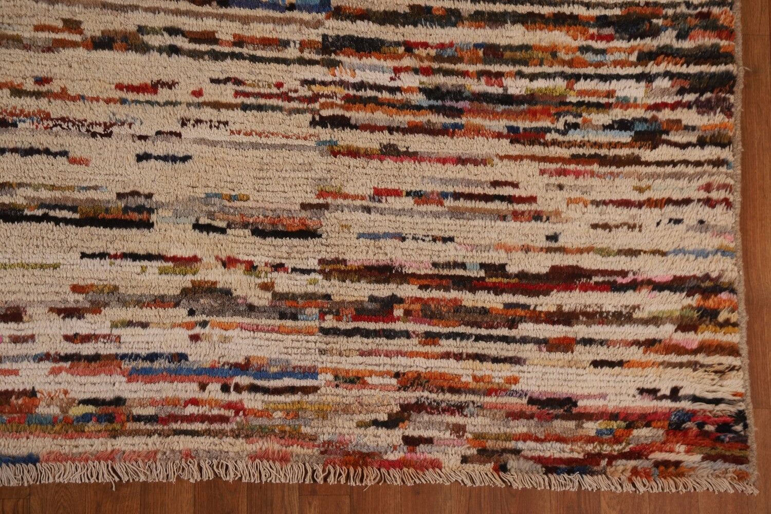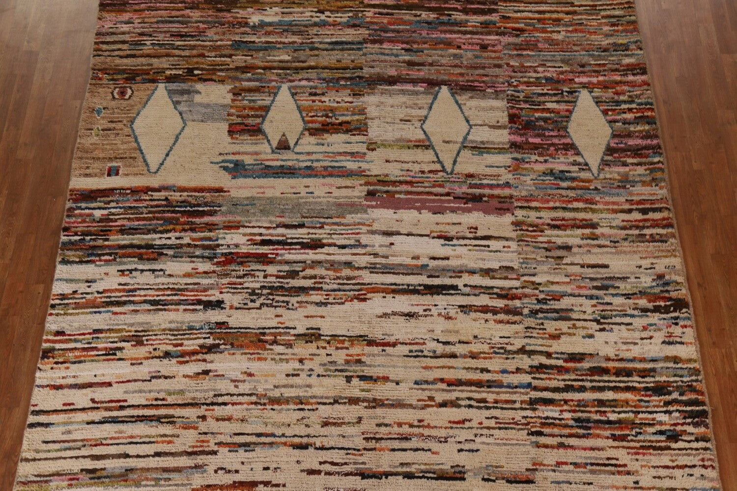A Beautiful Genuine Pakistan Moroccan rug is Hand Knotted by skillful weavers in Pakistan with 100% Wool Material. This rug is in condition. dimensions are 11' 8'' X 9' 1'' in foot and 356 X 277 in centimeter. the primary color is Beige & Ivories.