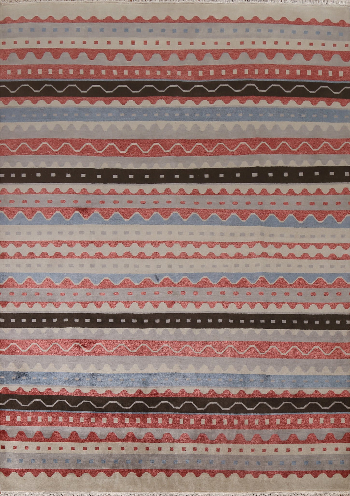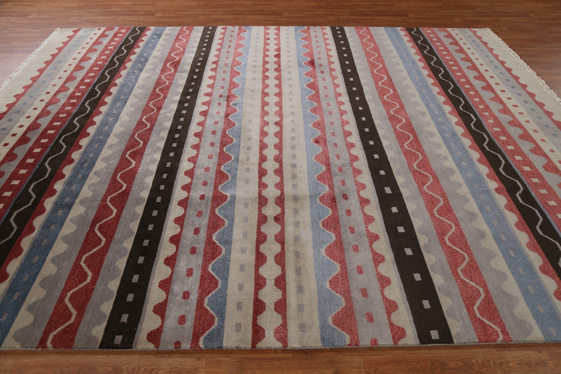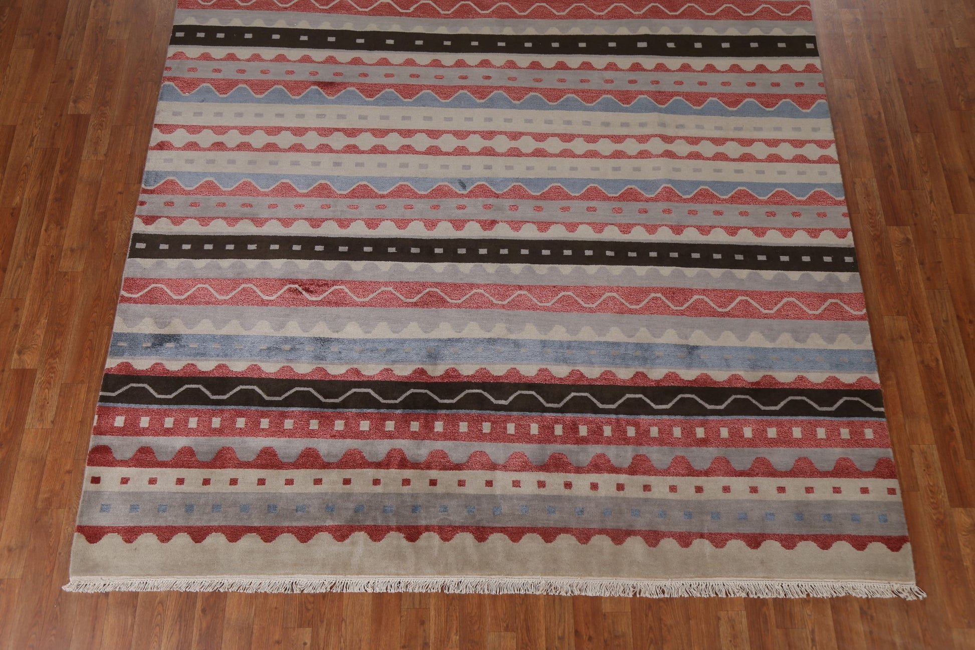 A Beautiful Genuine India Abstract rug is Hand Knotted by skillful weavers in India with 100% Wool Material. This rug is in New, First Quality condition. dimensions are 10' 2'' X 8' 2'' in foot and 310 X 249 in centimeter. the primary color is Multi-Colored.