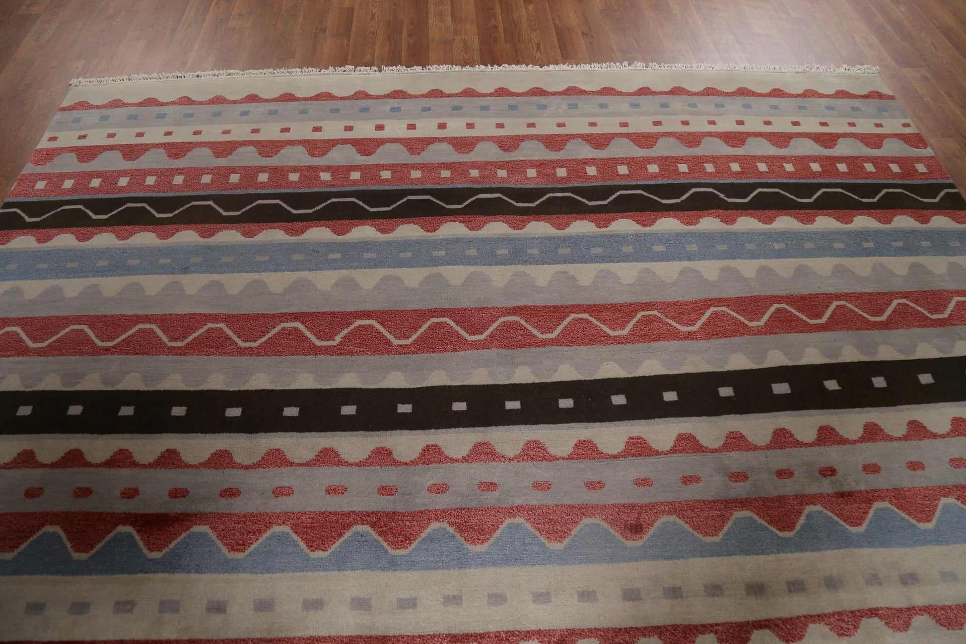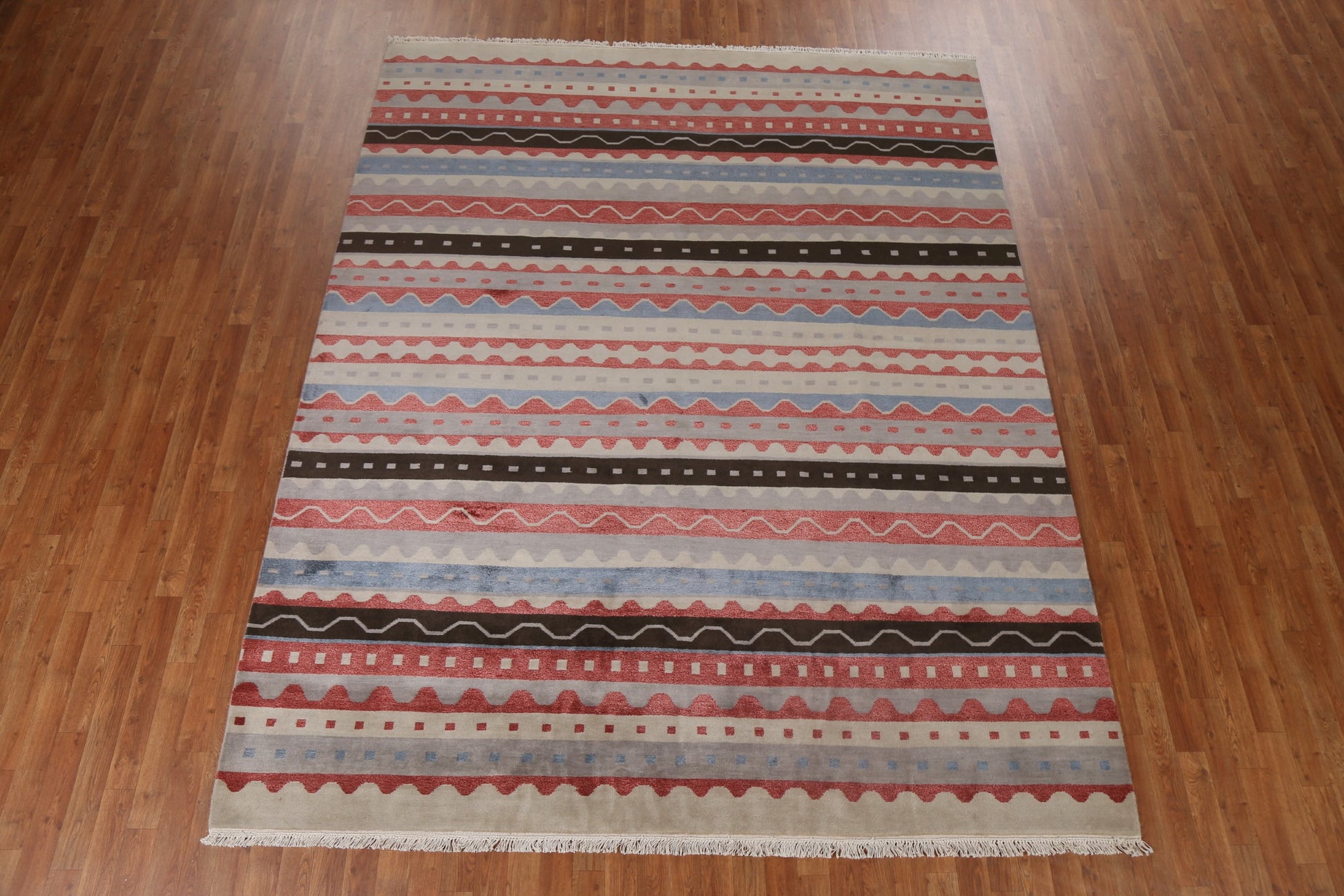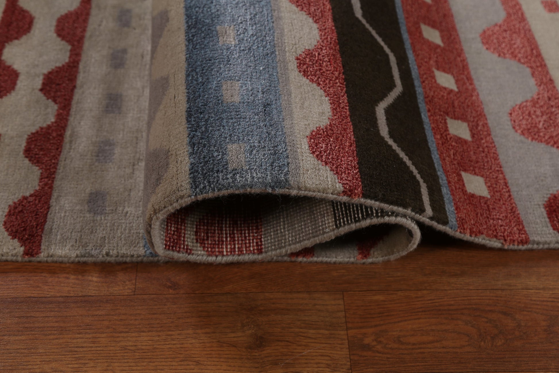 A Beautiful Genuine India Abstract rug is Hand Knotted by skillful weavers in India with 100% Wool Material. This rug is in New, First Quality condition. dimensions are 10' 2'' X 8' 2'' in foot and 310 X 249 in centimeter. the primary color is Multi-Colored.