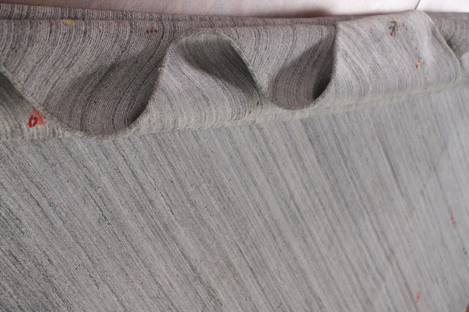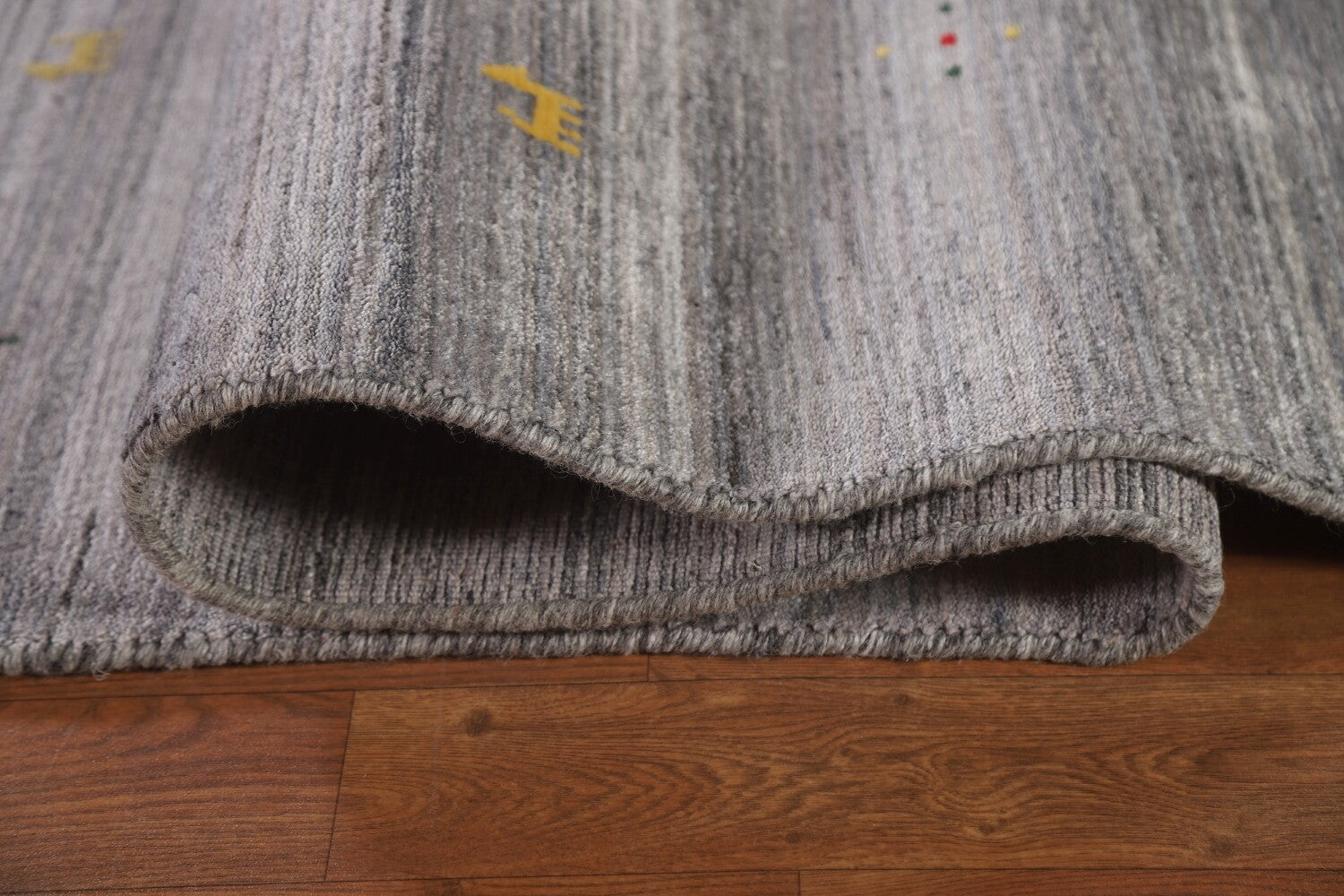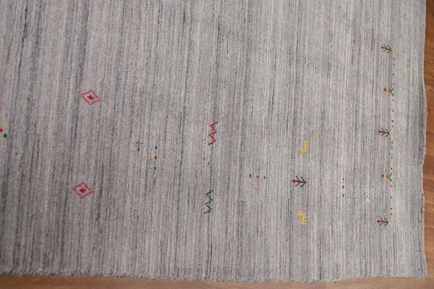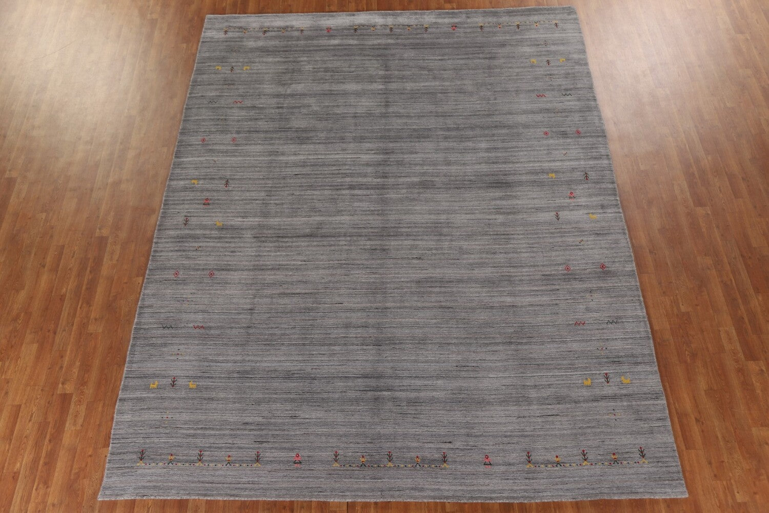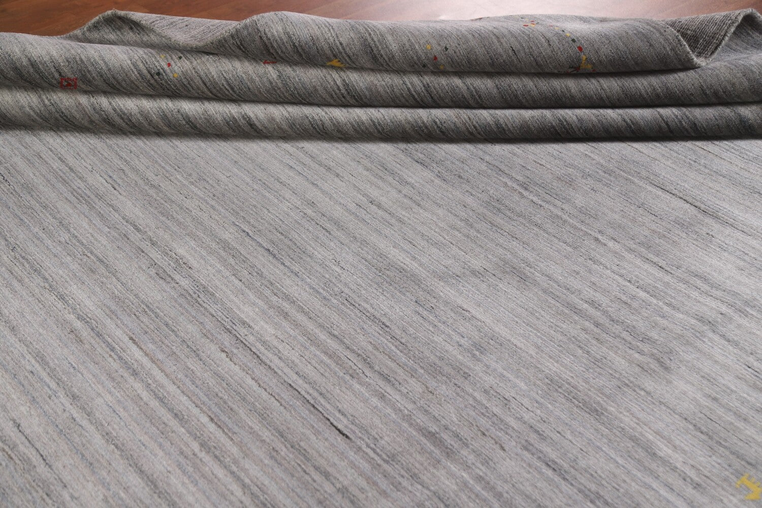 A Beautiful Genuine India Gabbeh rug is Hand Knotted by skillful weavers in India with 100% Wool Material. This rug is in New, First Quality condition. dimensions are 11' 8'' X 9' 0'' in foot and 356 X 274 in centimeter. the primary color is Greys & Charcoal.