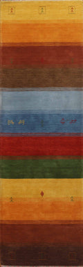 A Beautiful Genuine India Gabbeh rug is Hand Knotted by skillful weavers in India with 100% Wool Material. This rug is in condition. dimensions are 9' 10'' X 2' 8'' in foot and 300 X 81 in centimeter. the primary color is Multi-Colored.