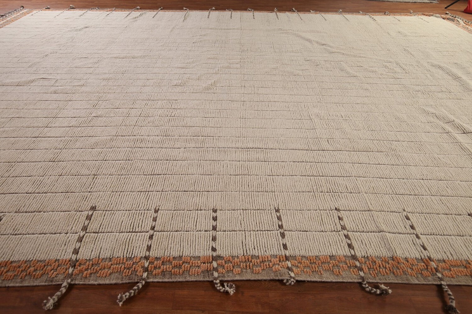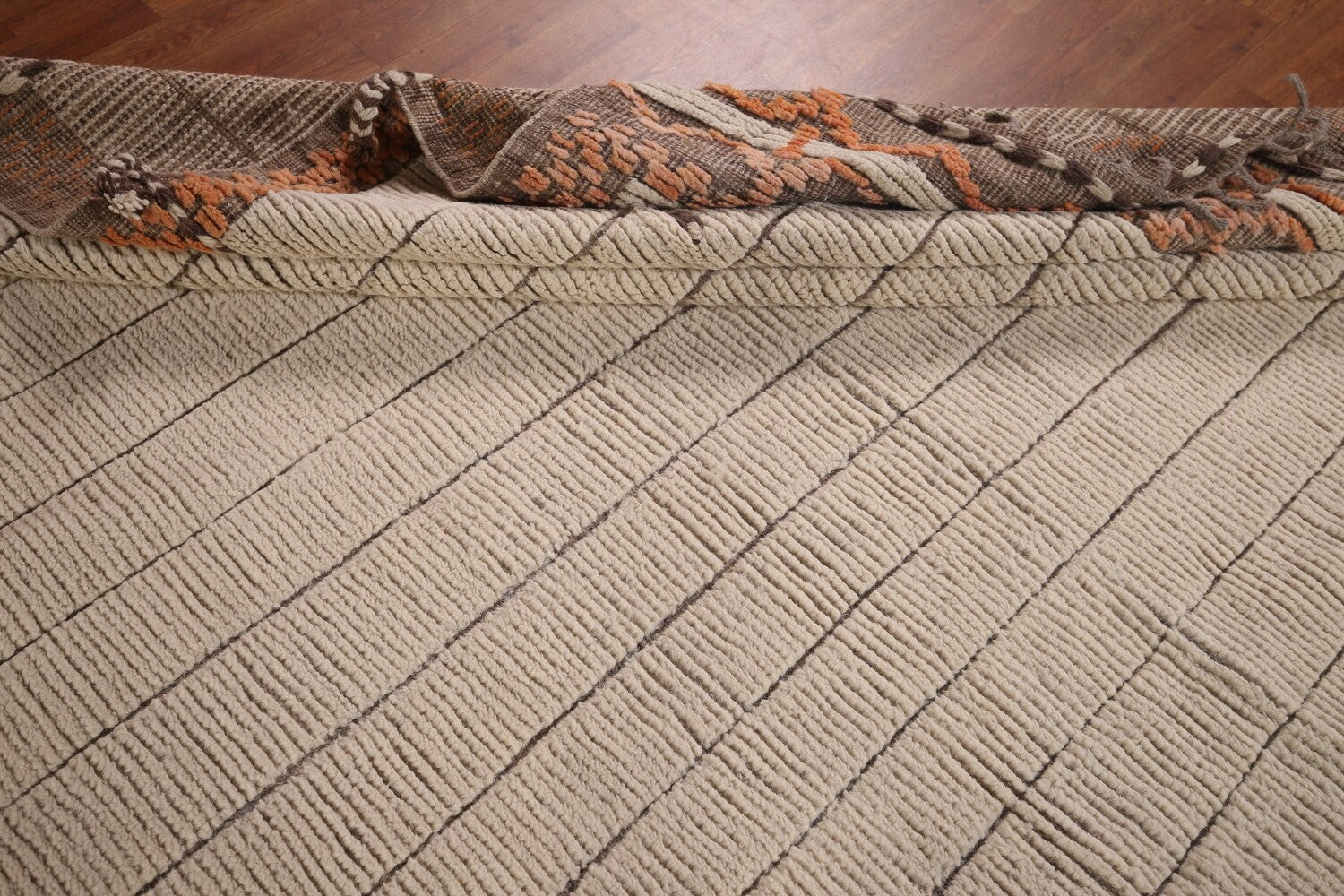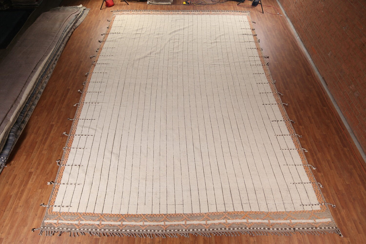 Striped Wool Ivory Moroccan Palace Size Large Rug 14x22