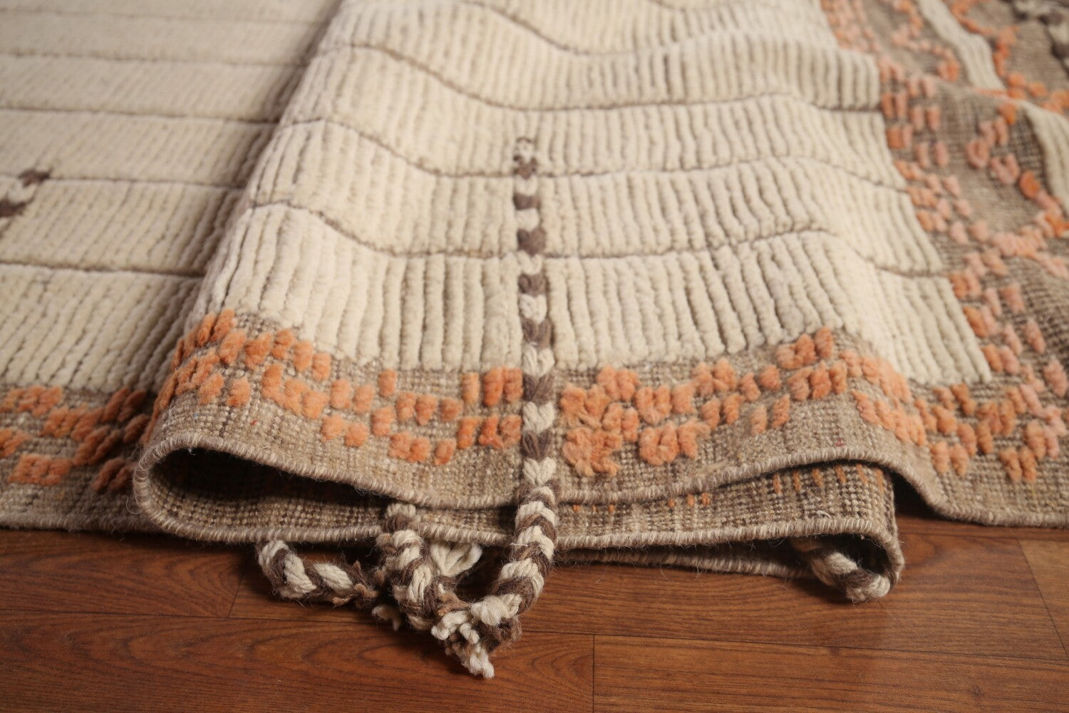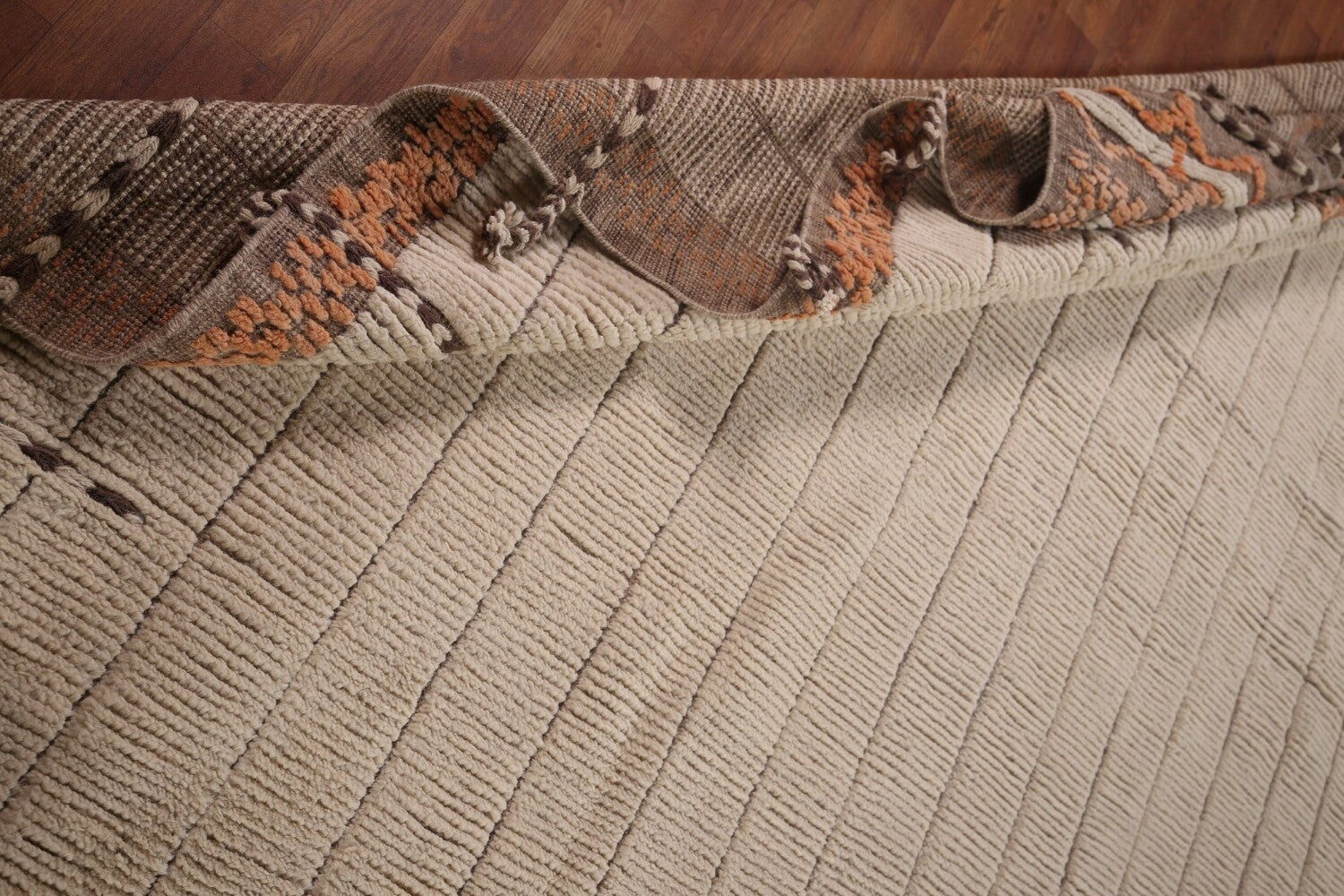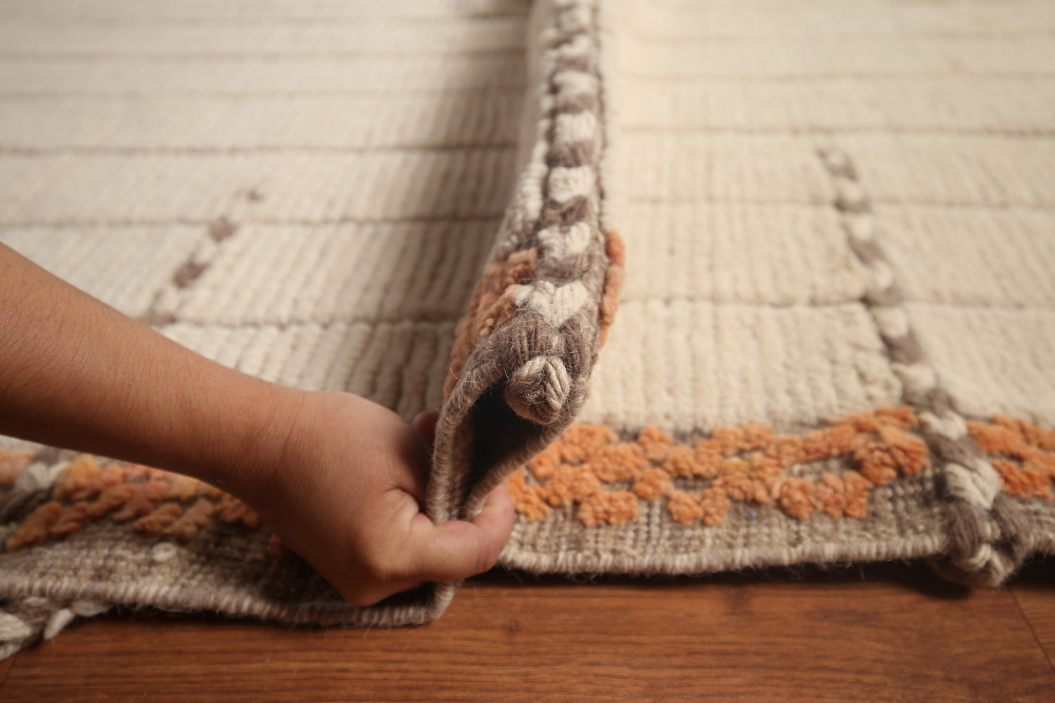 Striped Wool Ivory Moroccan Palace Size Large Rug 14x22