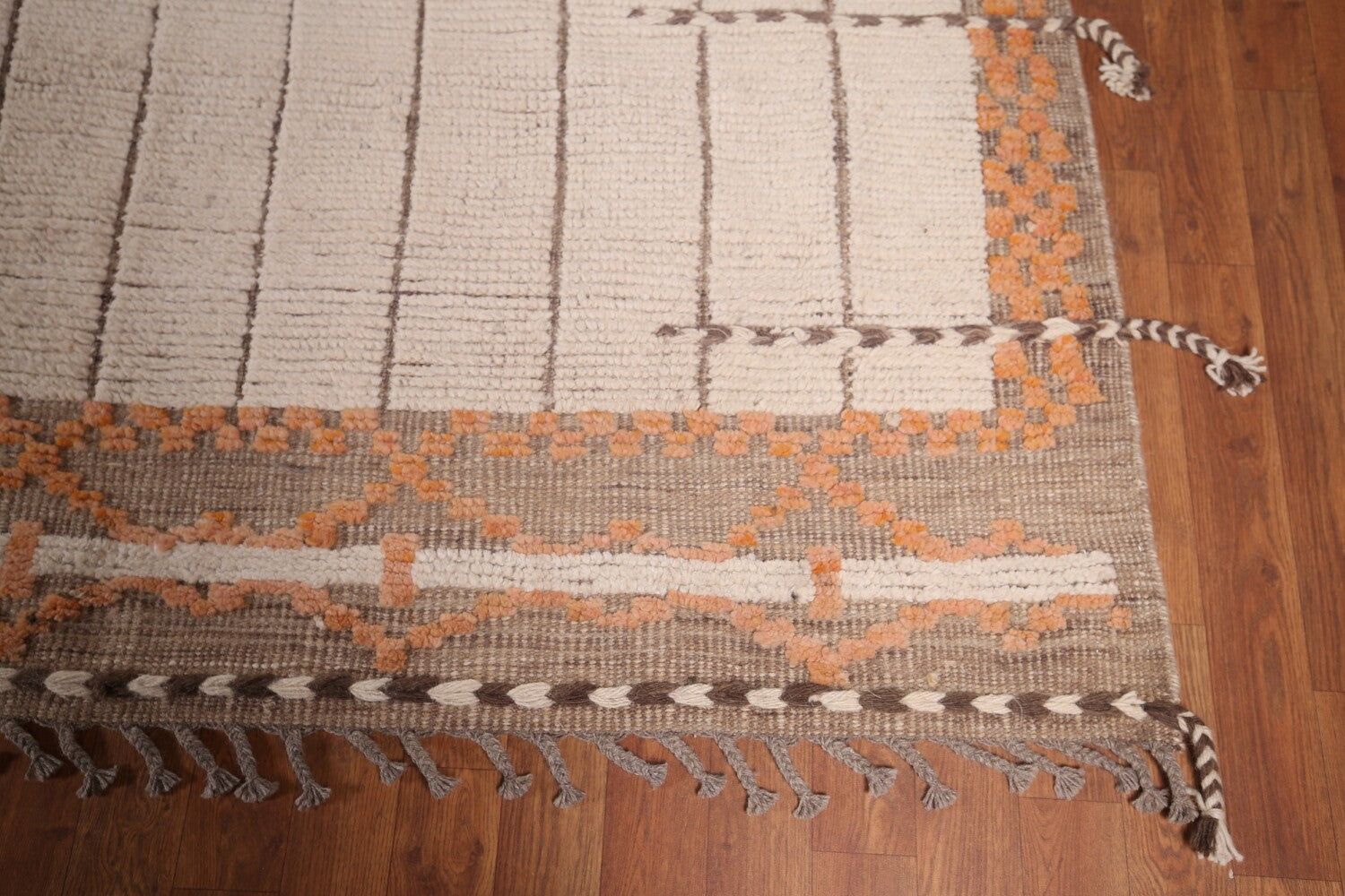 A Beautiful Genuine Pakistan Moroccan rug is Hand Knotted by skillful weavers in Pakistan with 100% Wool Material. This rug is in New, First Quality condition. dimensions are 21' 6'' X 14' 2'' in foot and 655 X 432 in centimeter. the primary color is Beige & Ivories.