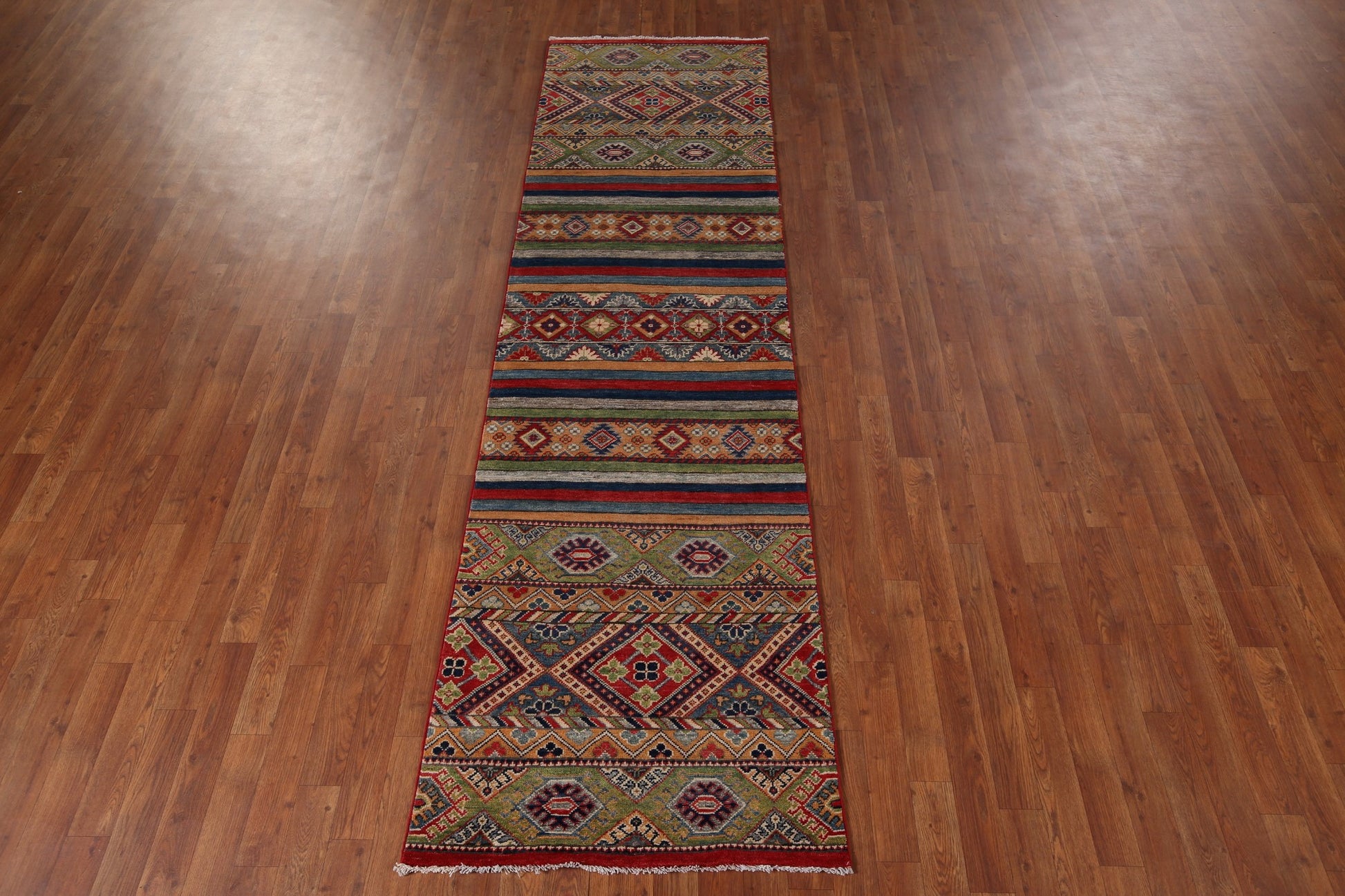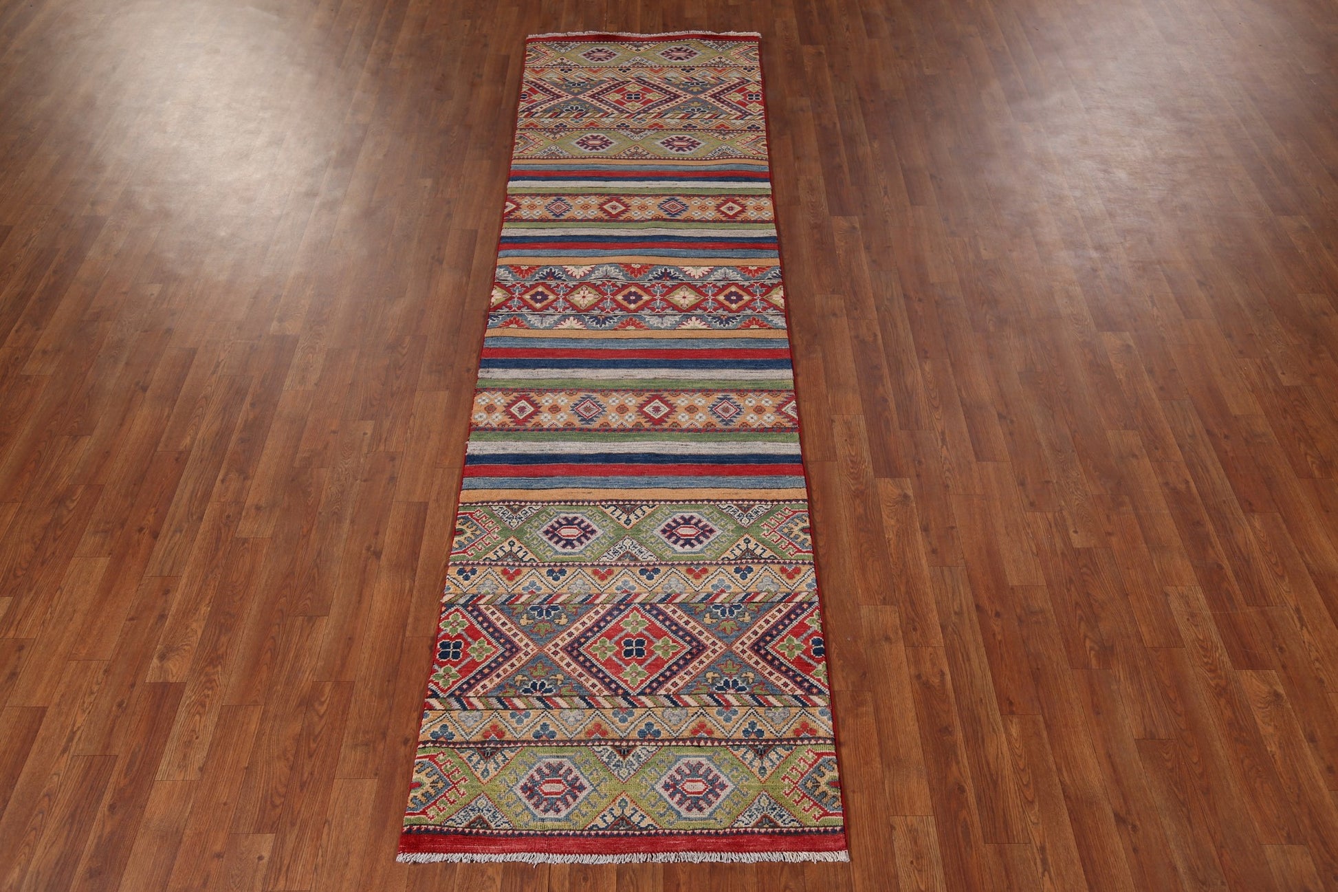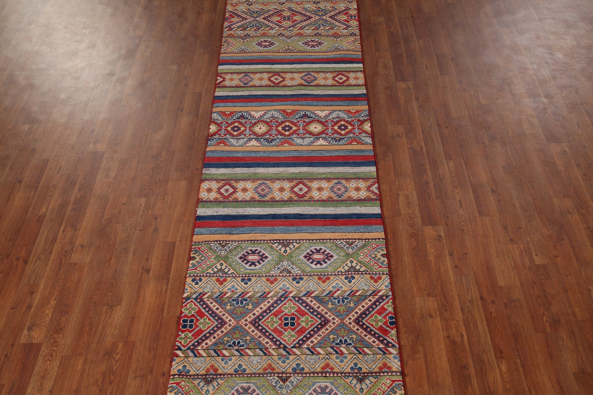 Striped Wool Kazak Oriental Runner Rug 3x9