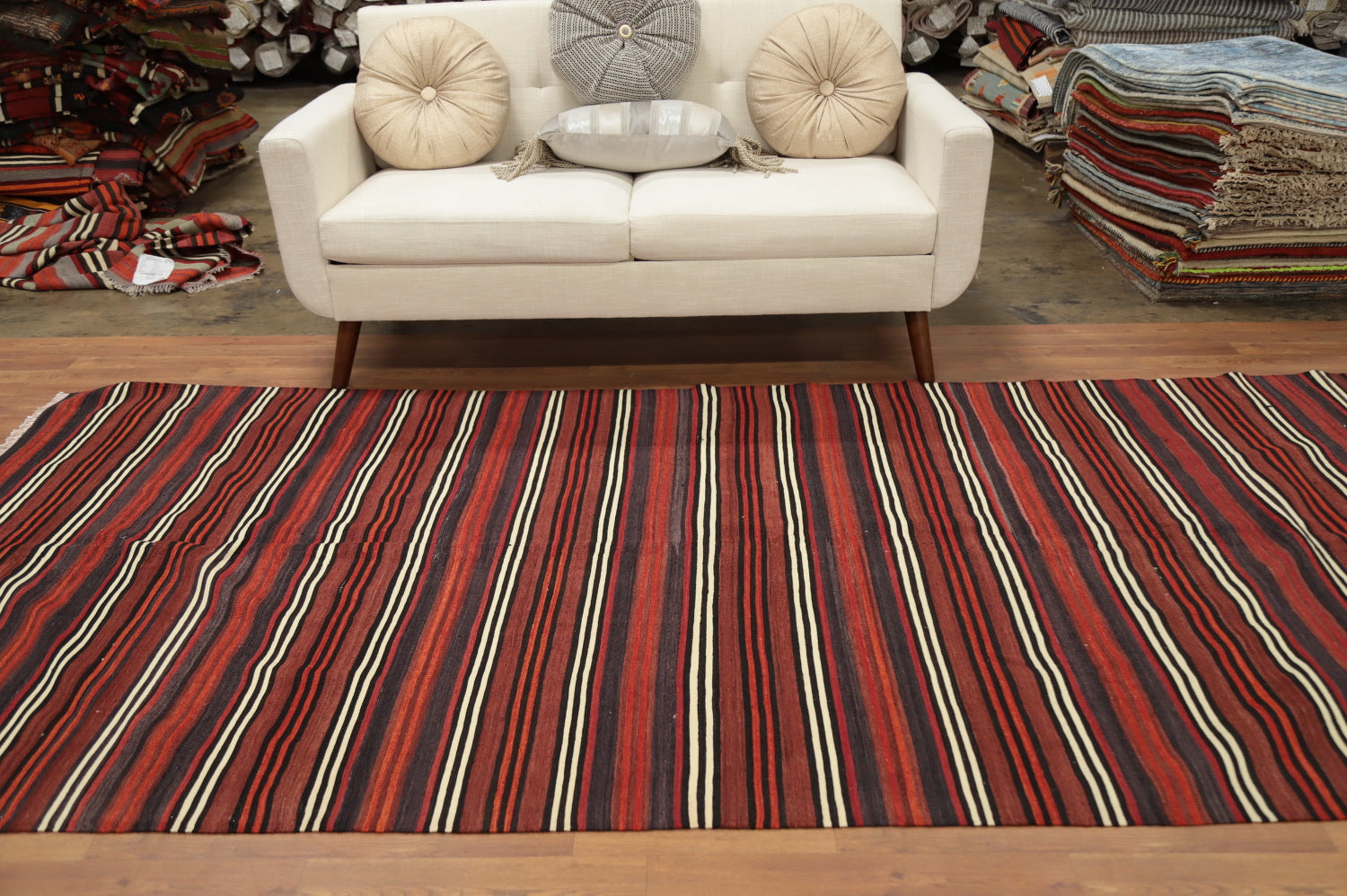 Striped Wool Kilim Vegetable Dye Area Rug 5x12