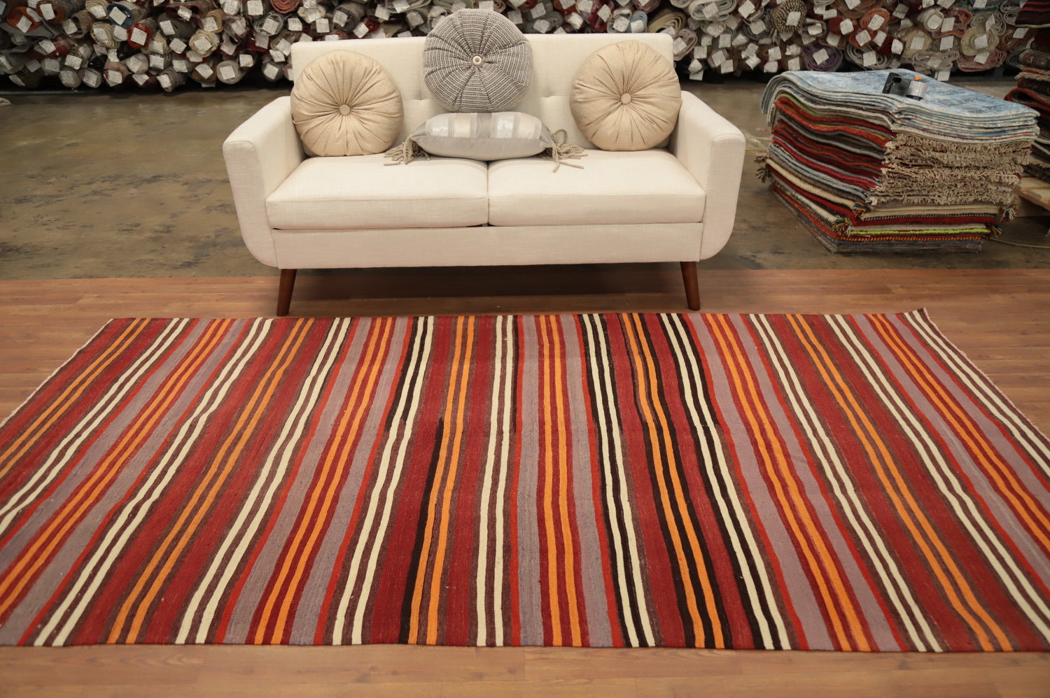 Striped Wool Kilim Vegetable Dye Area Rug 5x9