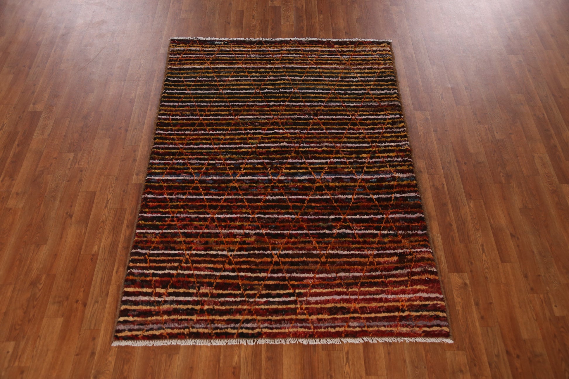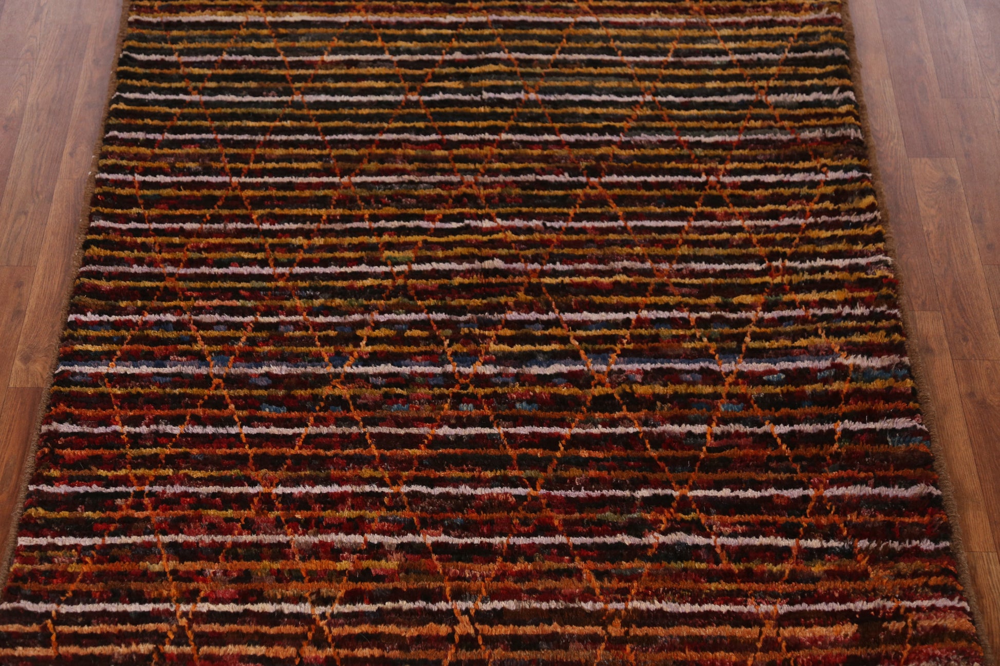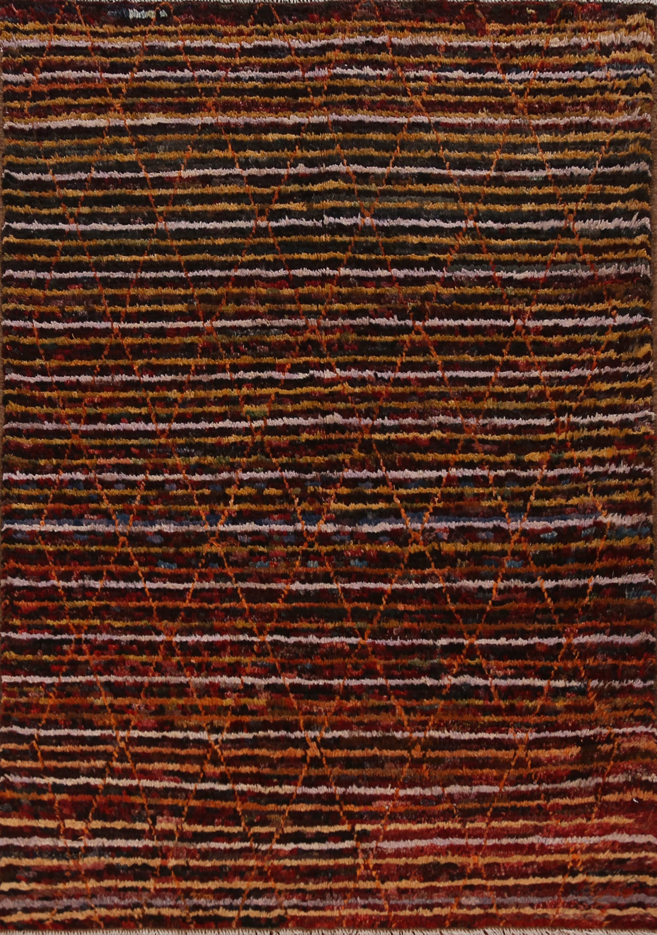 Striped Wool Trellis Moroccan Oriental Rug 5x6