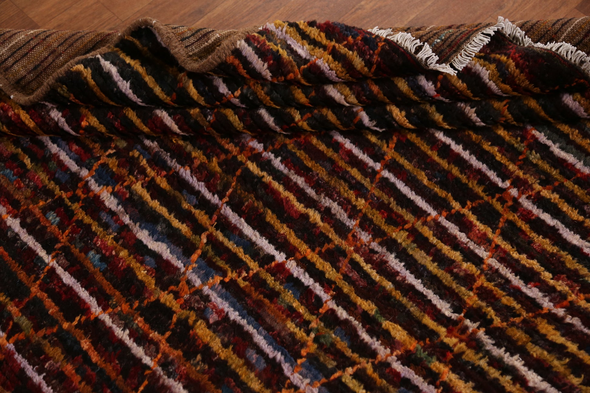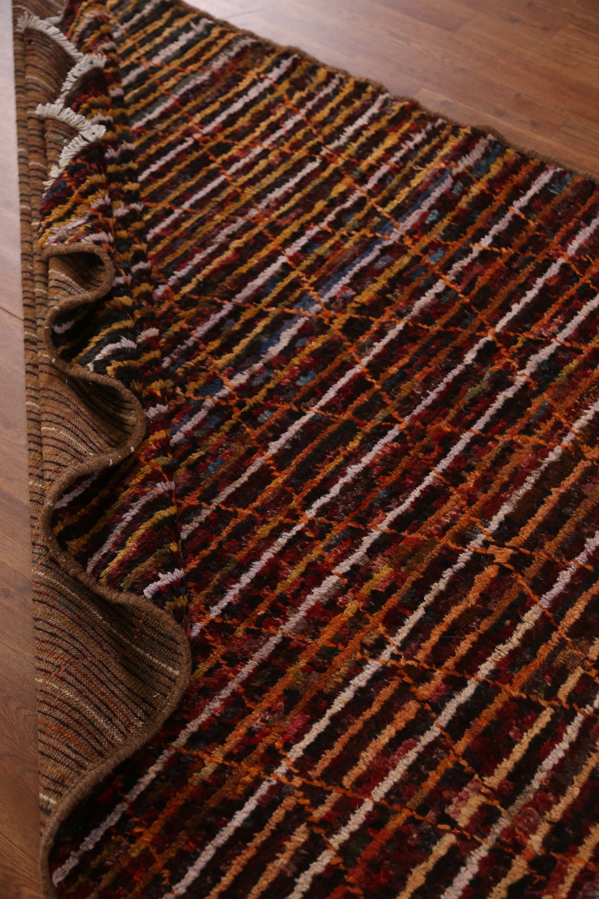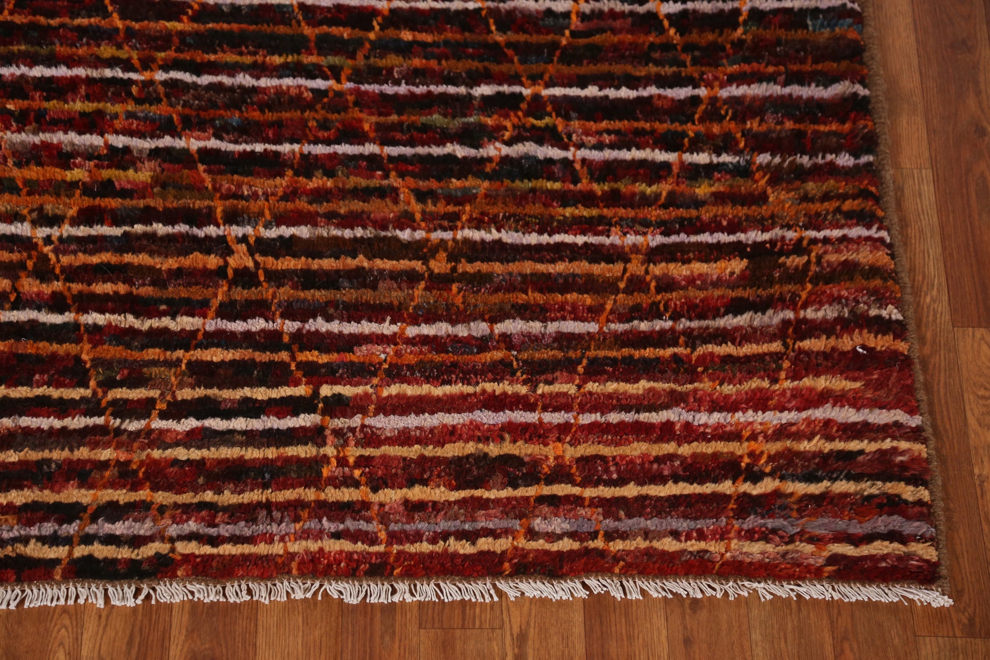 Striped Wool Trellis Moroccan Oriental Rug 5x6