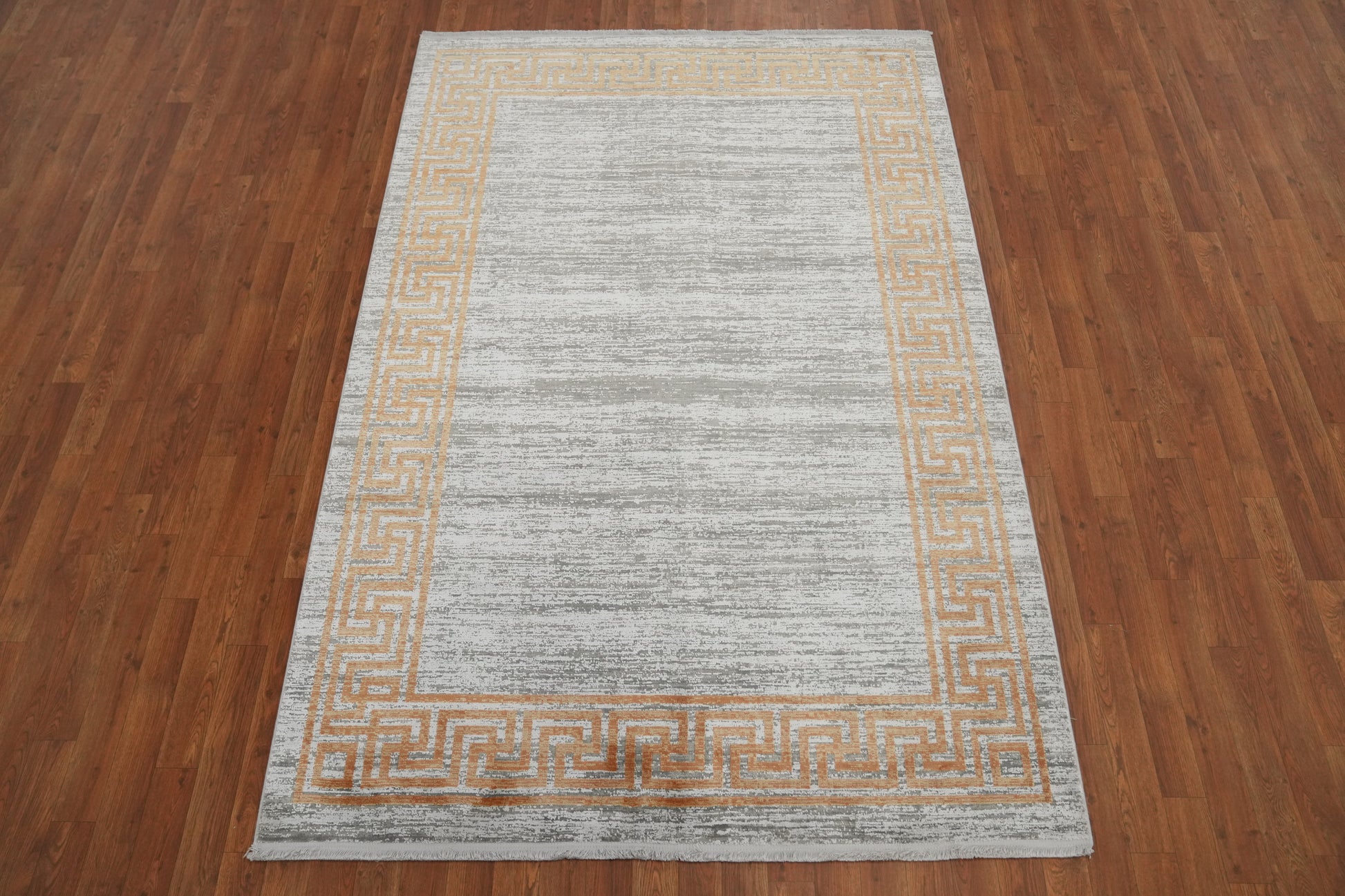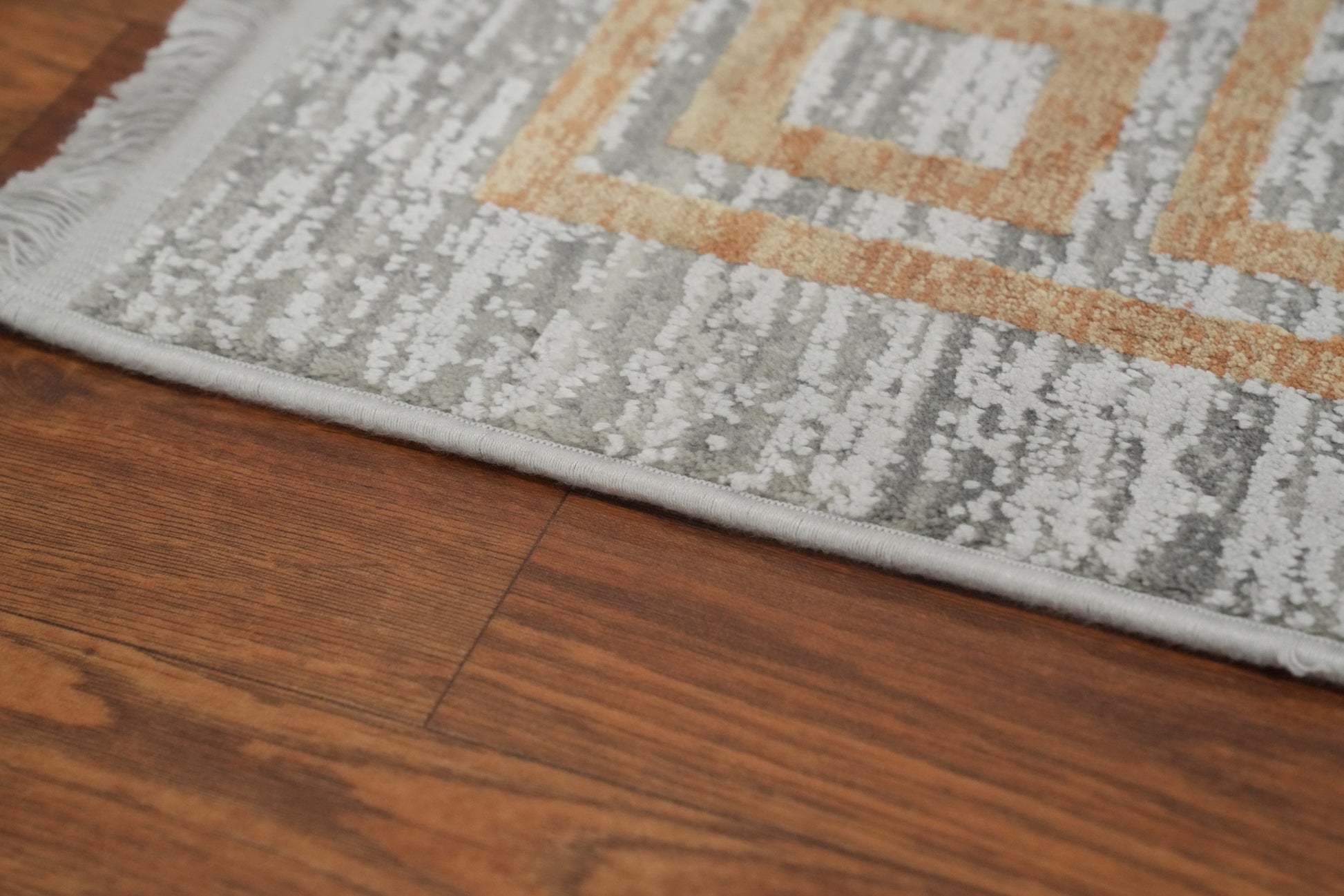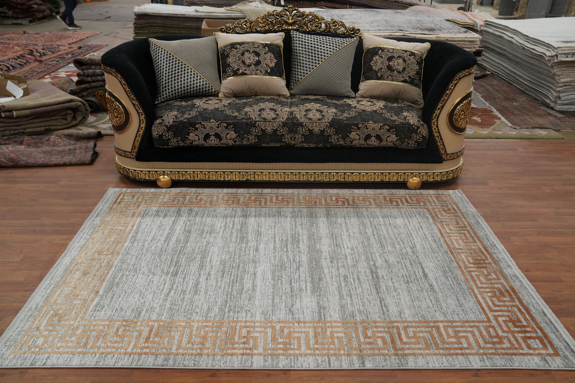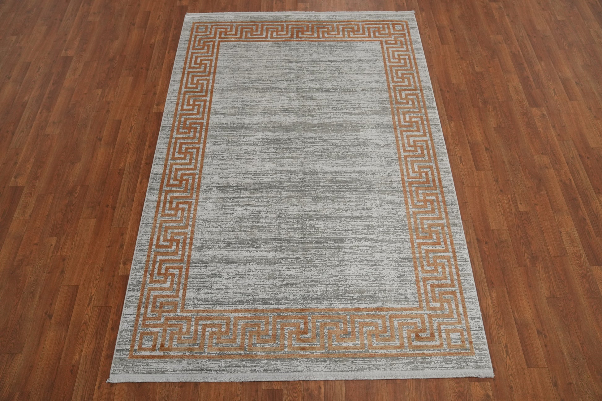 A Beautiful Genuine Turkey Distressed rug is Machine Made by skillful weavers in Turkey with Polyester Material. This rug is in New, First Quality condition. dimensions are 7' 5'' X 5' 2'' in foot and 226 X 157 in centimeter. the primary color is Greys & Charcoal.