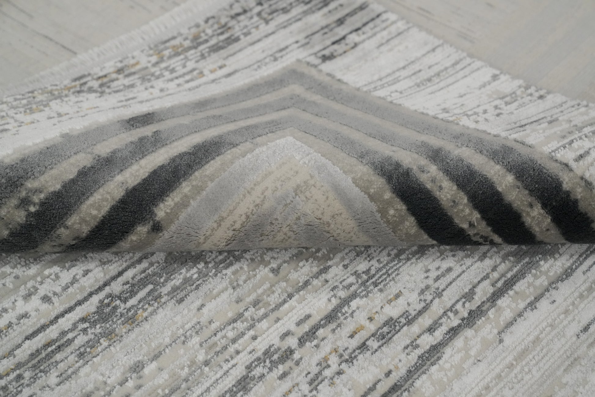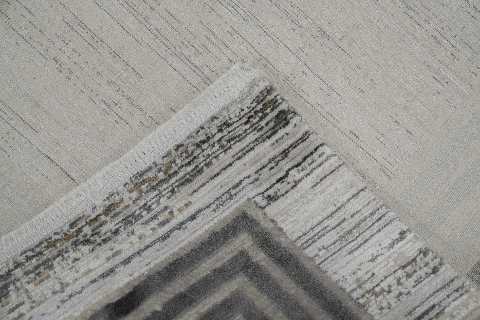 A Beautiful Genuine Turkey Distressed rug is Machine Made by skillful weavers in Turkey with Polyester Material. This rug is in New, First Quality condition. dimensions are 7' 5'' X 5' 2'' in foot and 226 X 157 in centimeter. the primary color is Greys & Charcoal.