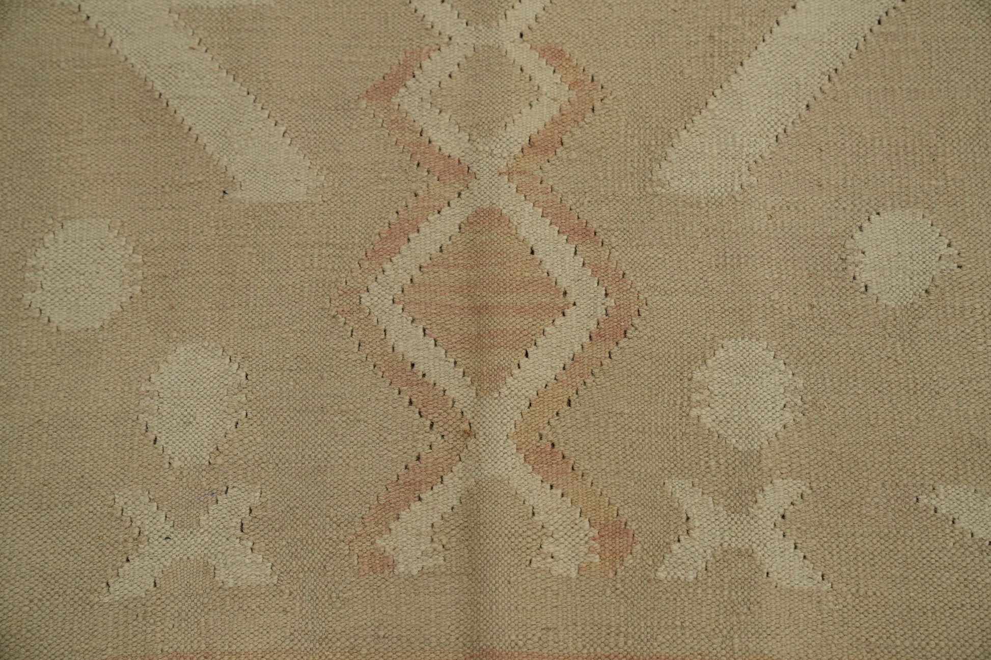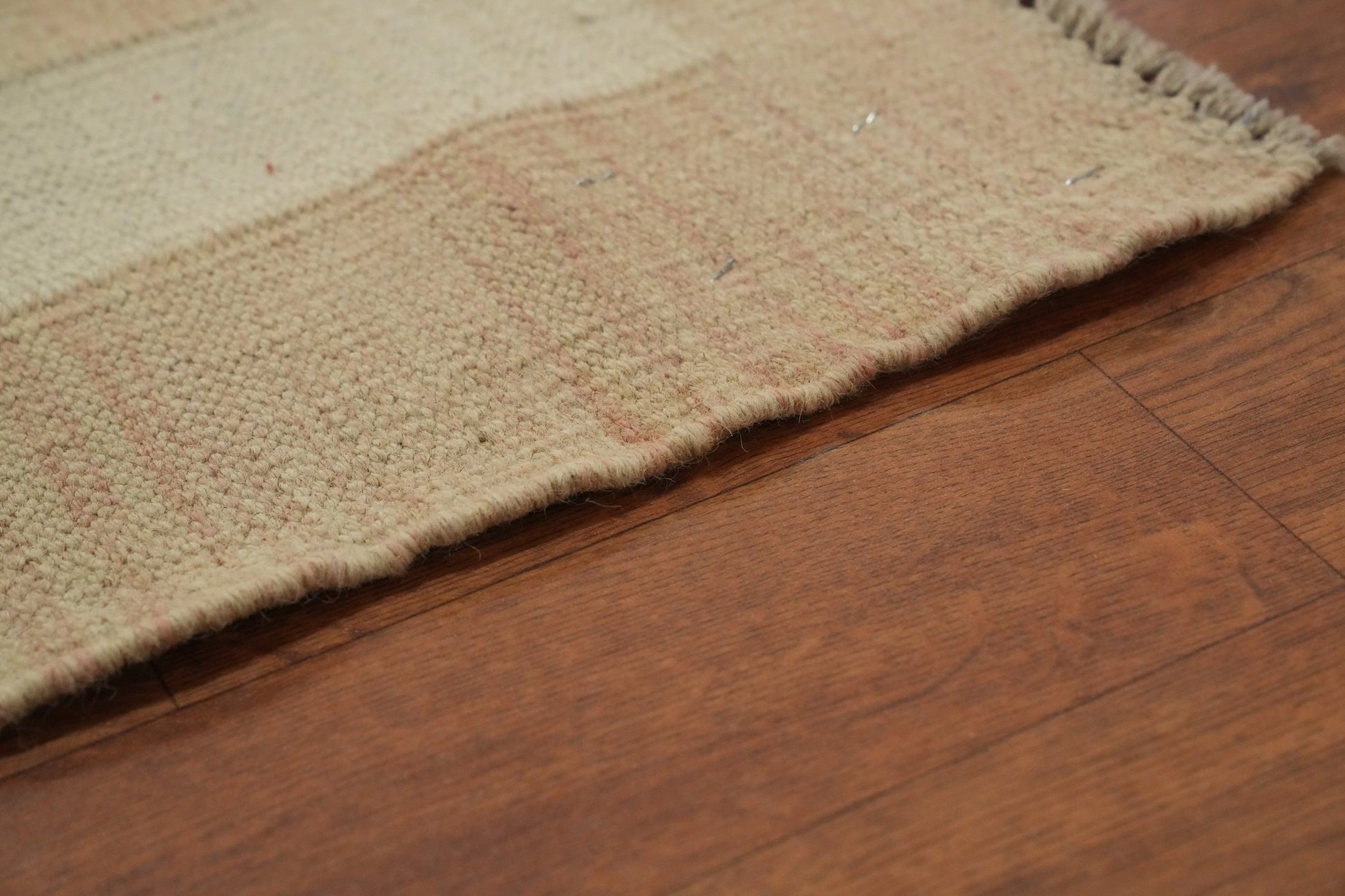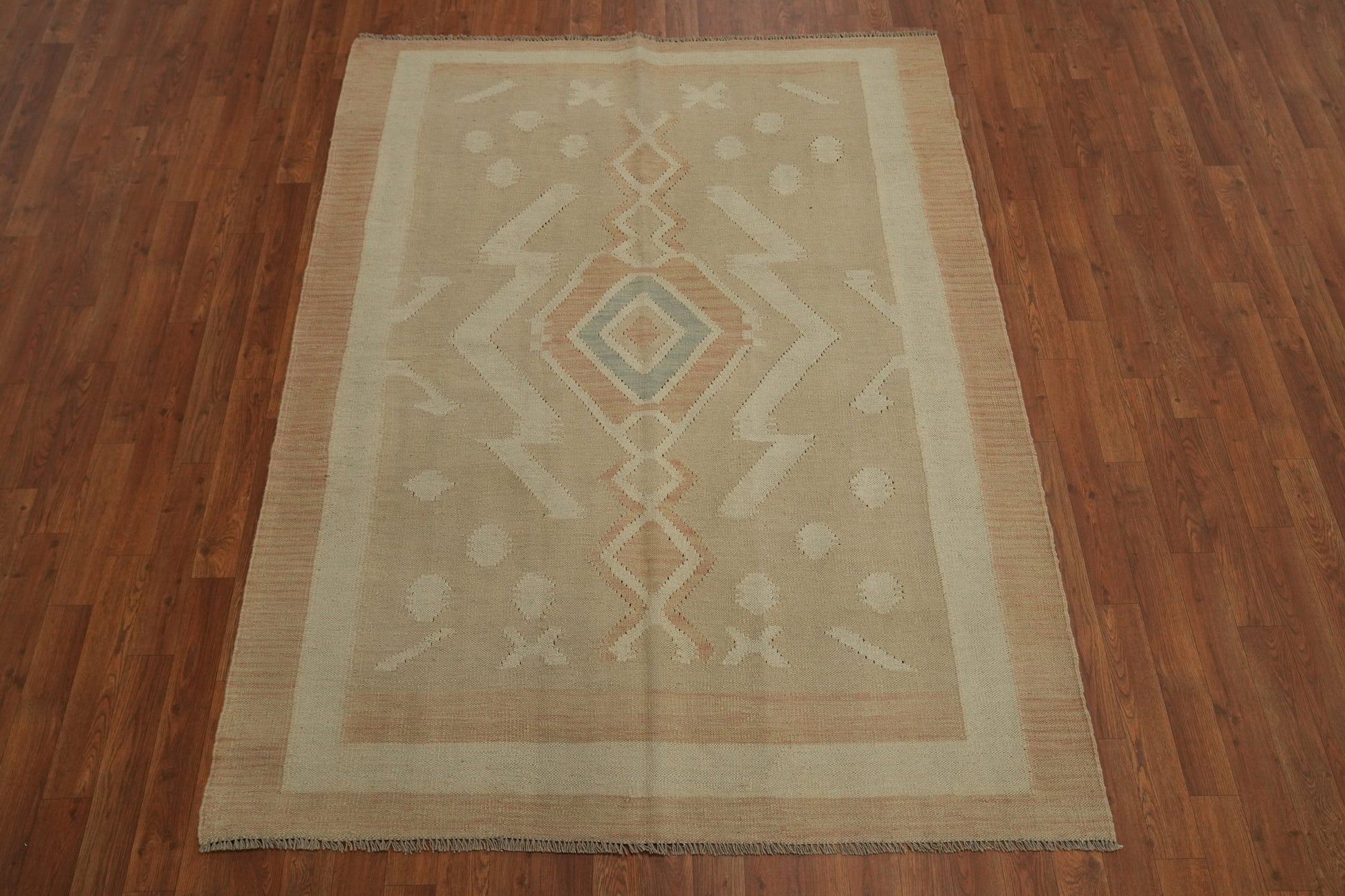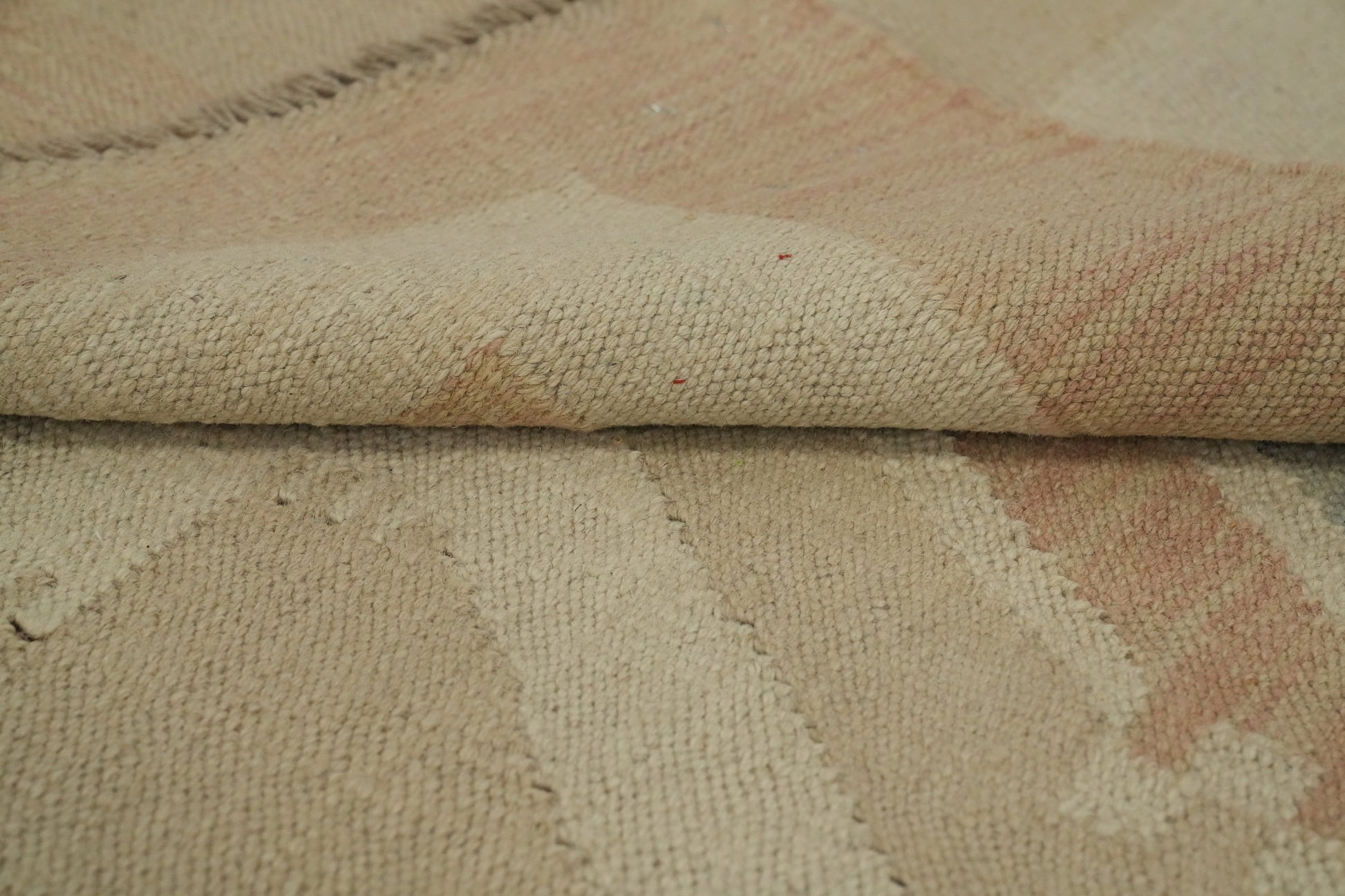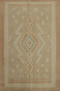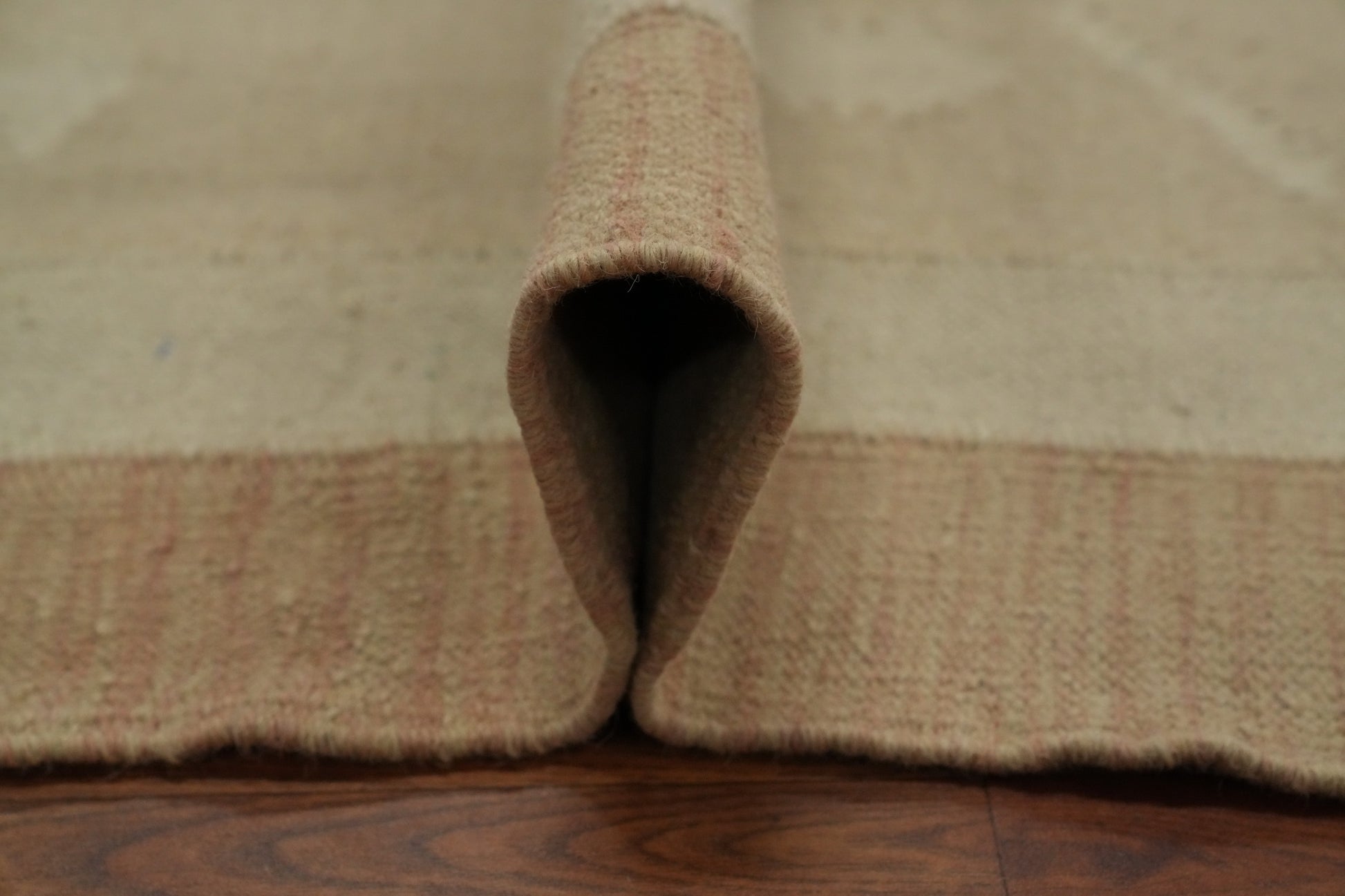 A Beautiful Genuine Pakistan Kilim rug is Hand Woven by skillful weavers in Pakistan with 100% Wool Material. This rug is in New, First Quality condition. dimensions are 6' 5'' X 4' 11'' in foot and 196 X 150 in centimeter. the primary color is Beige & Ivories.