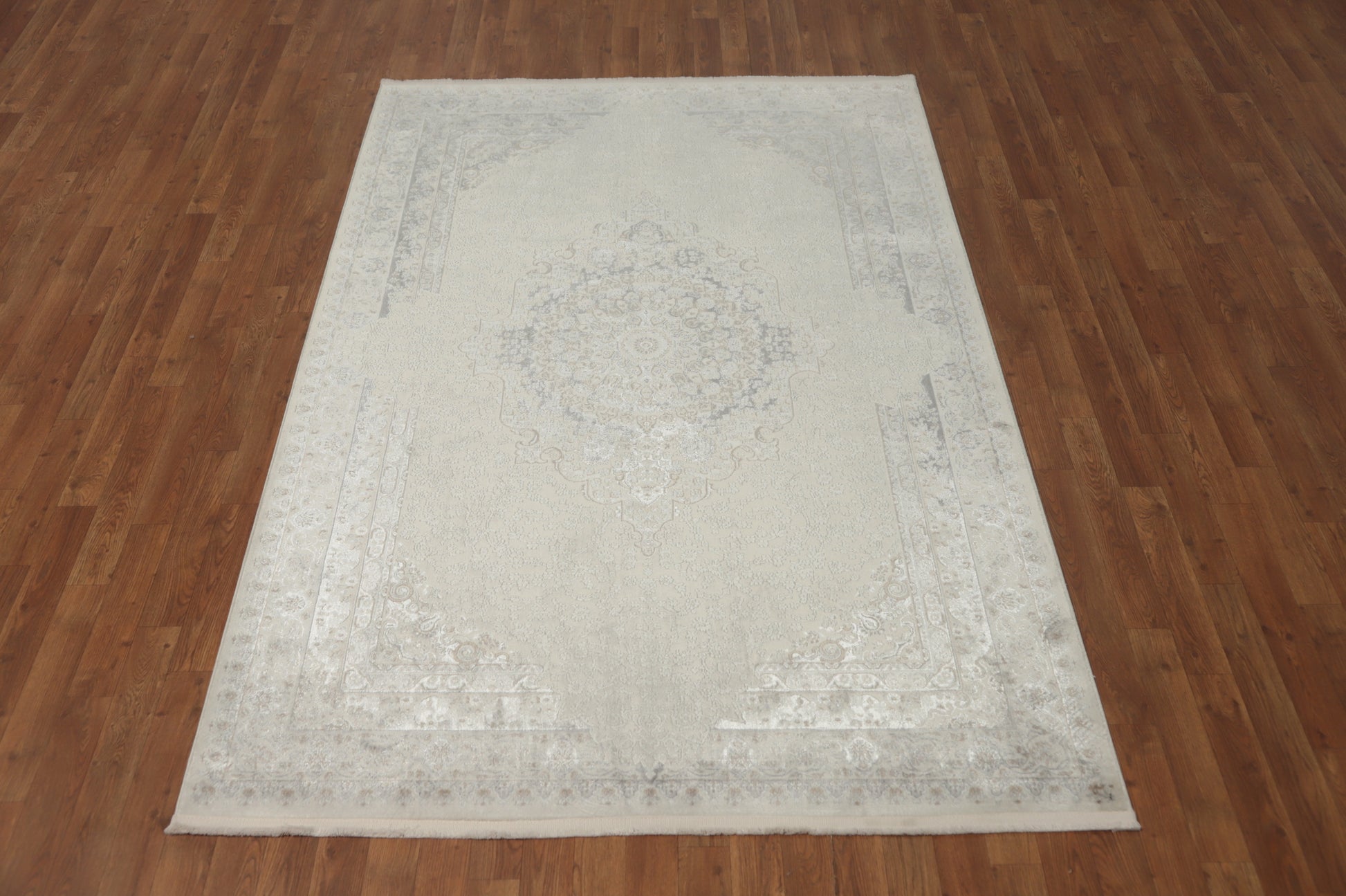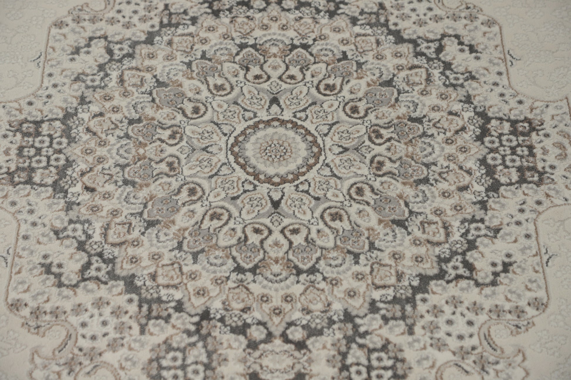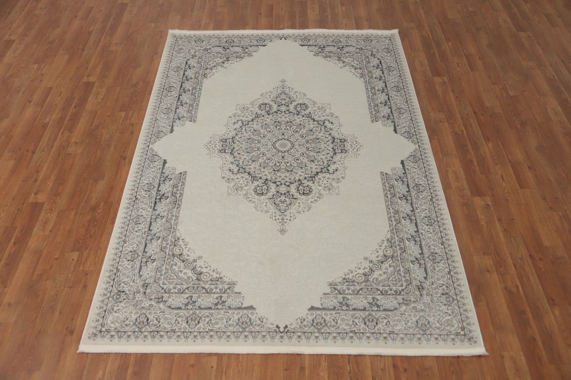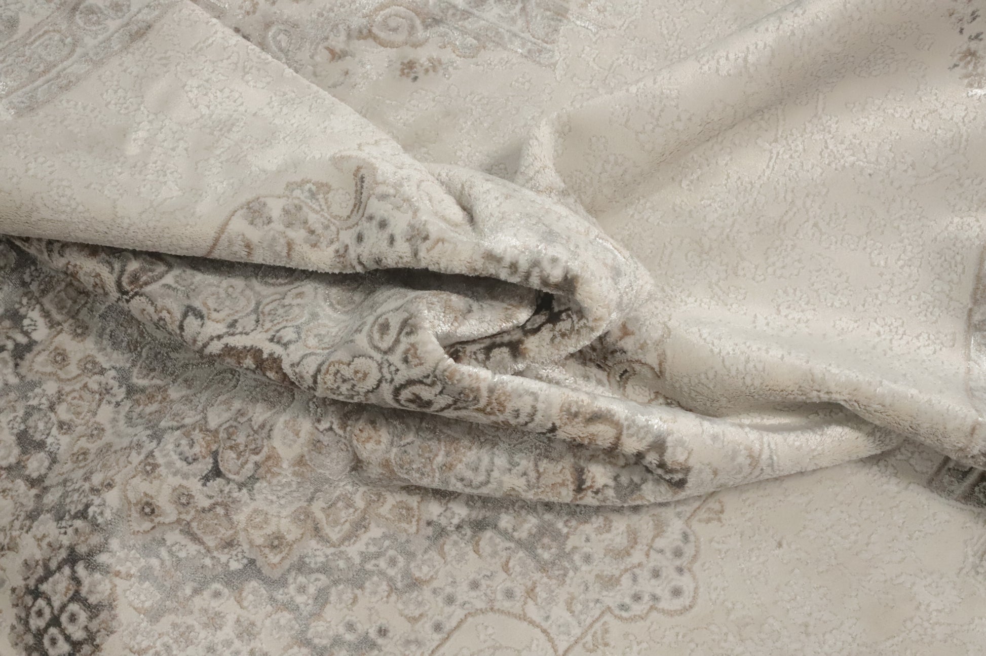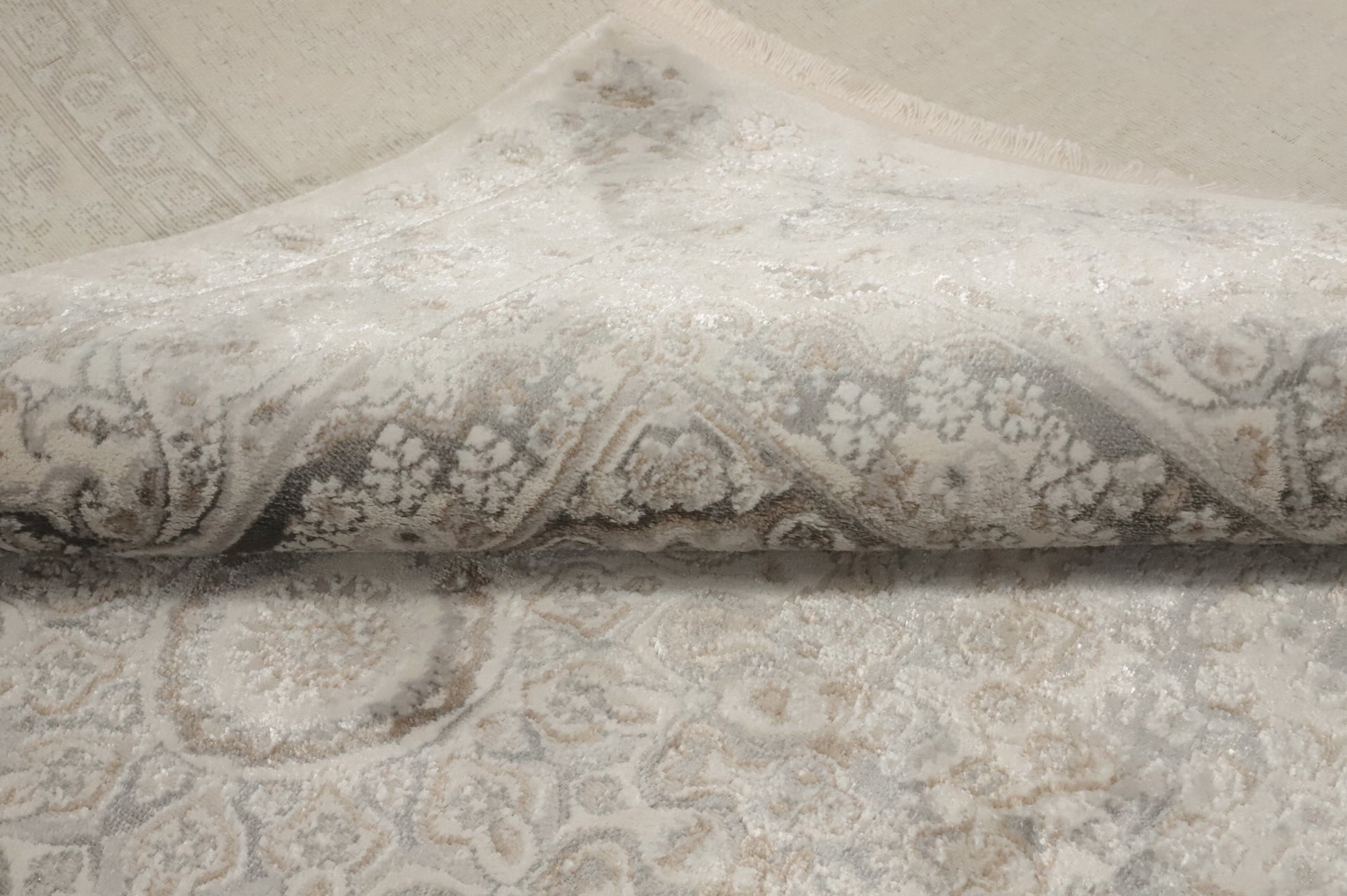 A Beautiful Genuine Turkey Tabriz rug is Machine Made by skillful weavers in Turkey with Polyester Material. This rug is in New, First Quality condition. dimensions are 7' 5'' X 5' 2'' in foot and 226 X 157 in centimeter. the primary color is Beige & Ivories.