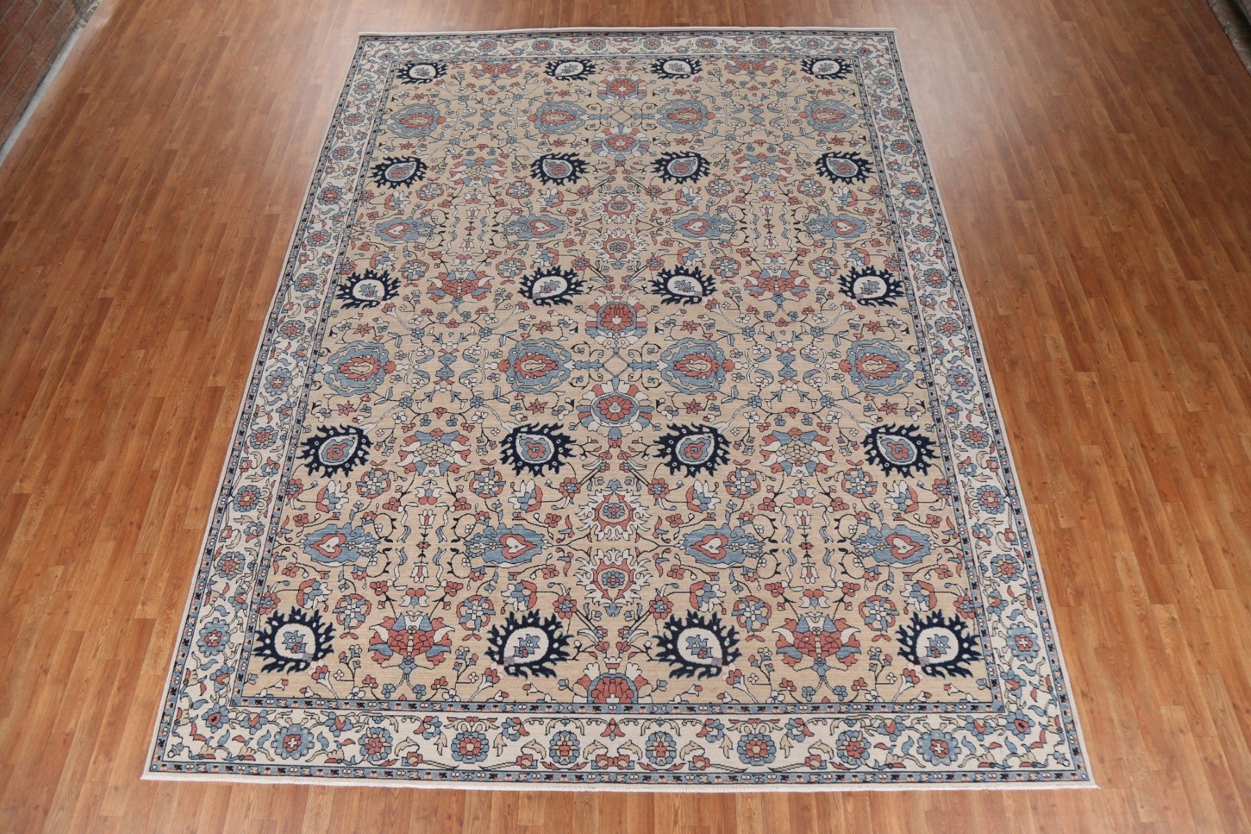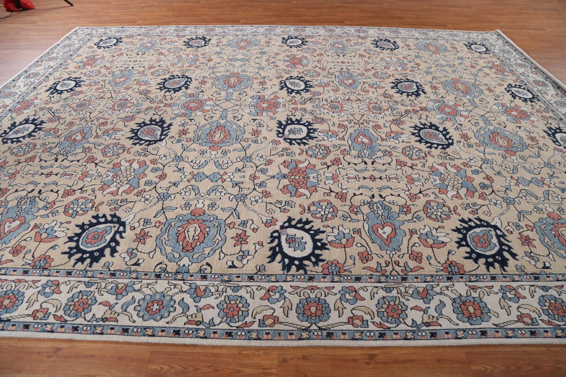 A Beautiful Genuine Turkey Sultanabad (Ziegler) rug is Hand Knotted by skillful weavers in Turkey with 100% Wool Material. This rug is in New, First Quality condition. dimensions are 12' 11'' X 9' 10'' in foot and 394 X 300 in centimeter. the primary color is Beige & Ivories.