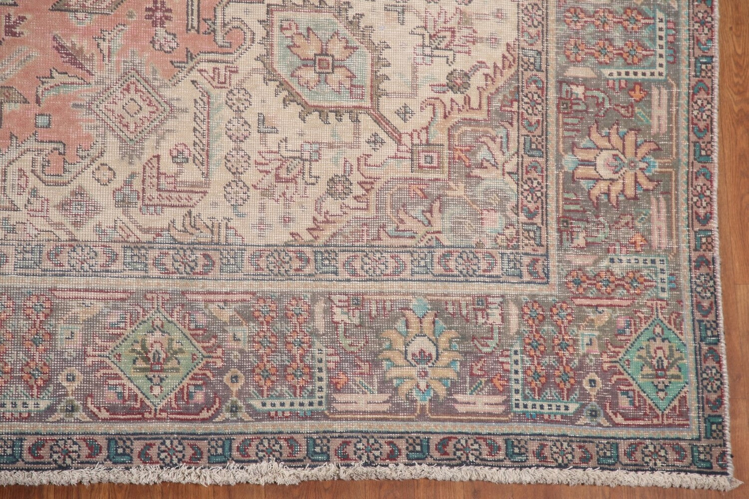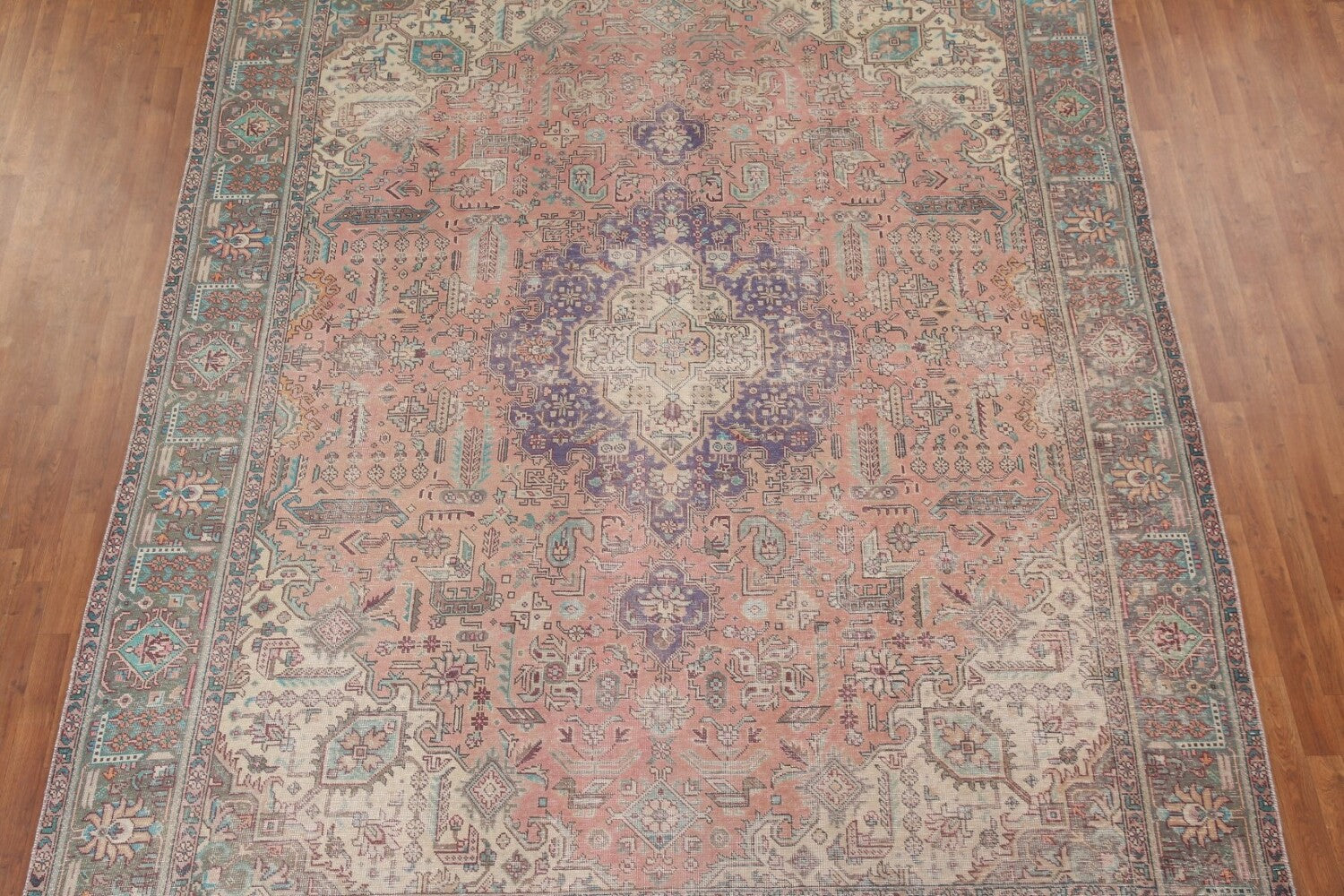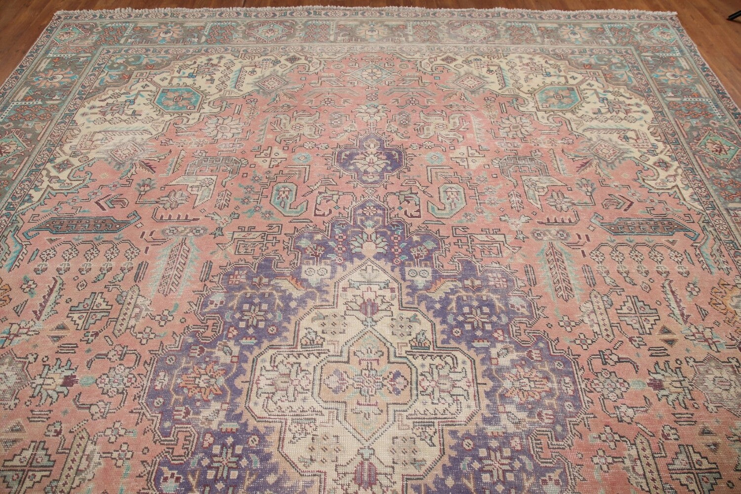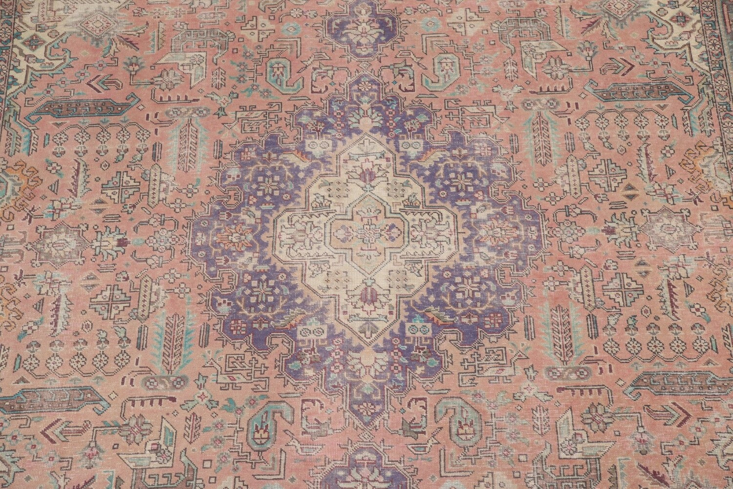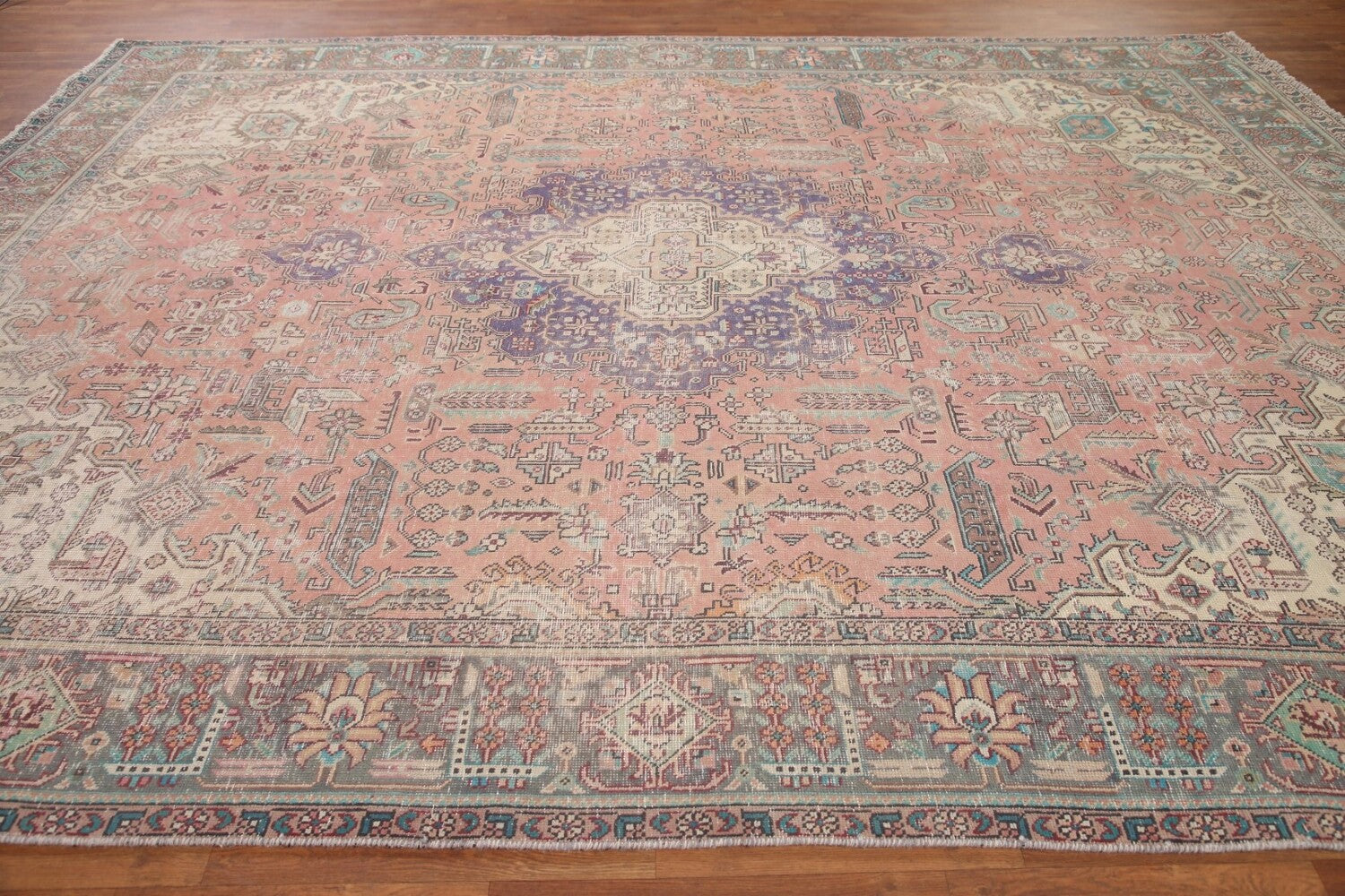 A Beautiful Genuine Persia ( Persia ) Tabriz rug is Hand Knotted by skillful weavers in Persia ( Persia ) with 100% Wool Material. This rug is in Very Good (Low Pile) condition. dimensions are 12' 6'' X 9' 7'' in foot and 381 X 292 in centimeter. the primary color is Pink.
