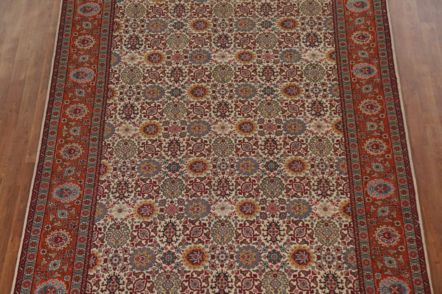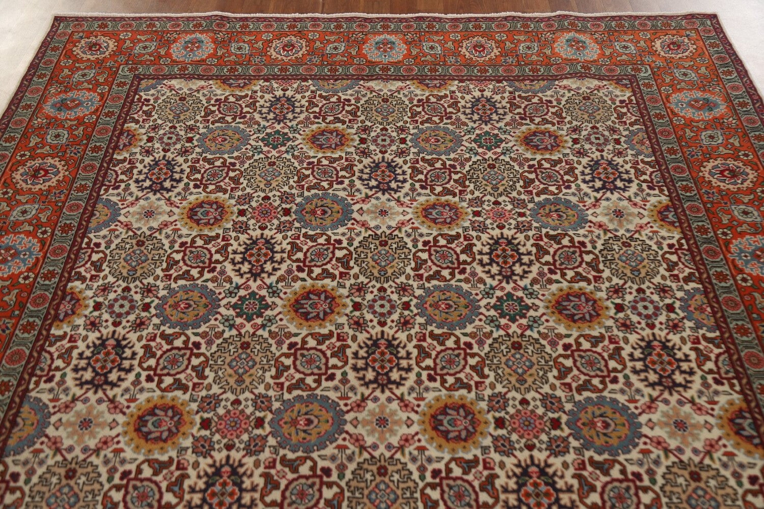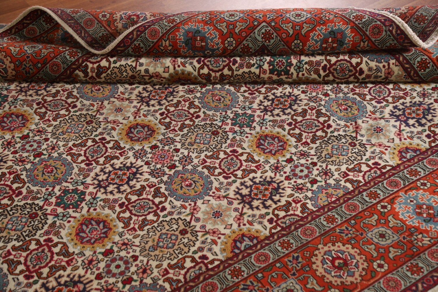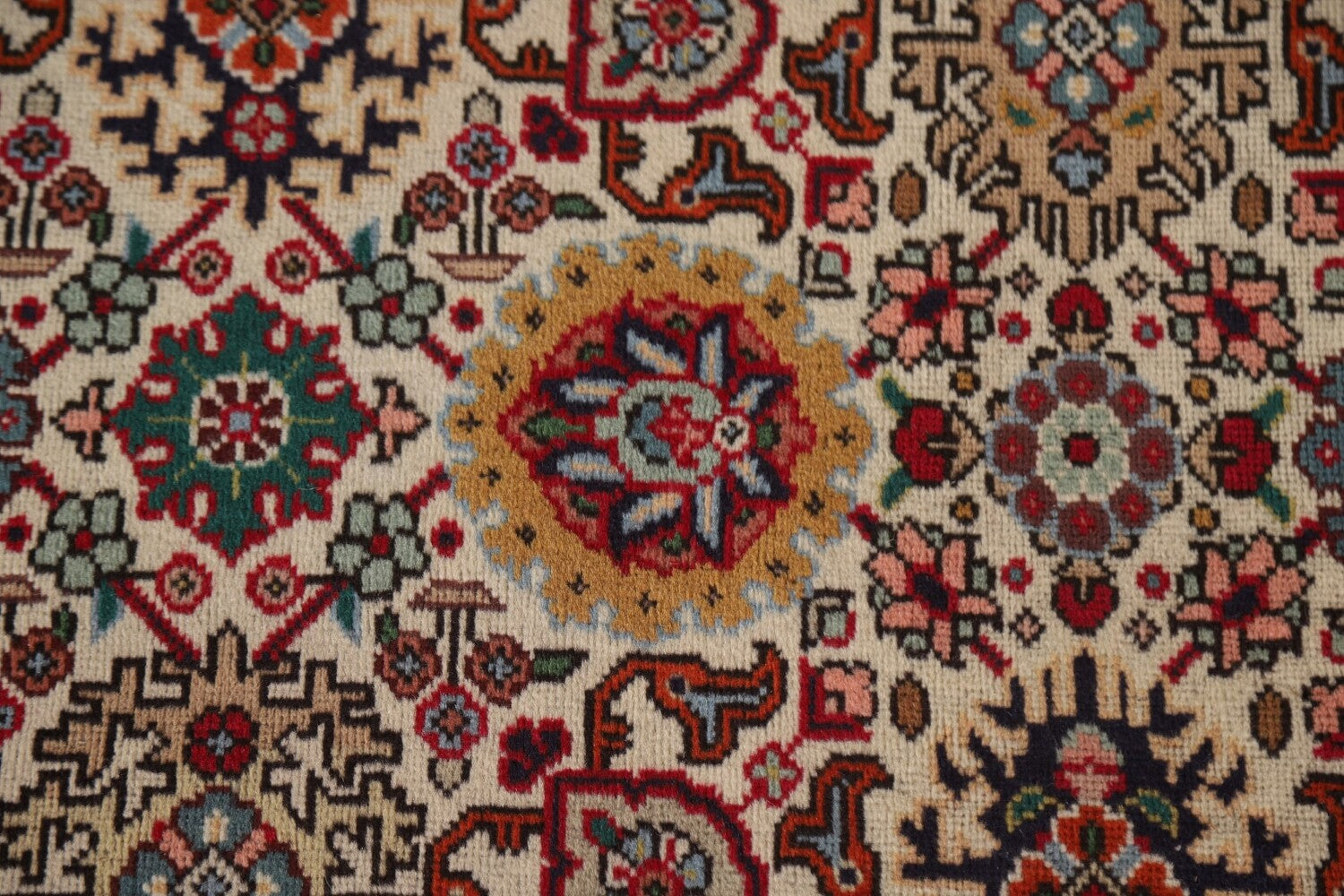 A Beautiful Genuine Persia ( Persia ) Tabriz rug is Hand Knotted by skillful weavers in Persia ( Persia ) with 100% Wool Material. This rug is in Excellent condition. dimensions are 9' 7'' X 6' 6'' in foot and 292 X 198 in centimeter. the primary color is Beige & Ivories.