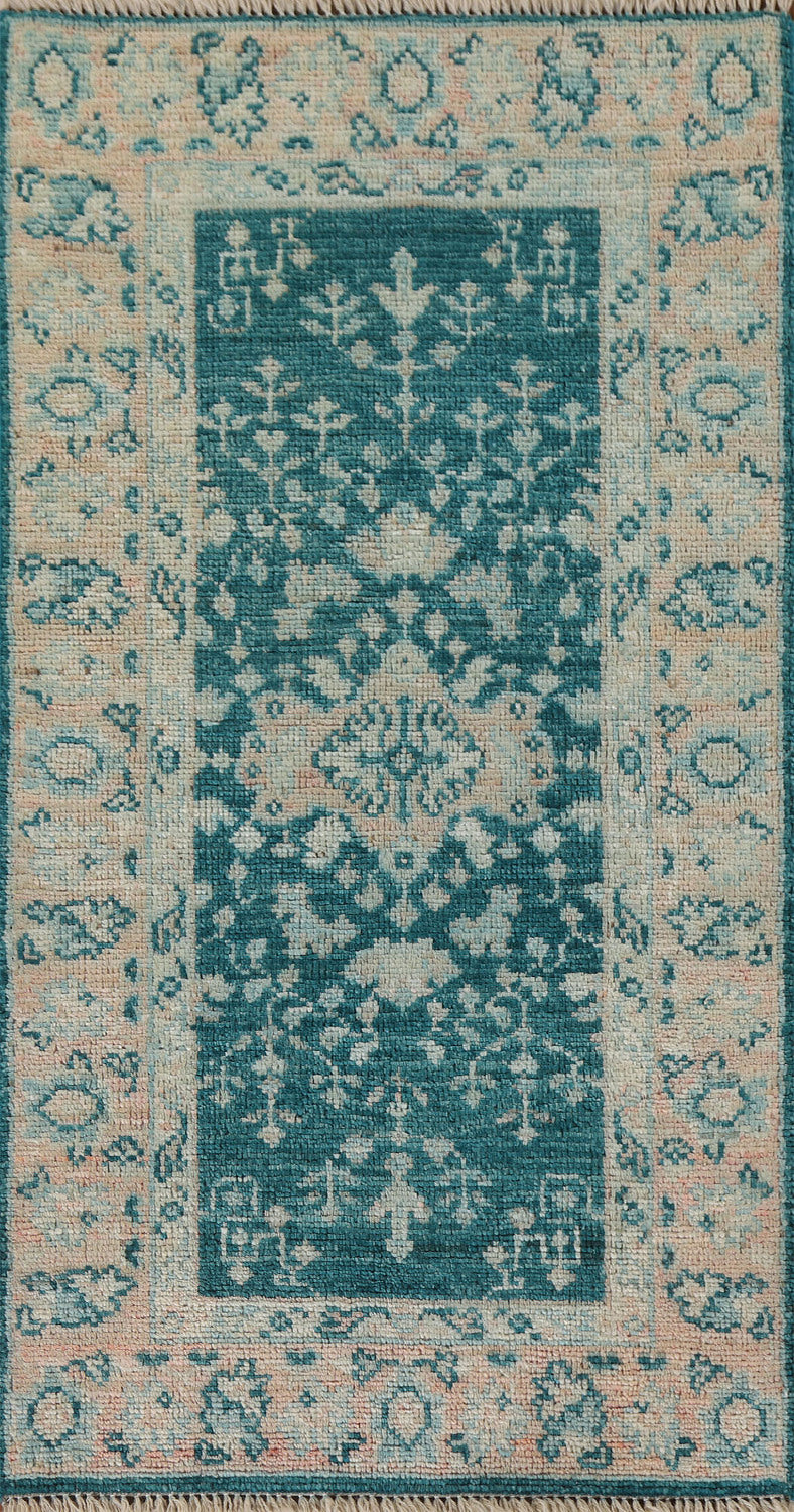 A Beautiful Genuine Turkey Oushak rug is Hand Knotted by skillful weavers in Turkey with 100% Wool Material. This rug is in New, First Quality condition. dimensions are 3' 11'' X 2' 0'' in foot and 119 X 61 in centimeter. the primary color is Green.